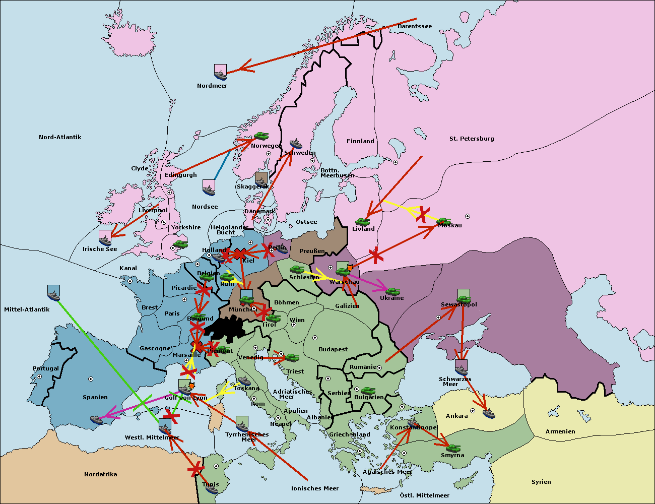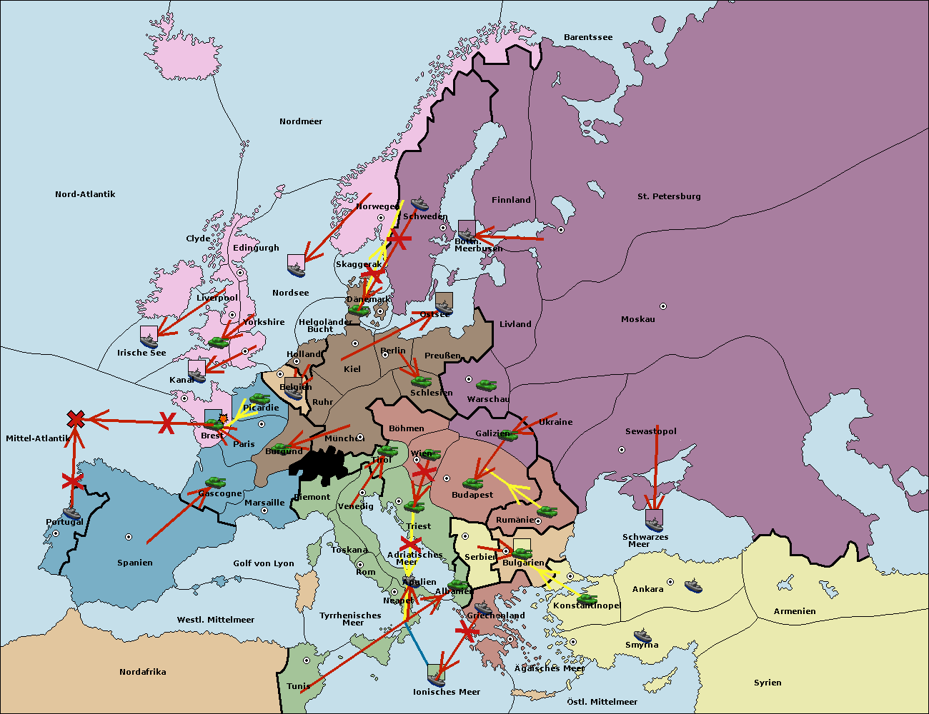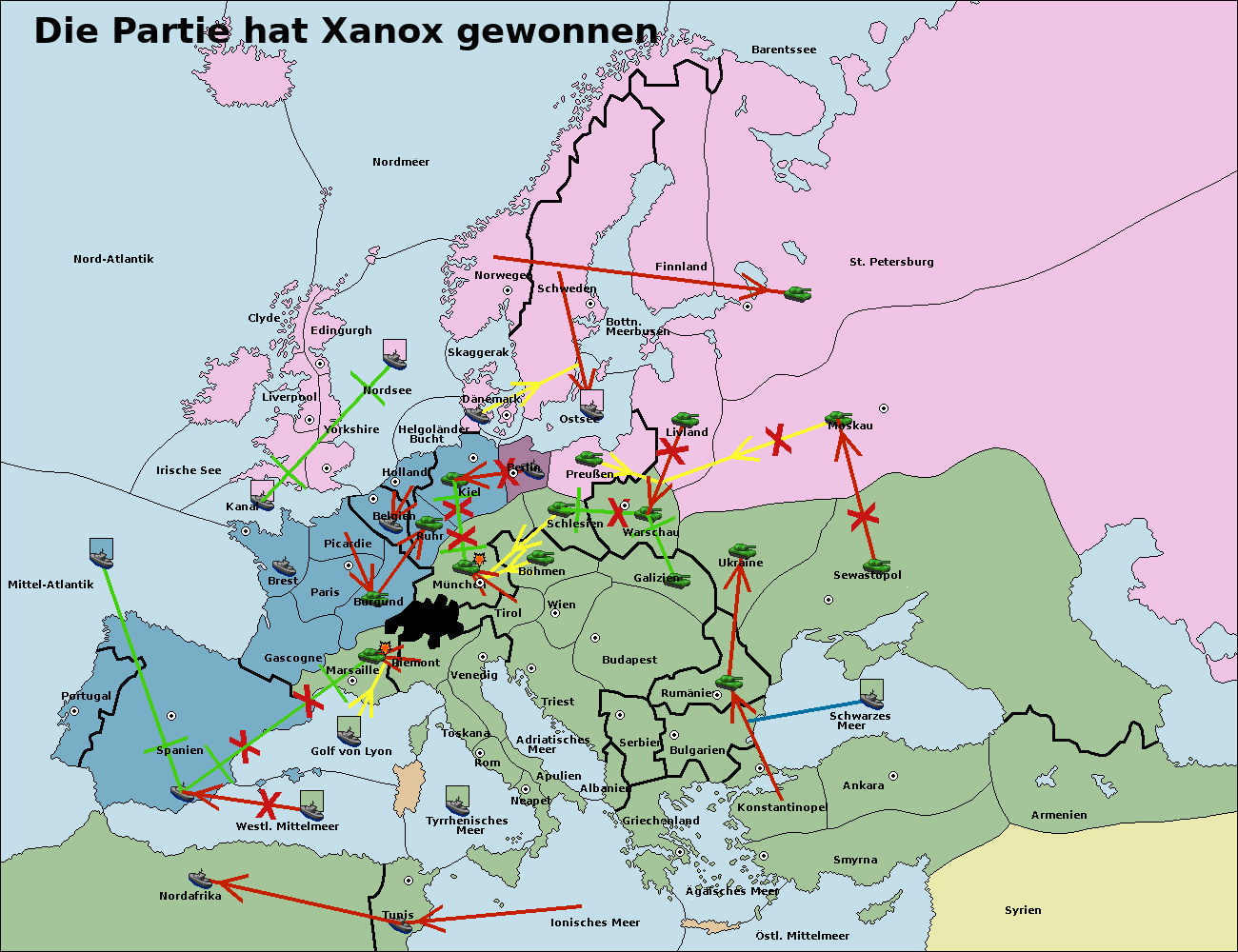 • Die Flotte in Spanien (Südküste) support move nach Marseille von Burgund.