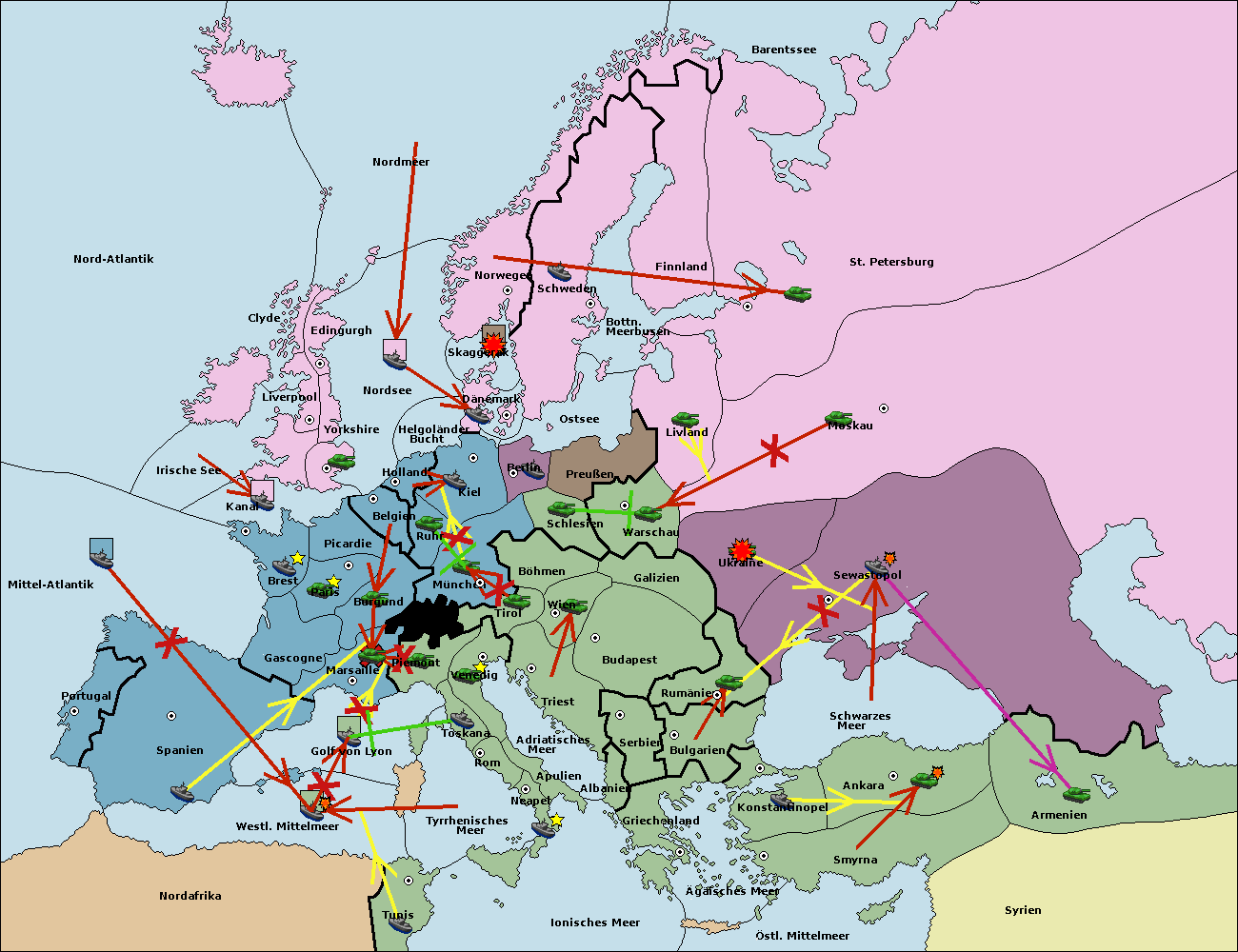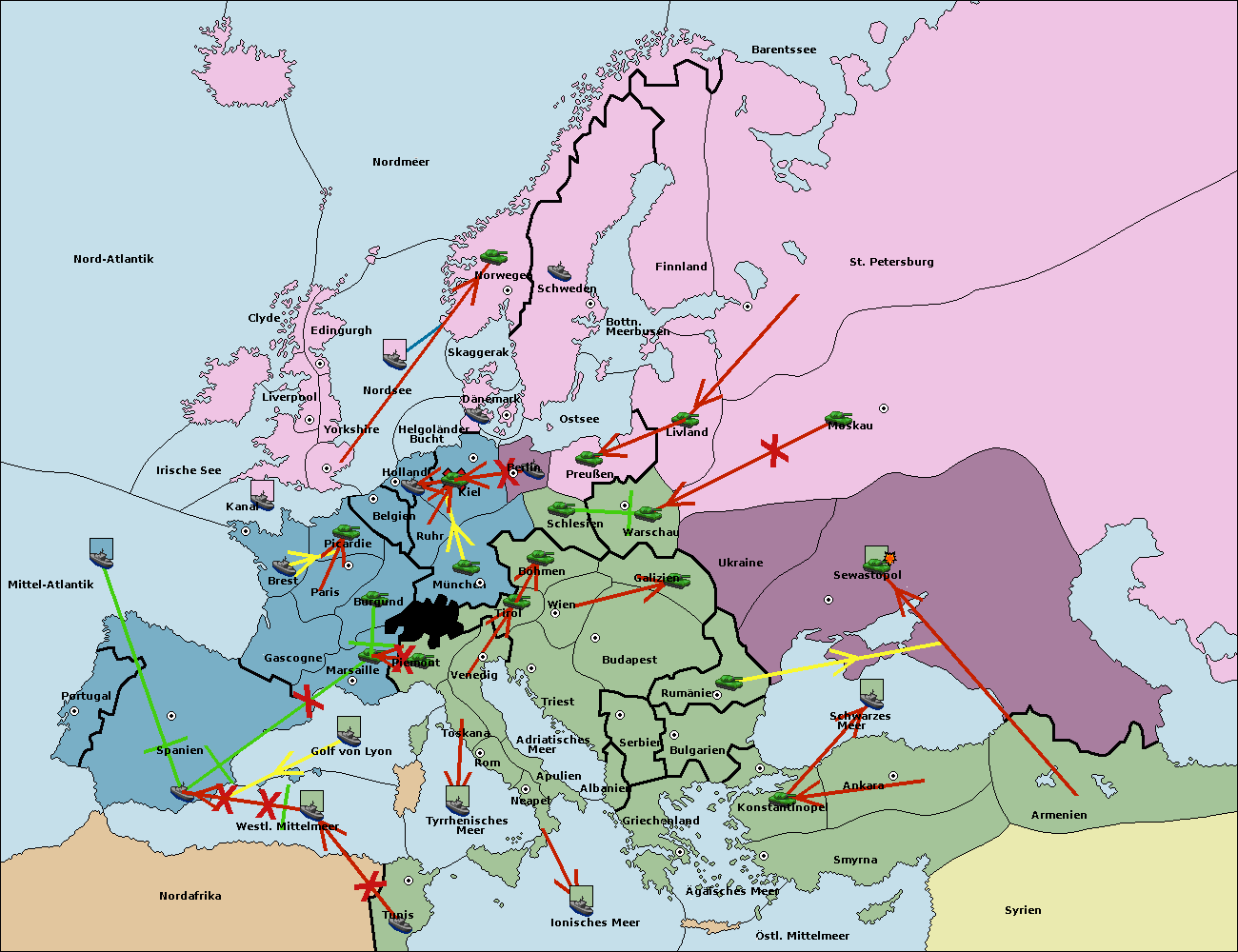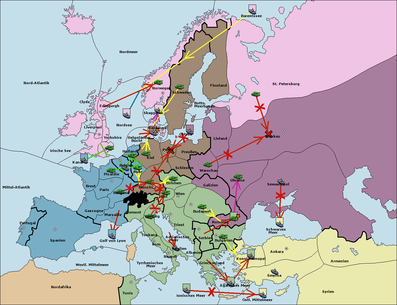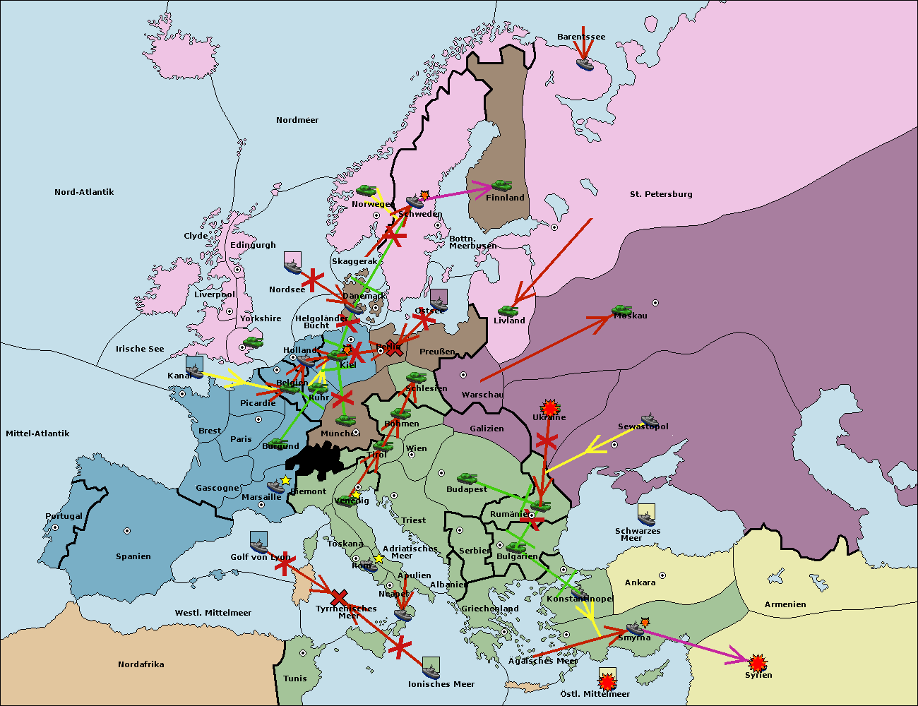 • Die Flotte in Spanien (Südküste) support move nach Marseille von Burgund.