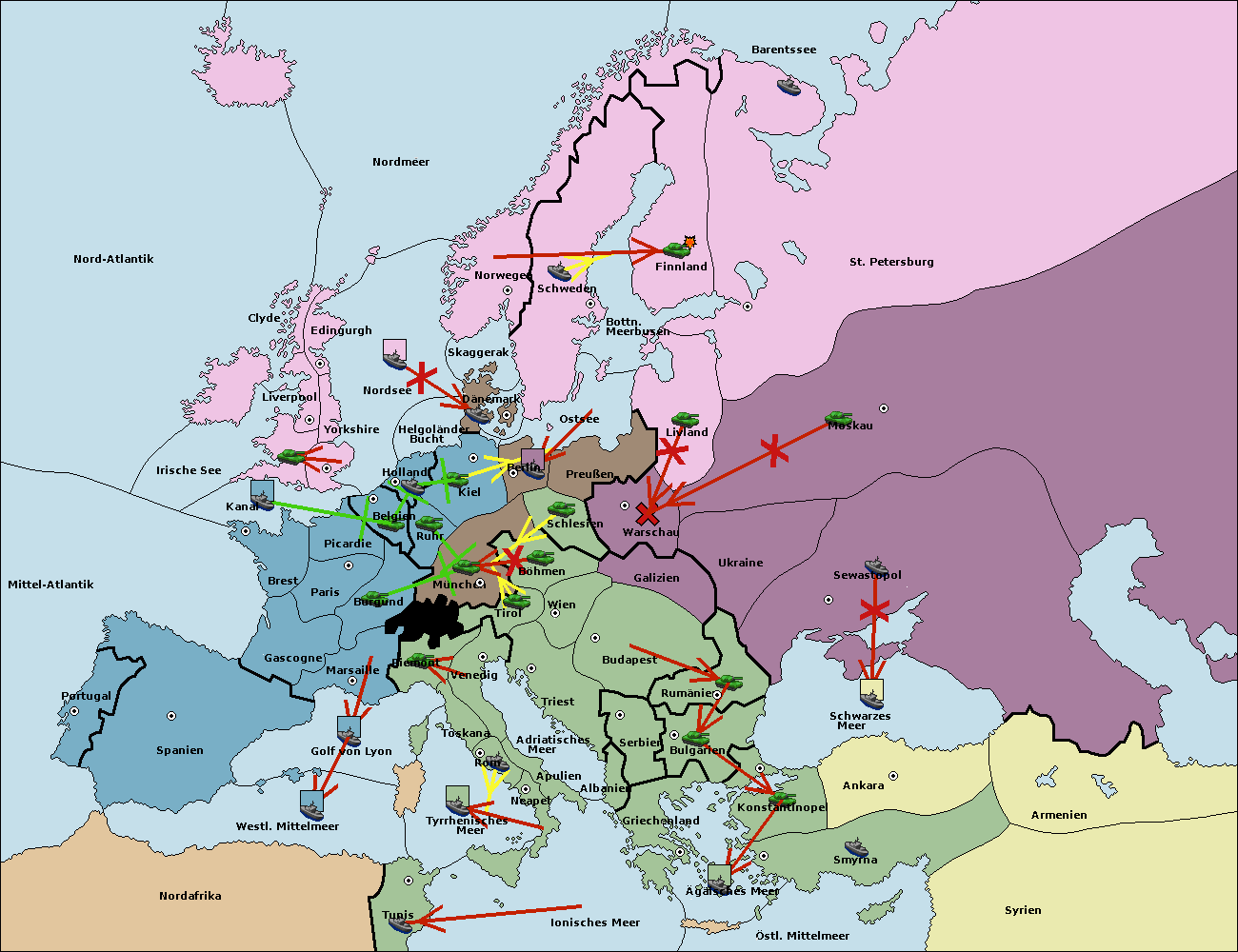• Die Flotte in St. Petersburg (Südküste) move nach Finnland.