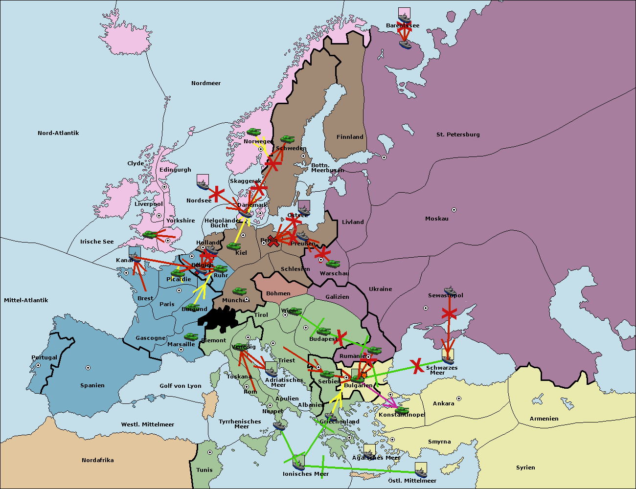 • Die Armee in Konstantinopel support hold nach Bulgarien.