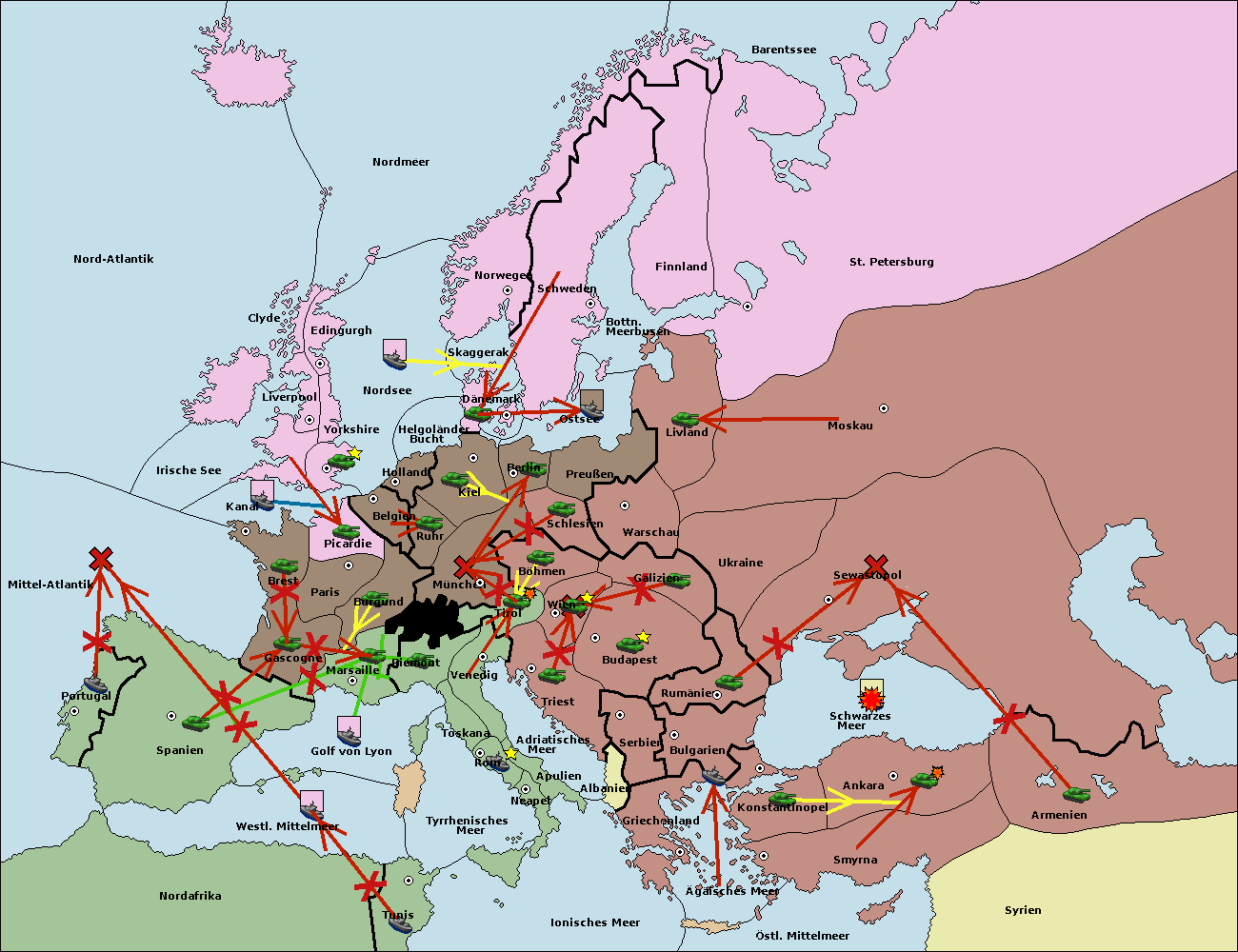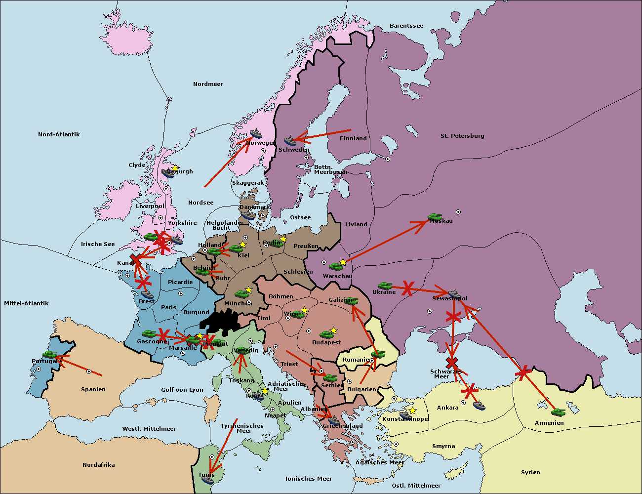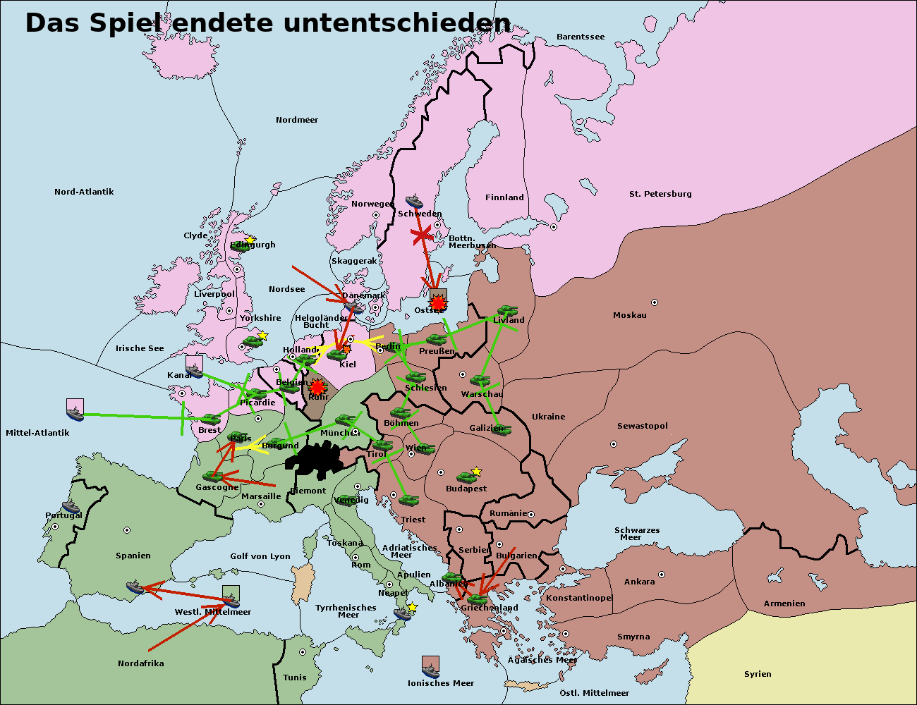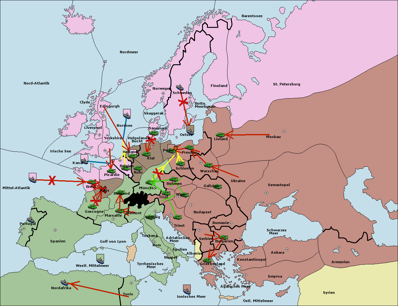 • Die Armee in Kiel wird zerstörtFlotte in Kiel gebaut.