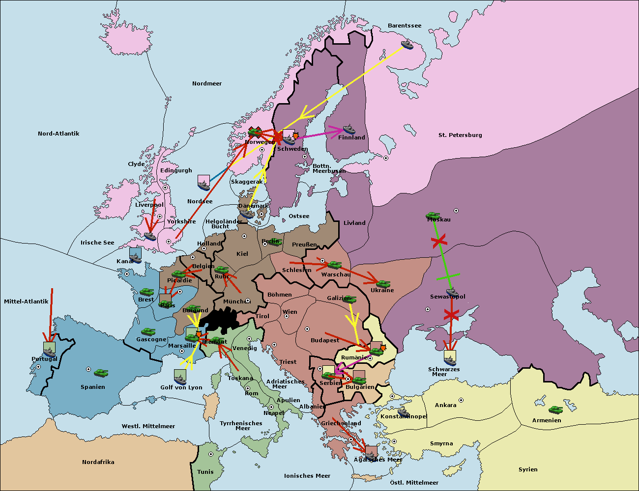 • Die Flotte in St. Petersburg (Nordküste) support move nach Norwegen von Nordsee.