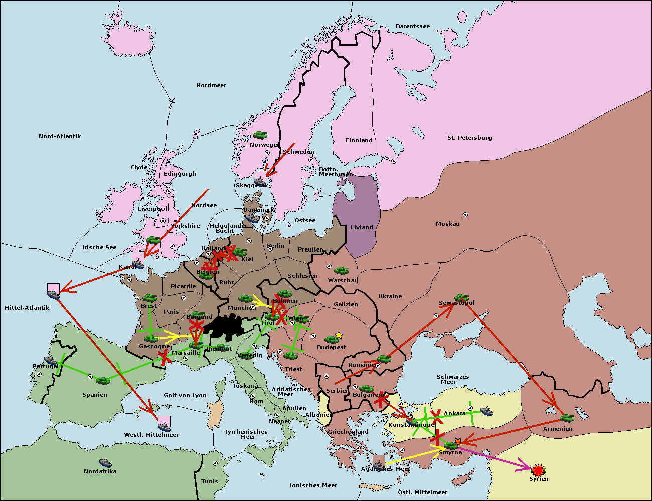 • Die Flotte in Nord Afrika move nach westl. Mittelmeer.
