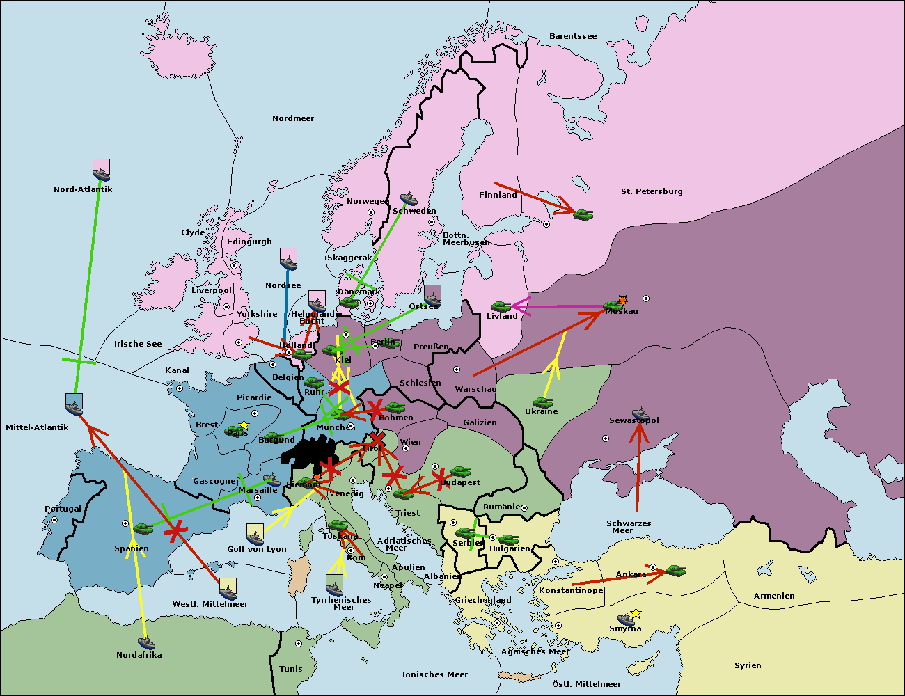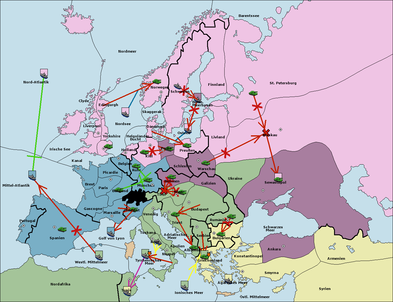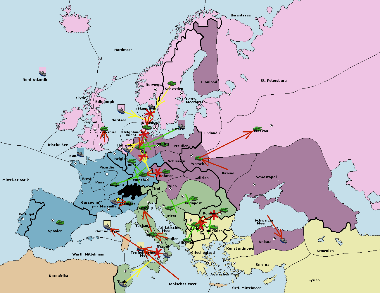 • Die Armee in Kiel support move nach München von Berlin.