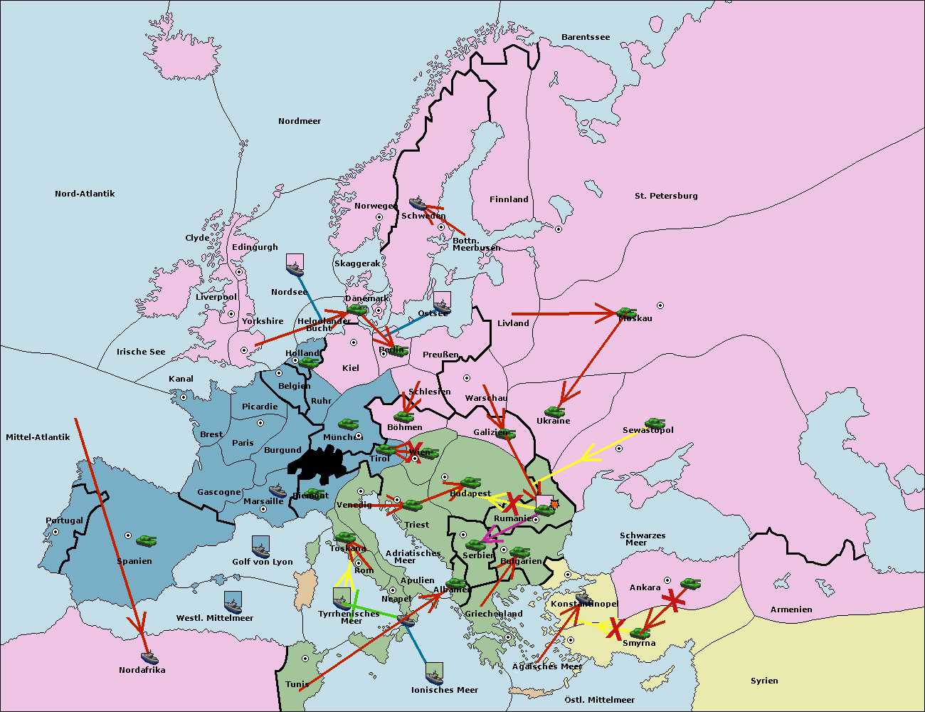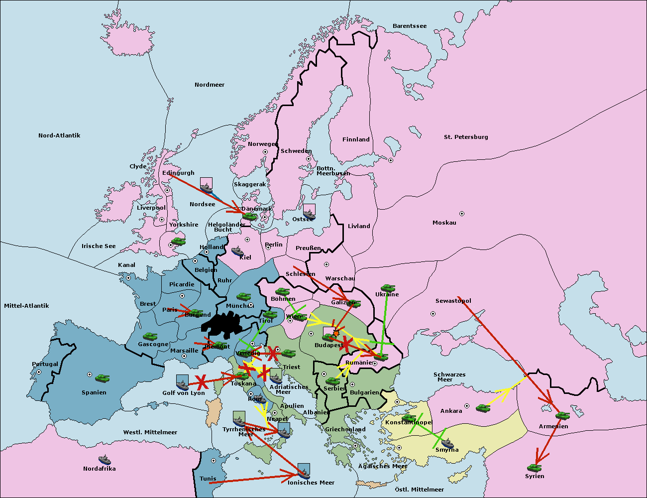 • Die Armee in Wien support move nach Budapest von Galizien.