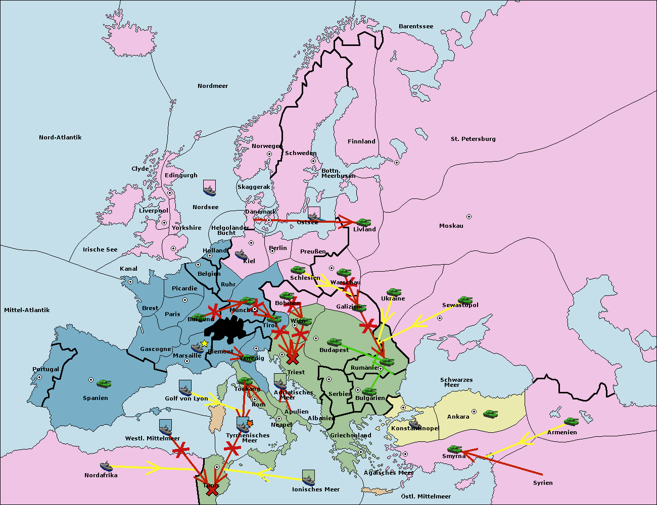 • Die Armee in Venedig support move nach Triest von Tirol. (gescheitert) (verdrängt)