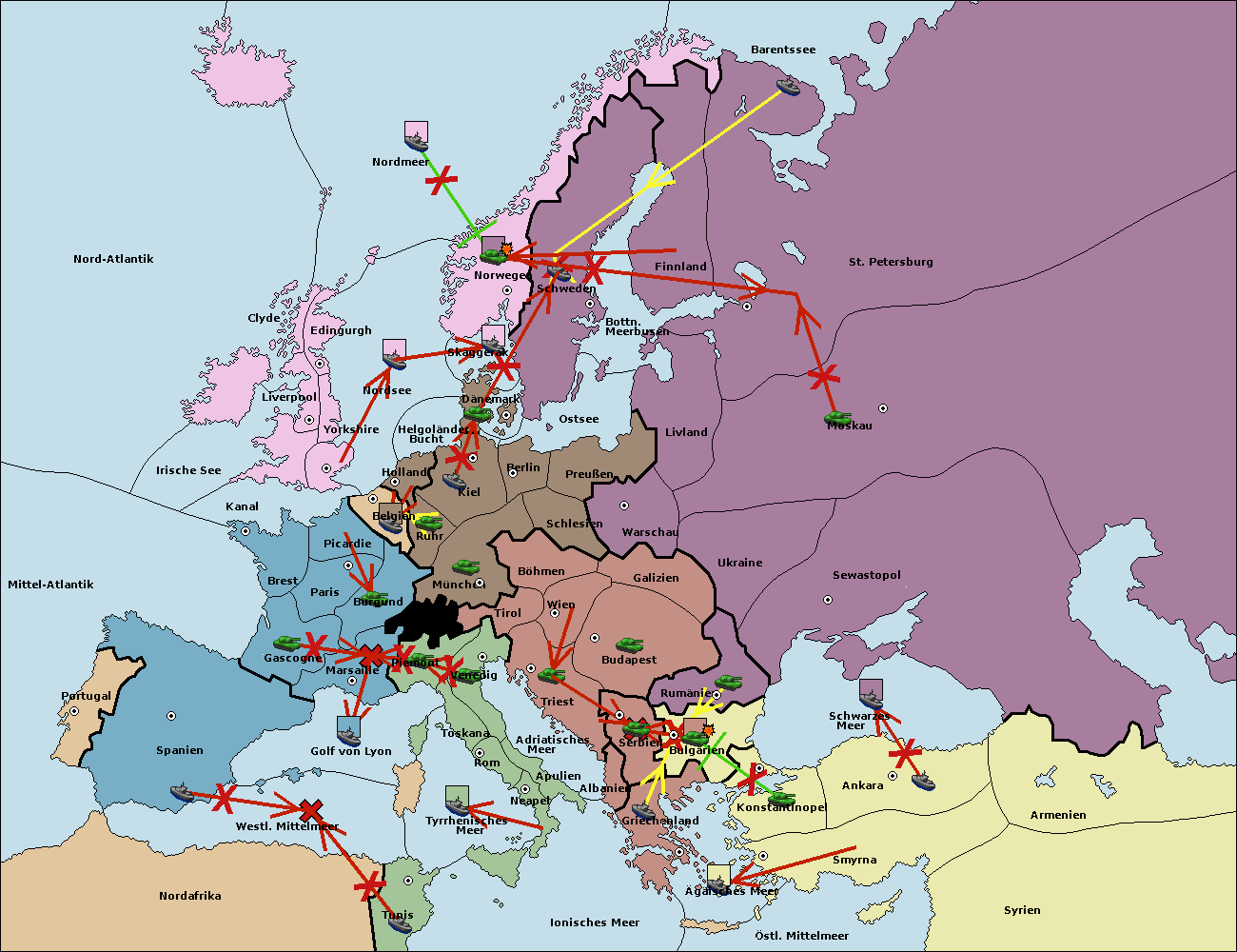 • Die Armee in Bulgarien wird zerstörtFlotte in Bulgarien gebaut.