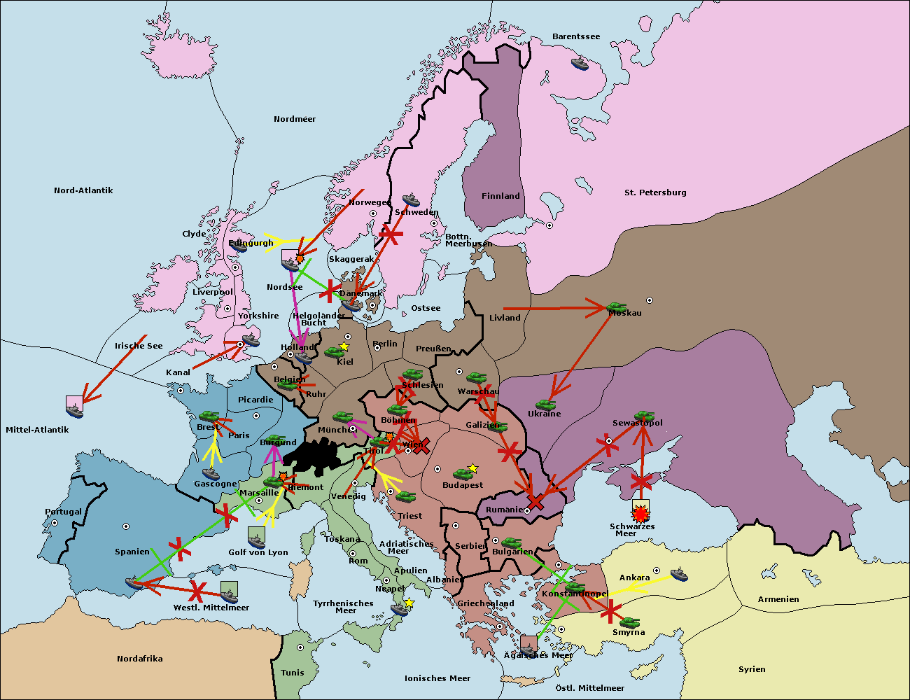 • Die Flotte in Spanien (Südküste) move nach westl. Mittelmeer. (gescheitert)