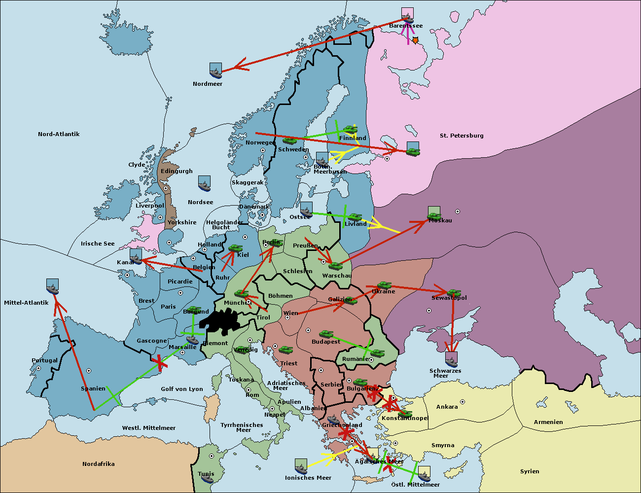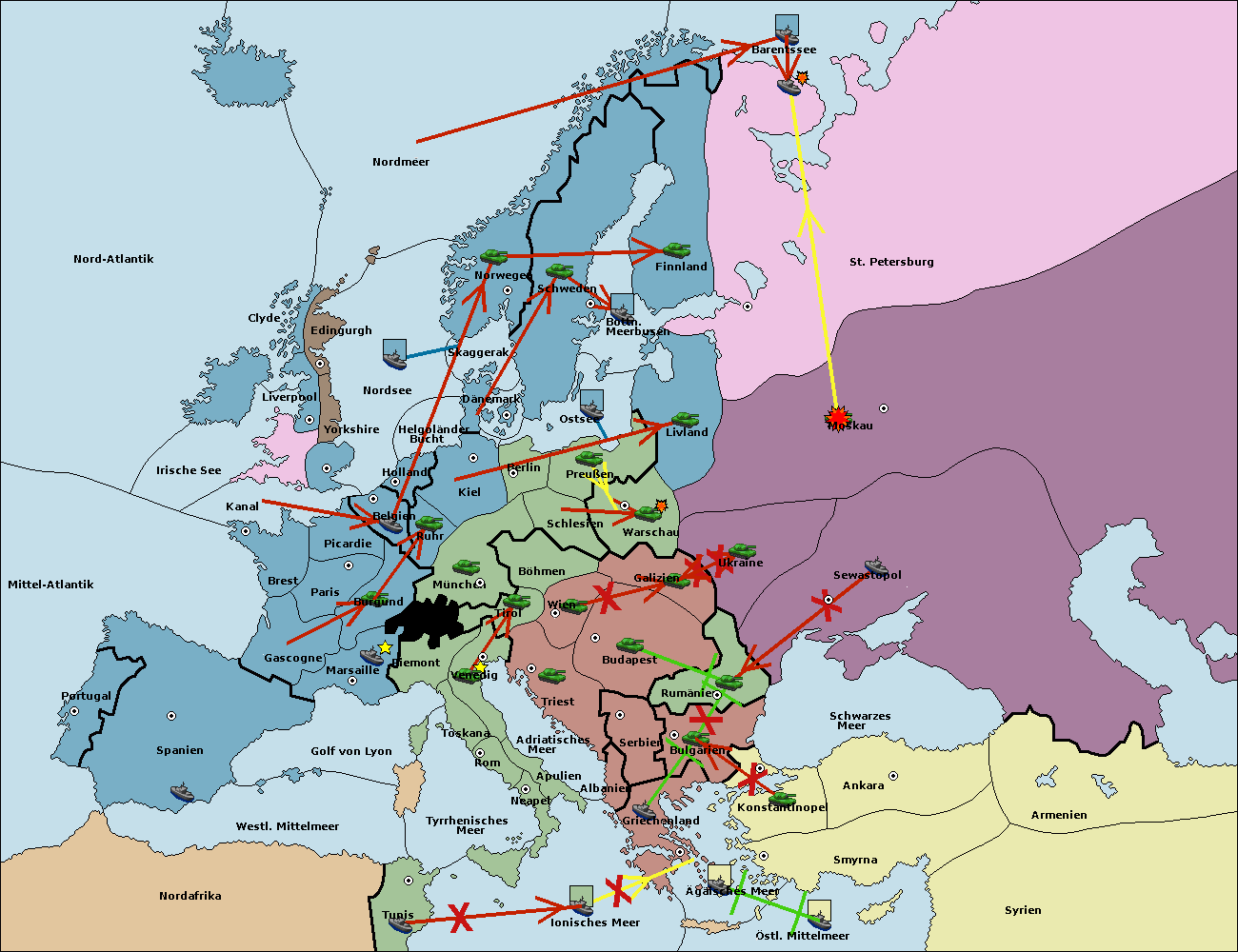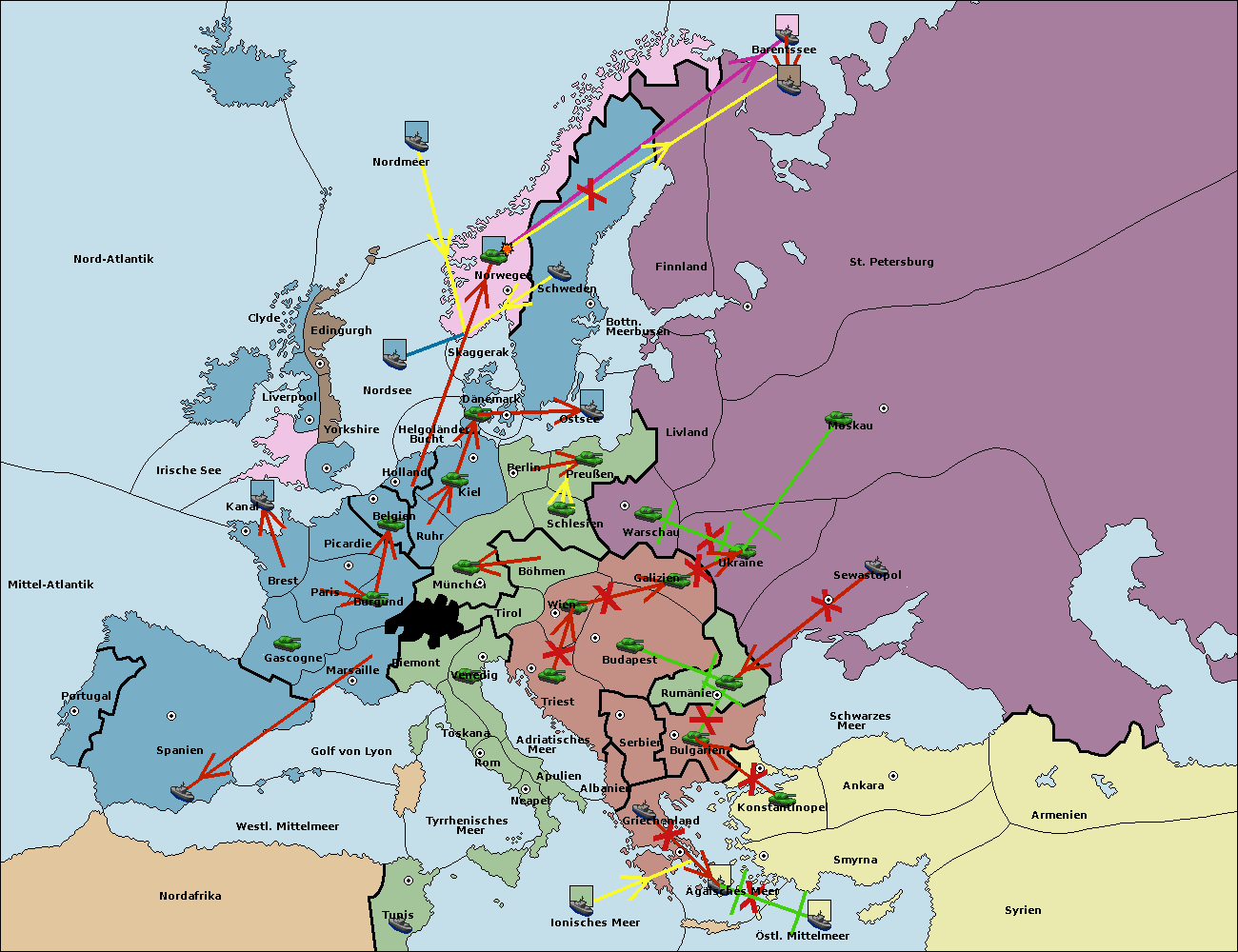 • Die Flotte in St. Petersburg (Nordküste) move nach Norwegen.