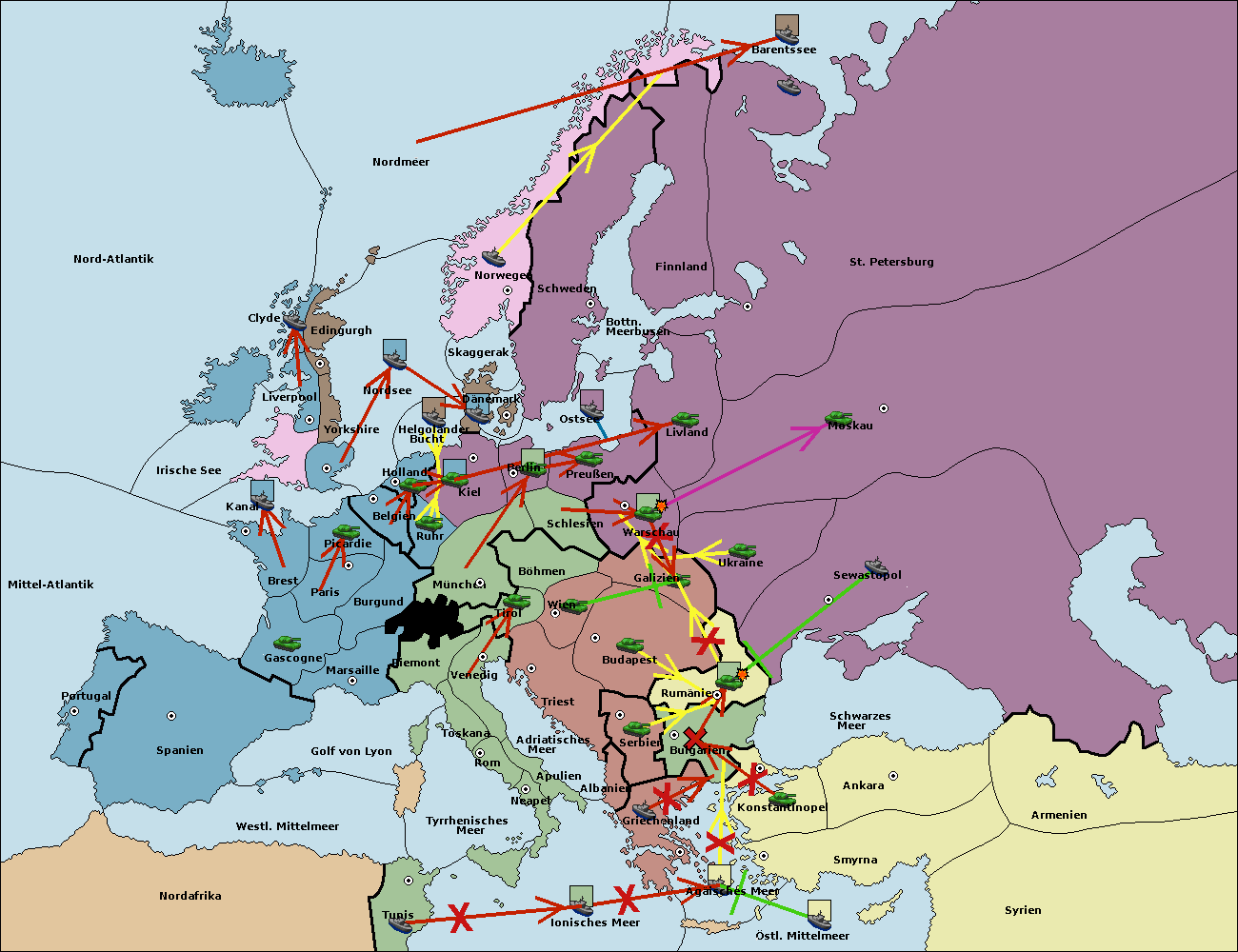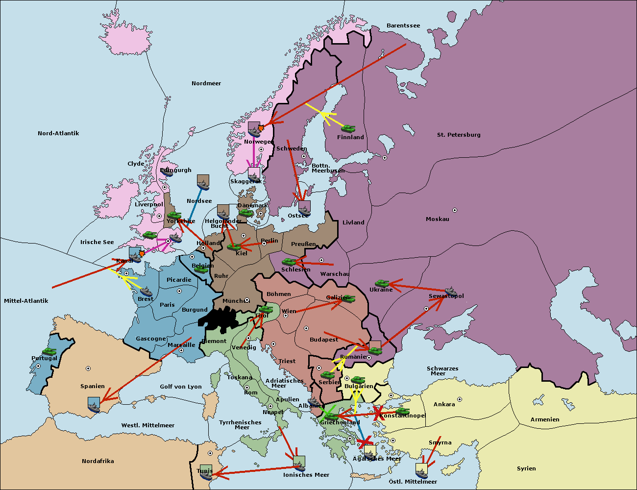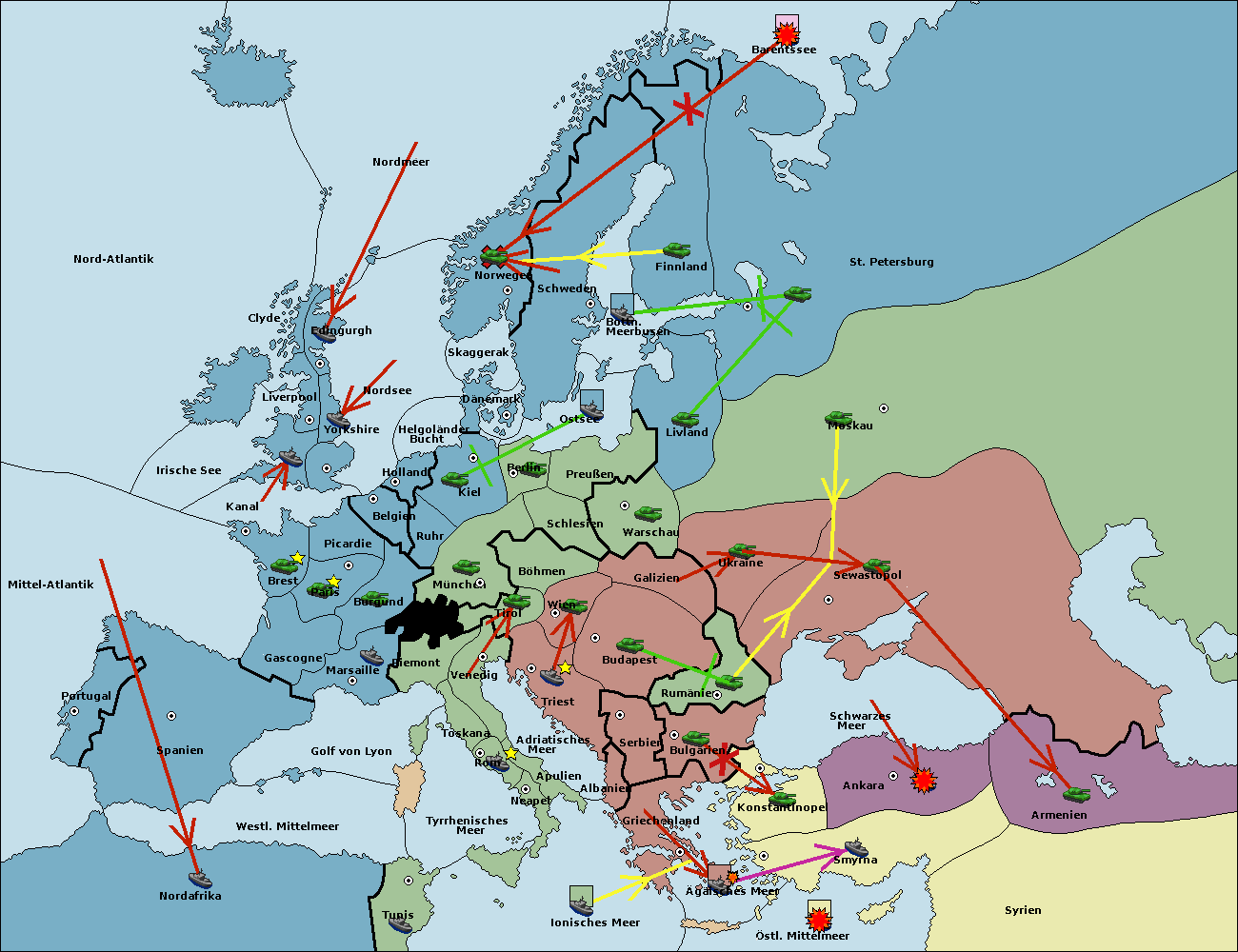 • Die Flotte in St. Petersburg (Nordküste) move nach Norwegen.