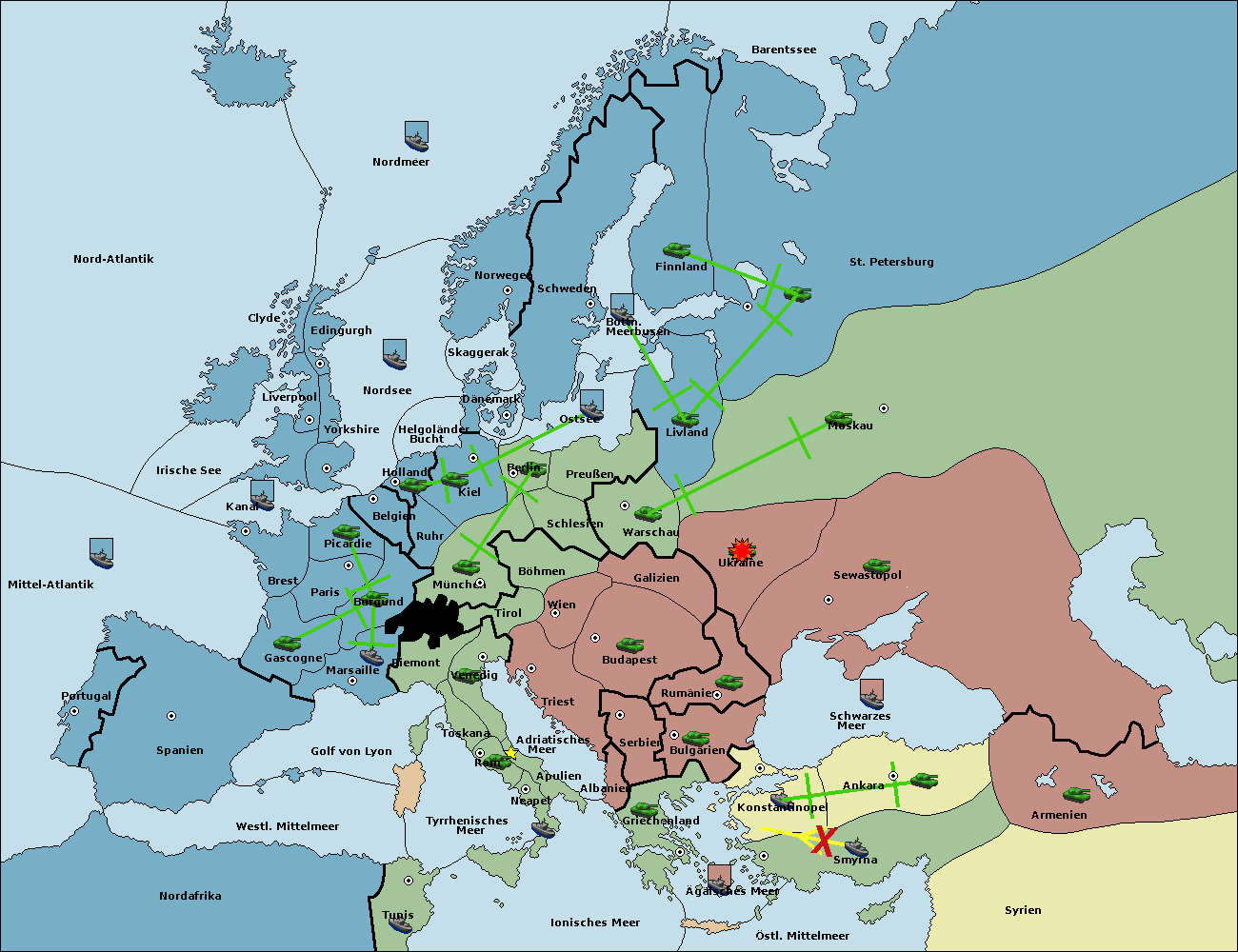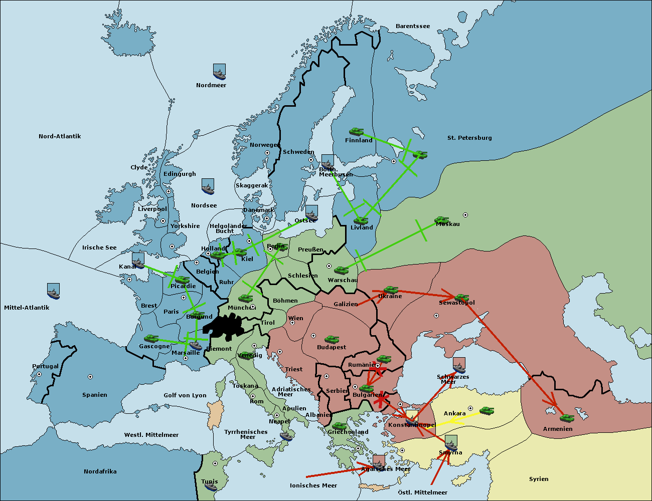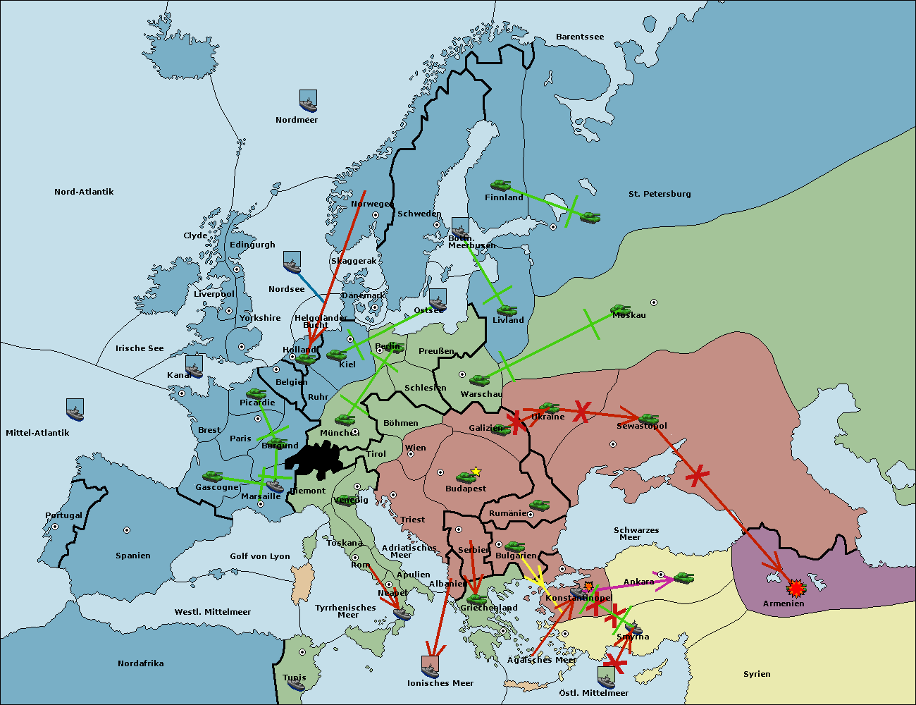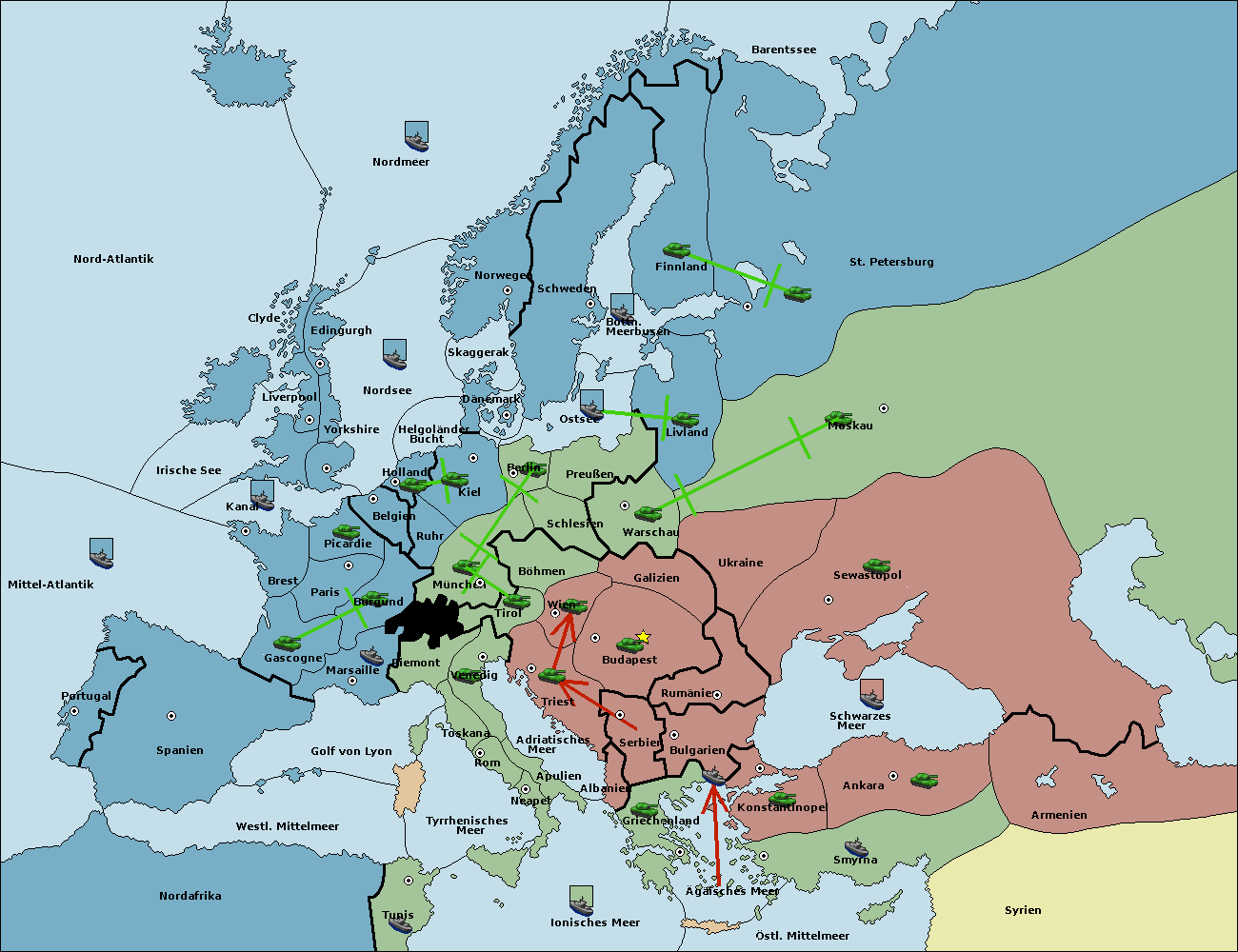 • Die Armee in Konstantinopel support hold nach Bulgarien.