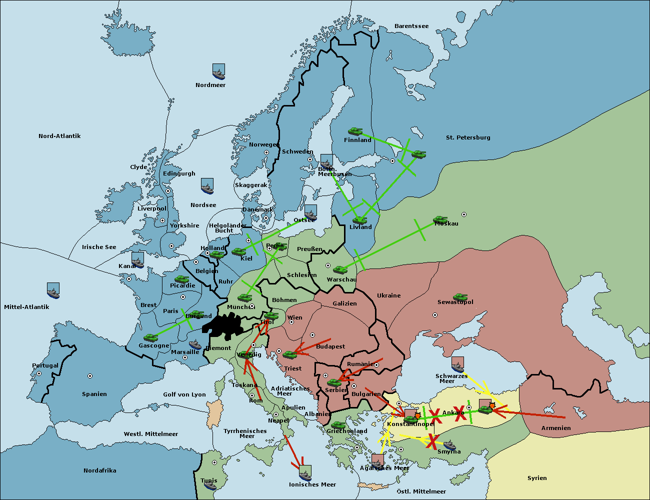 • Die Armee in Ankara support hold nach Konstantinopel.