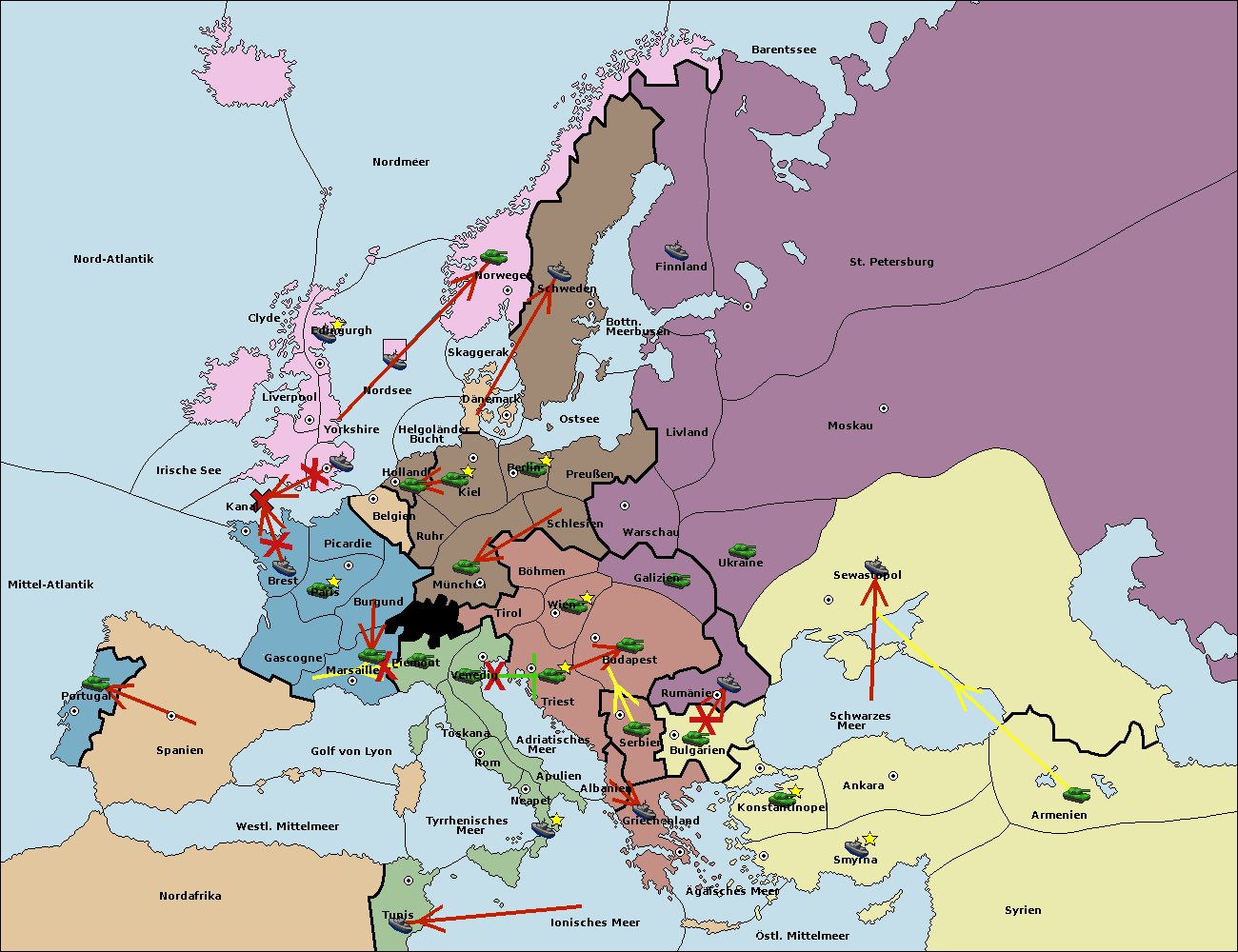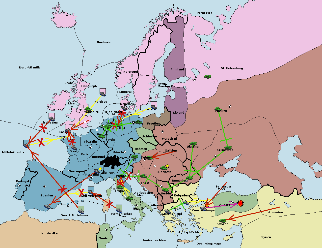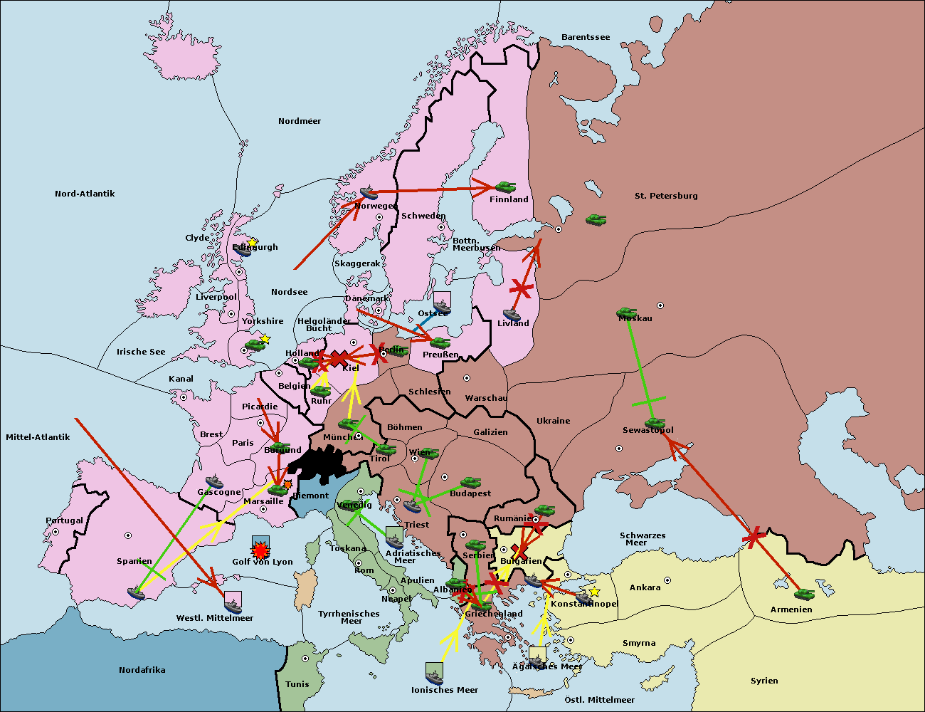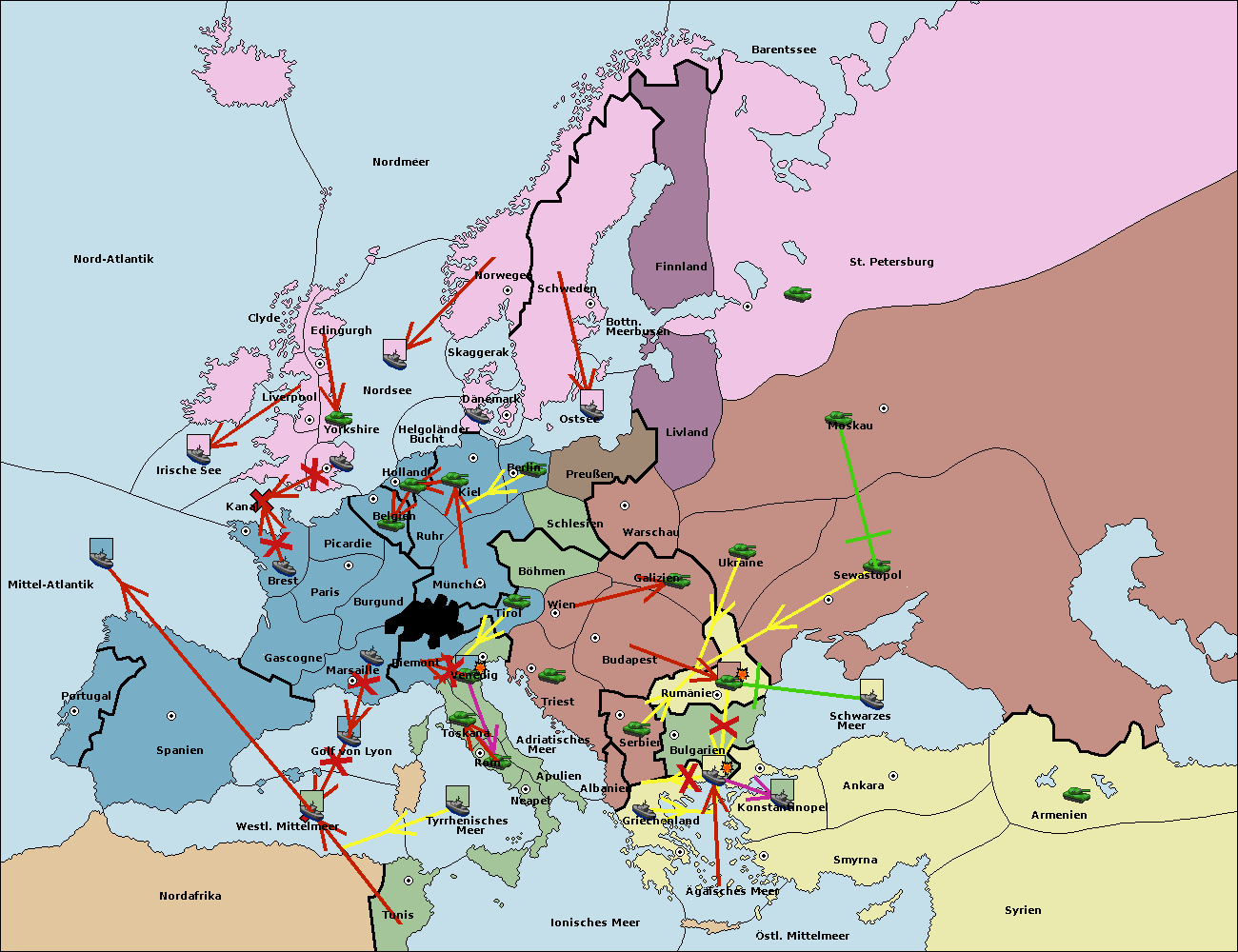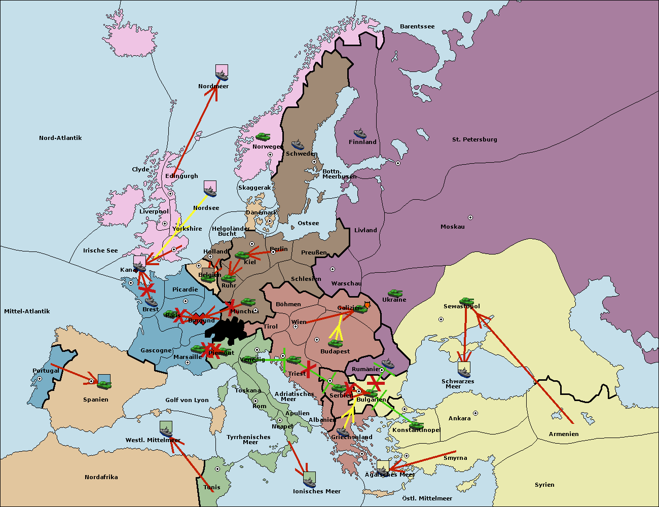• Die Armee in Konstantinopel support hold nach Bulgarien.