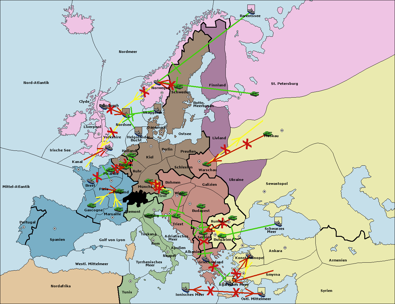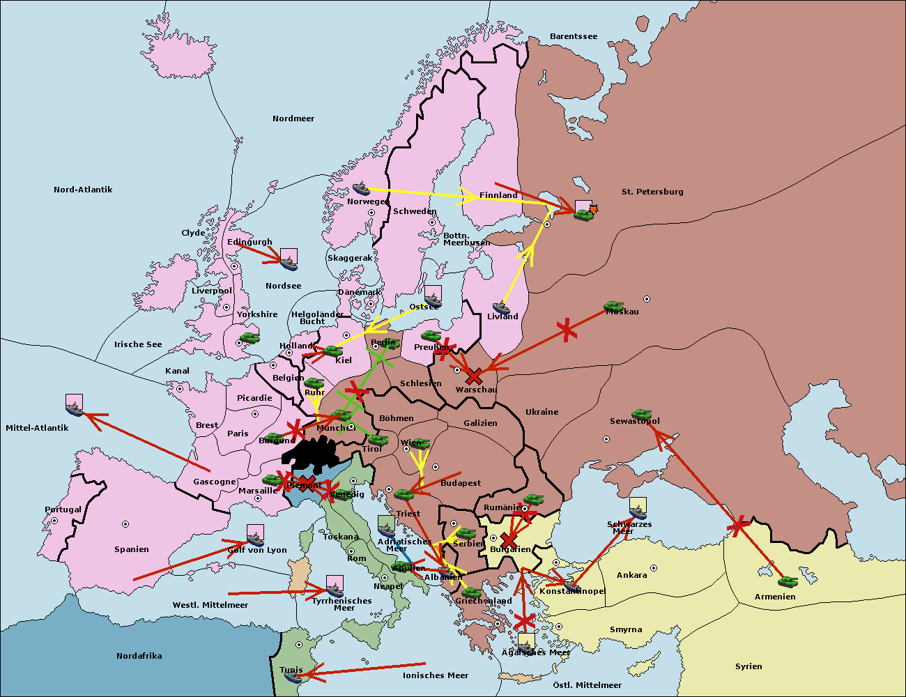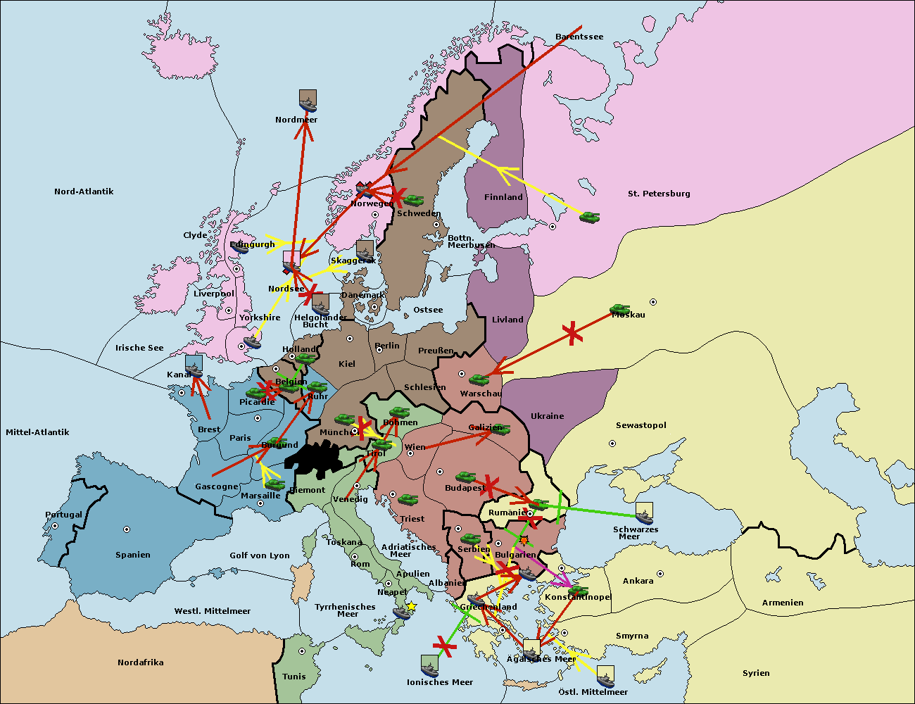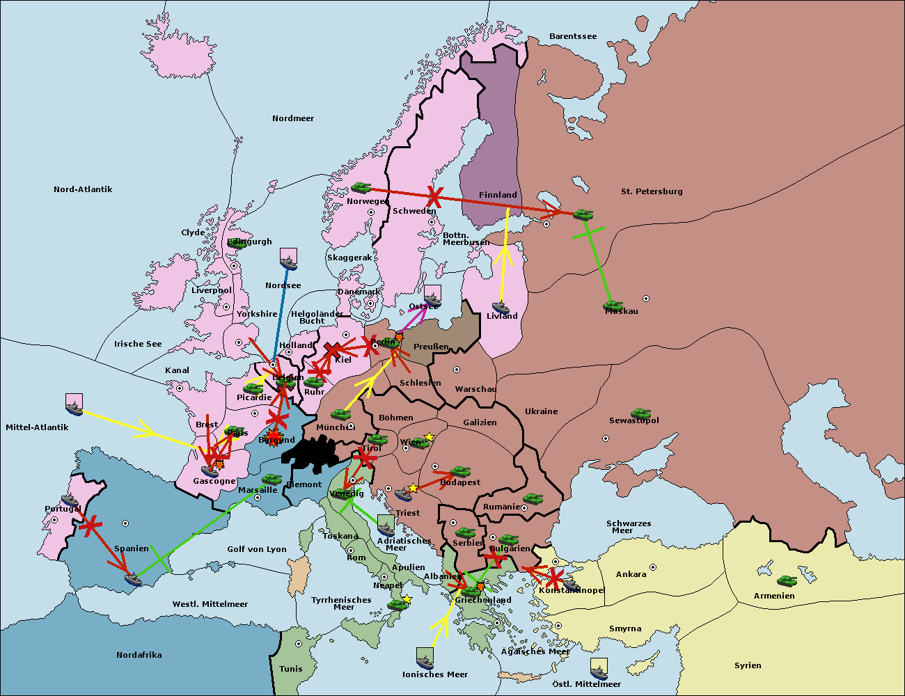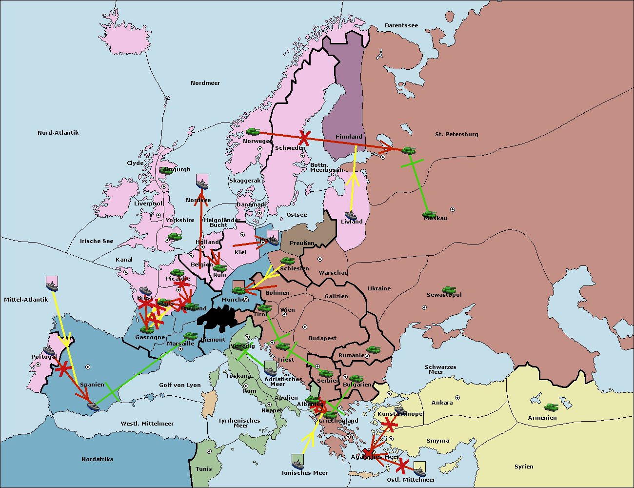 • Die Armee in Konstantinopel support hold nach Bulgarien.