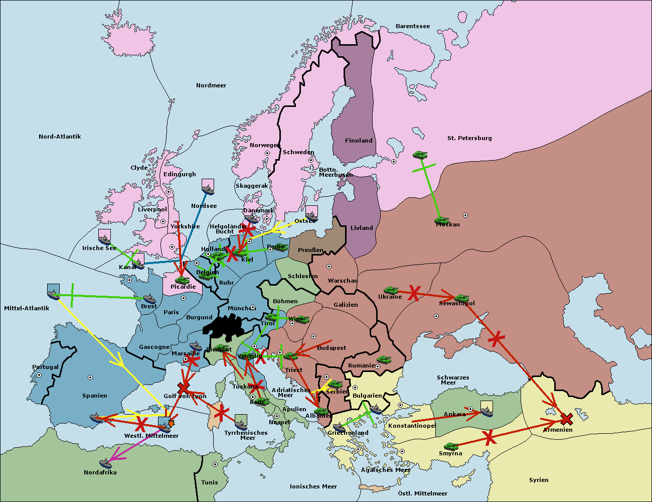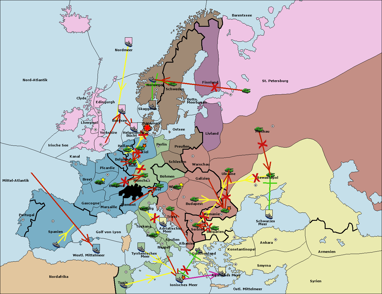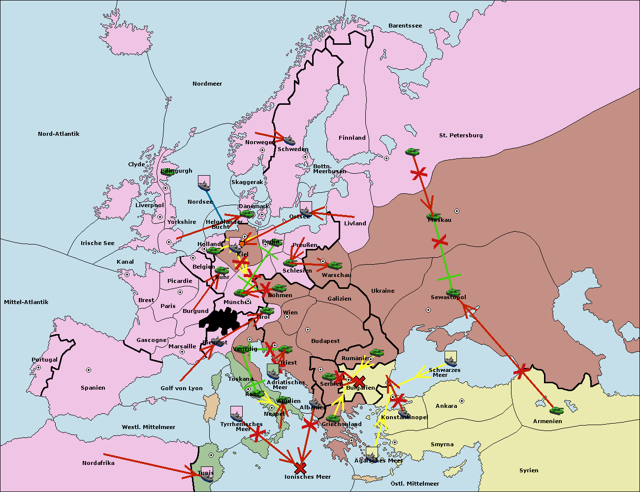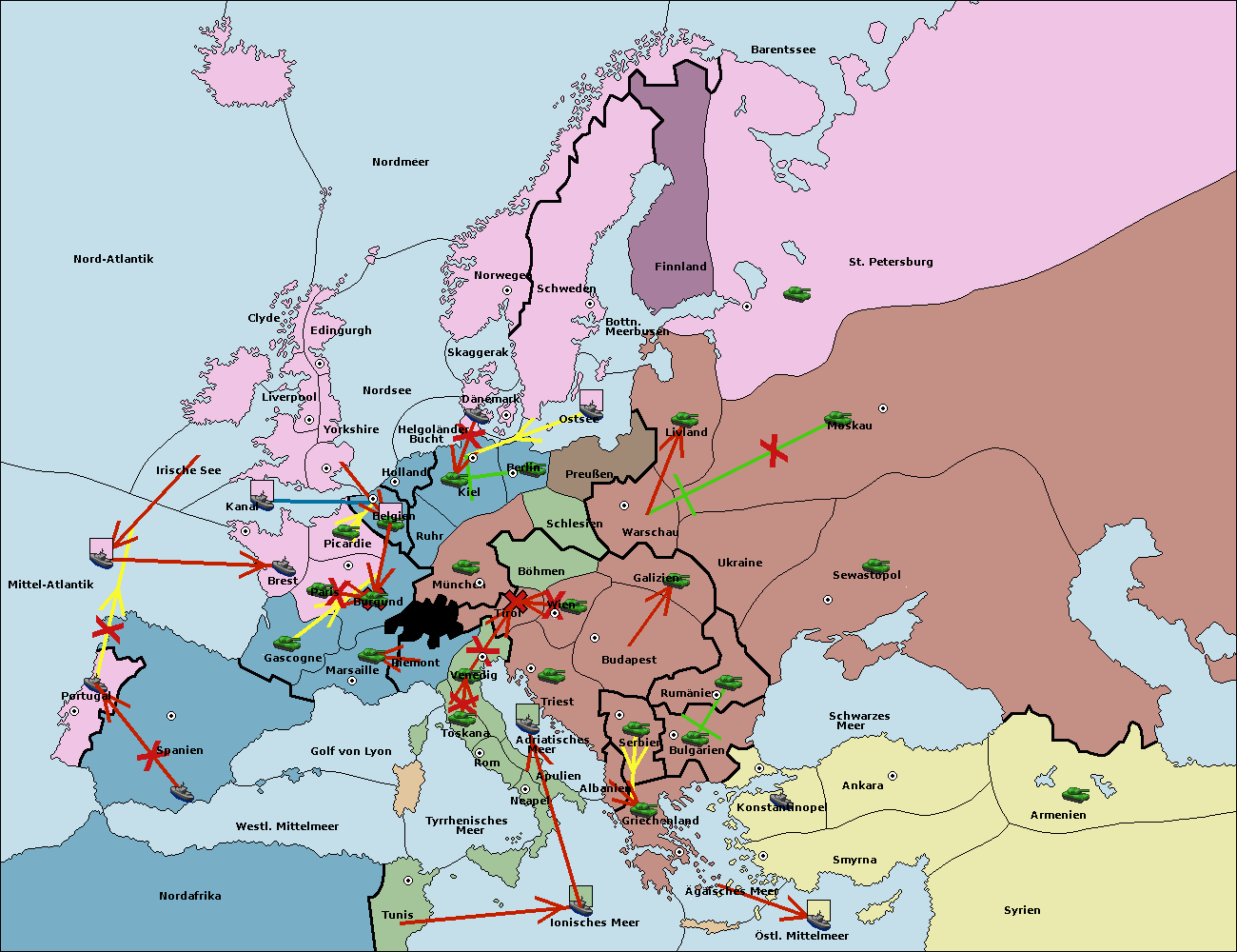 • Die Armee in Kiel wird zerstörtFlotte in Kiel gebaut.