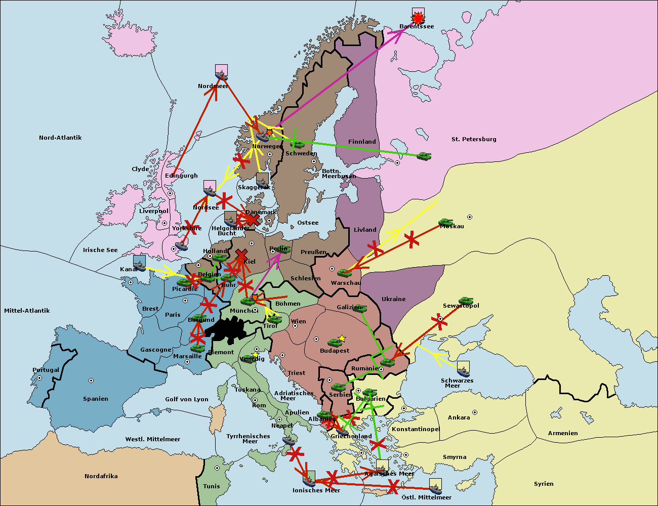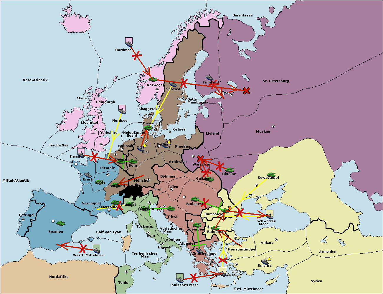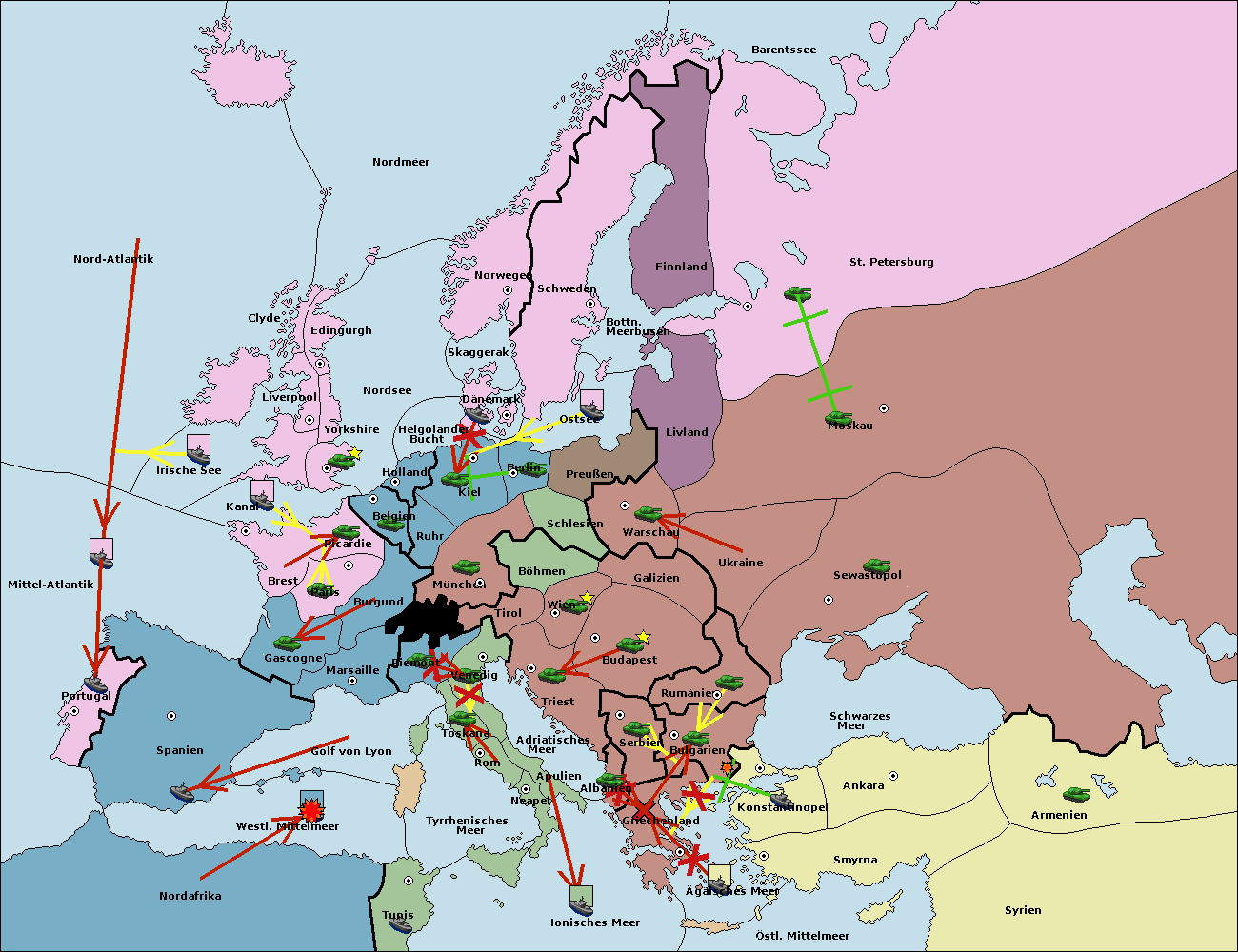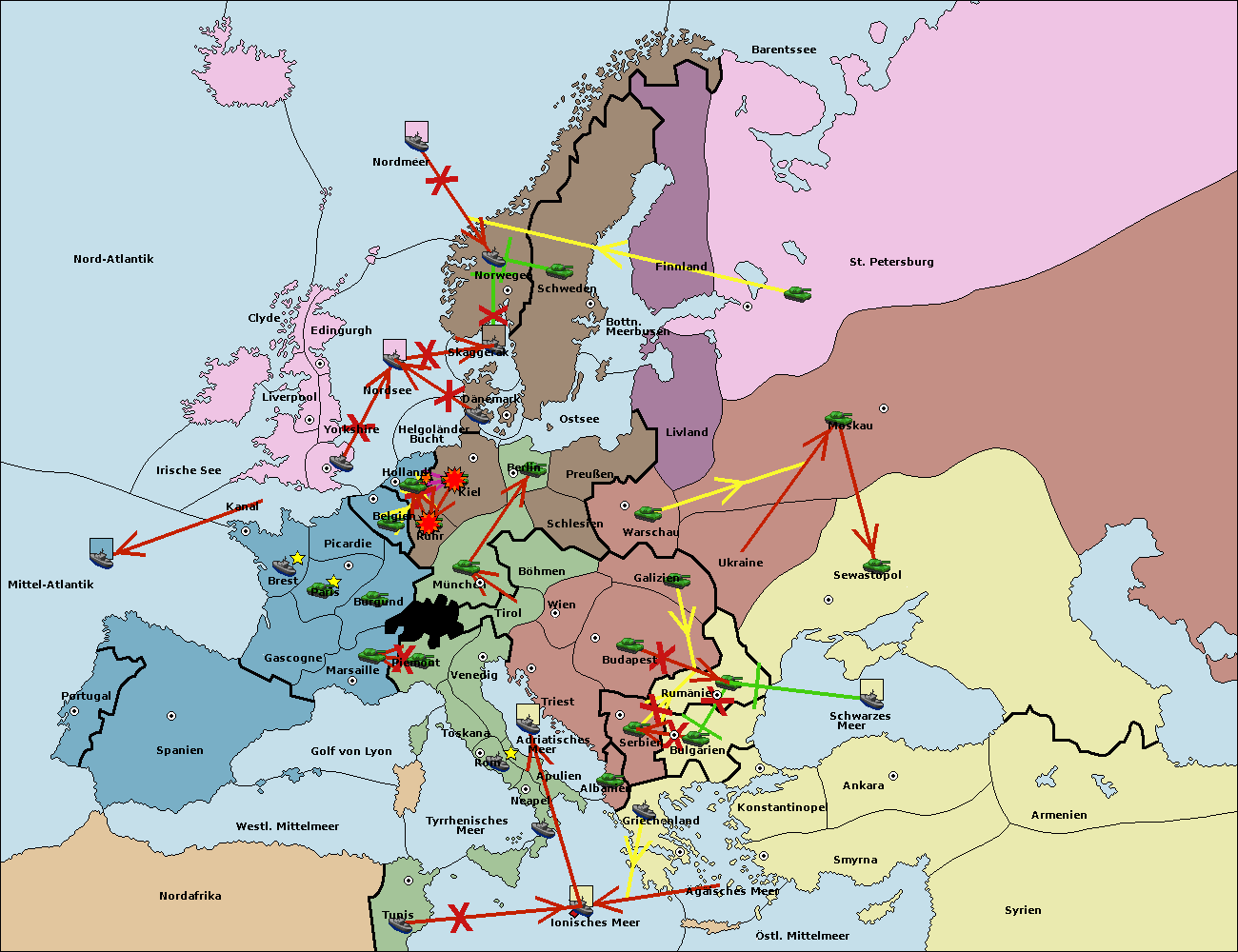 • Die Armee in Kiel wird zerstörtFlotte in Kiel gebaut.