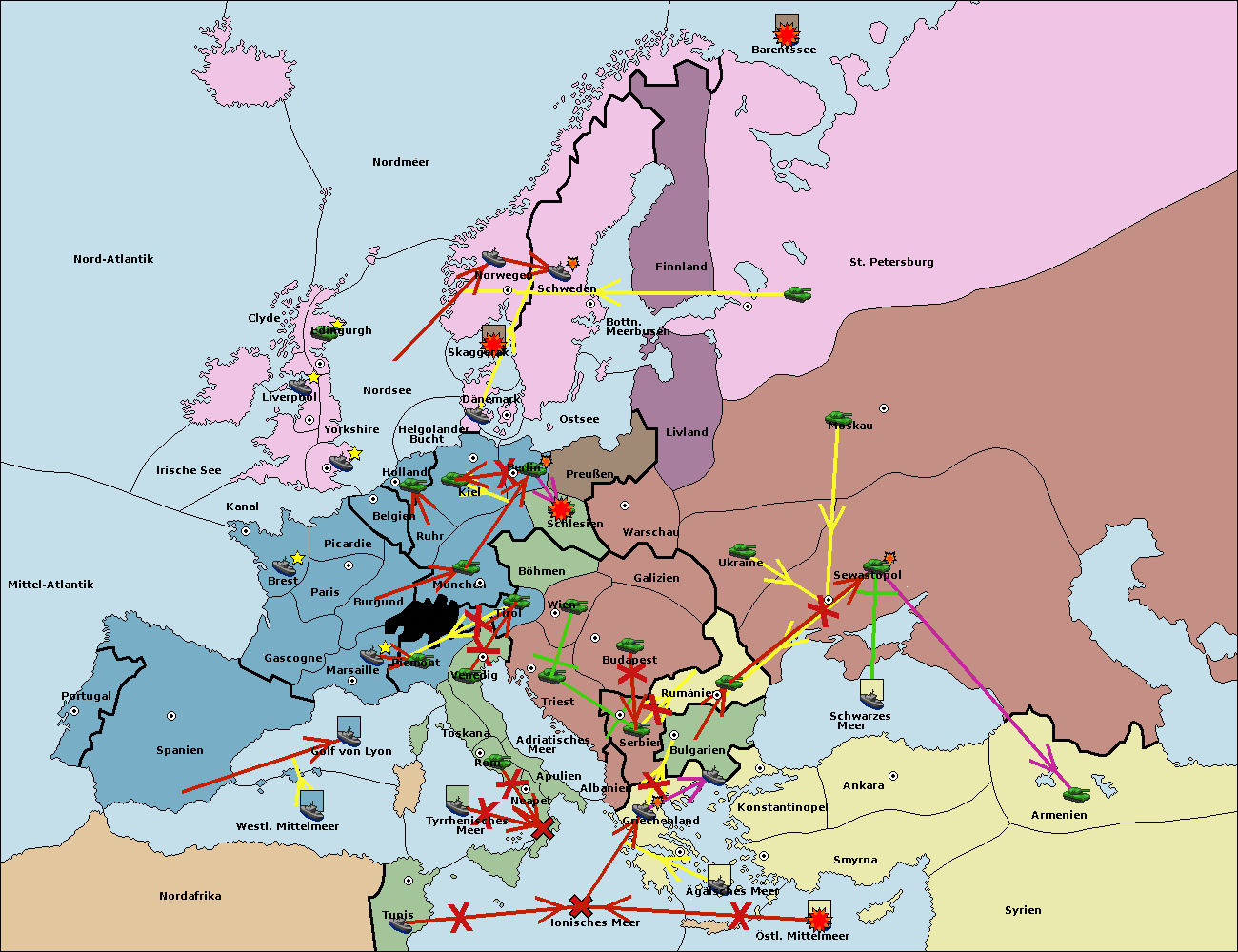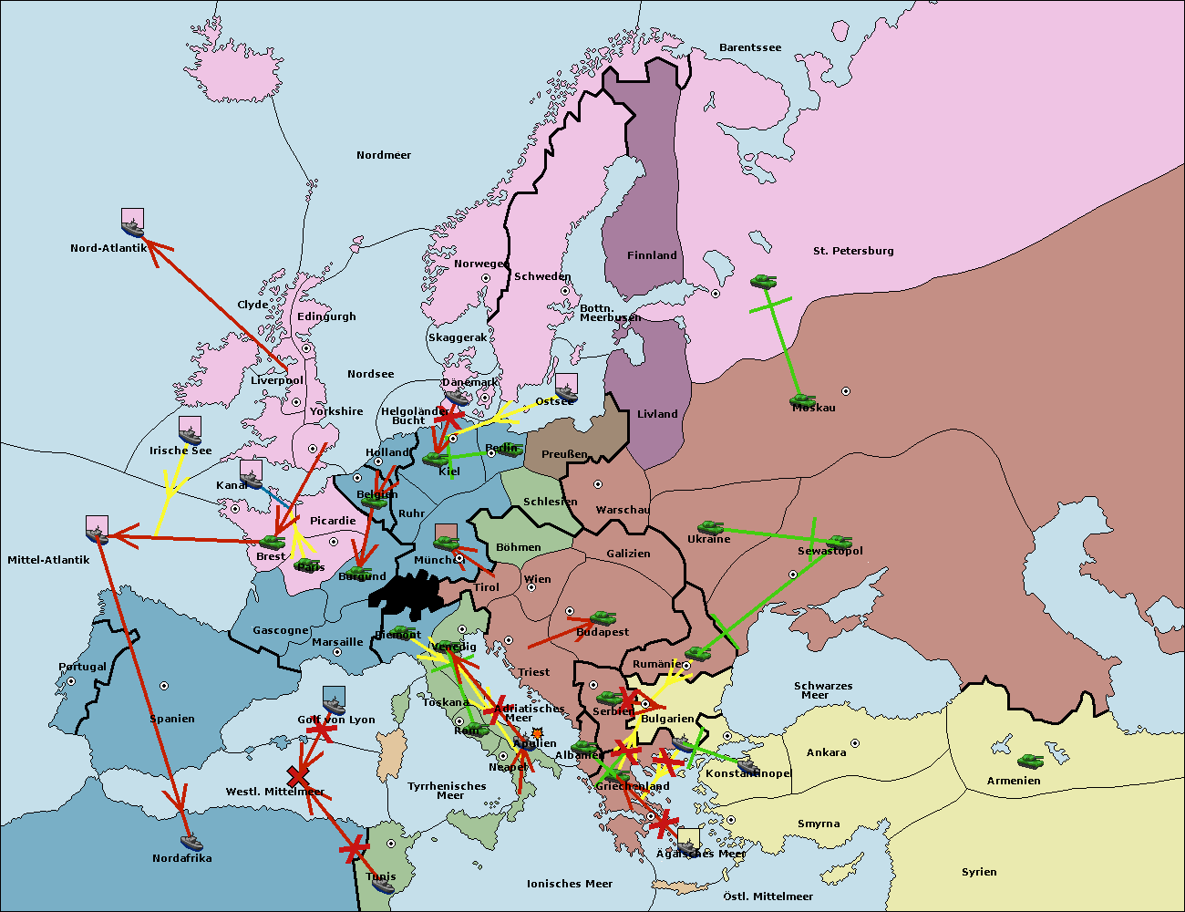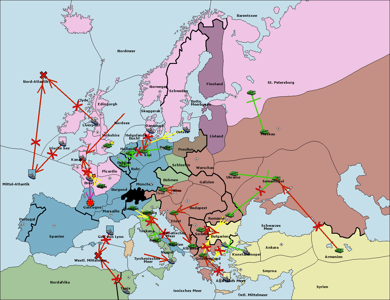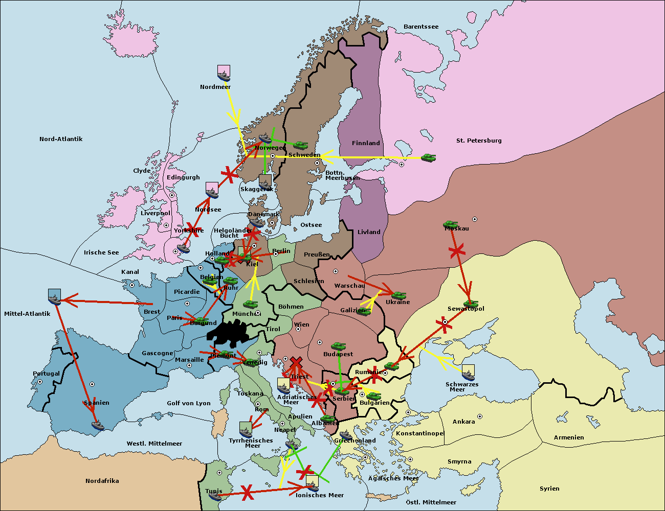 • Die Armee in Kiel wird zerstörtFlotte in Kiel gebaut.