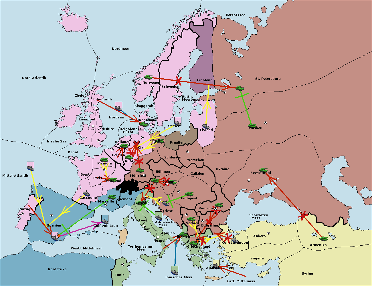 • Die Armee in Piemont support move nach Marseille von Spanien. (gescheitert)