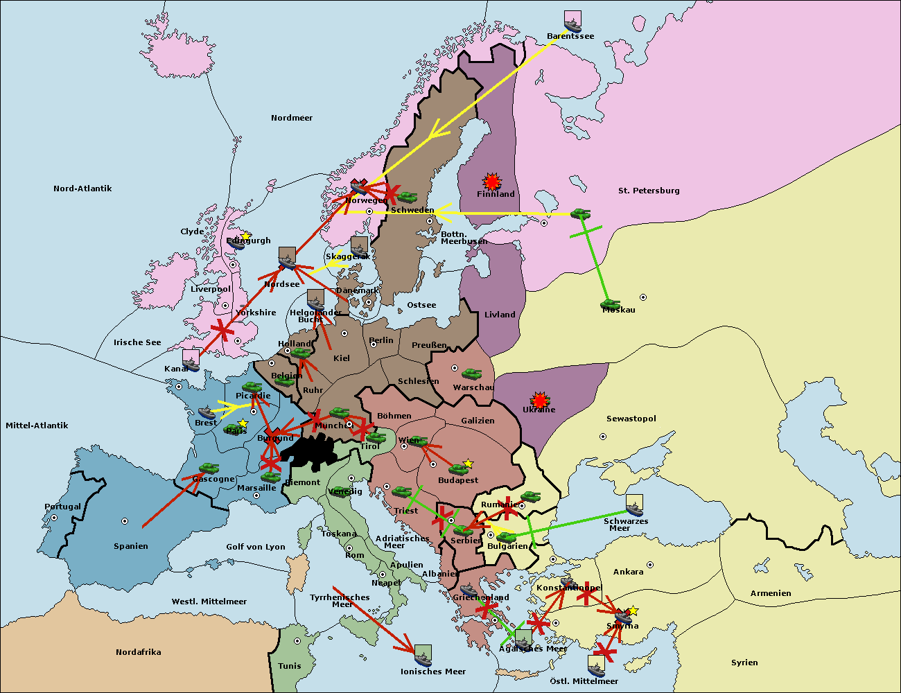 • Die Flotte in Ägäisches Meer support move nach Bulgarien von Konstantinopel. (gescheitert)