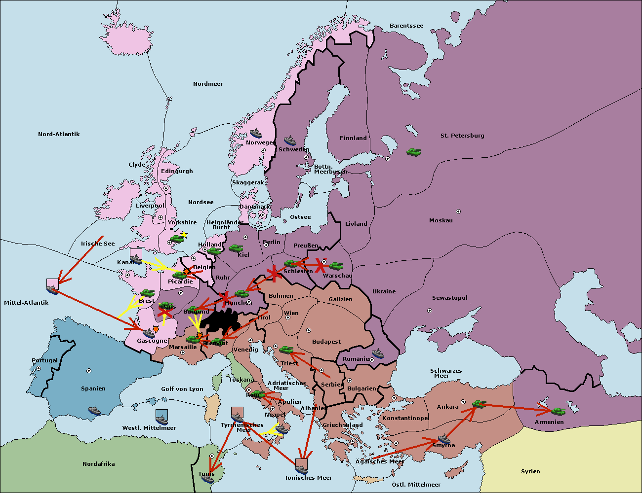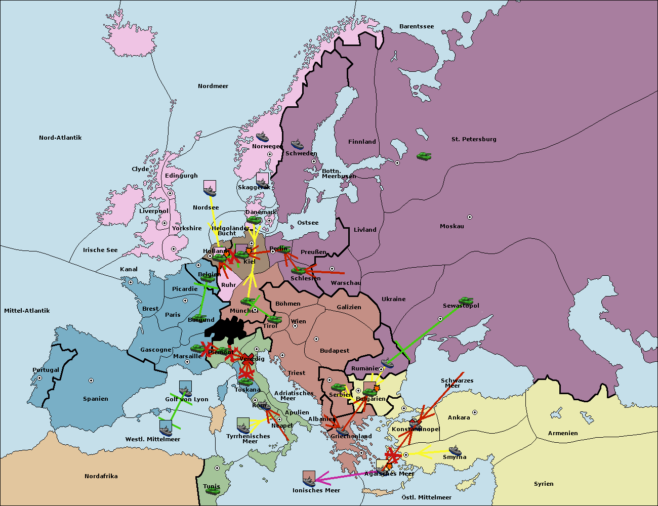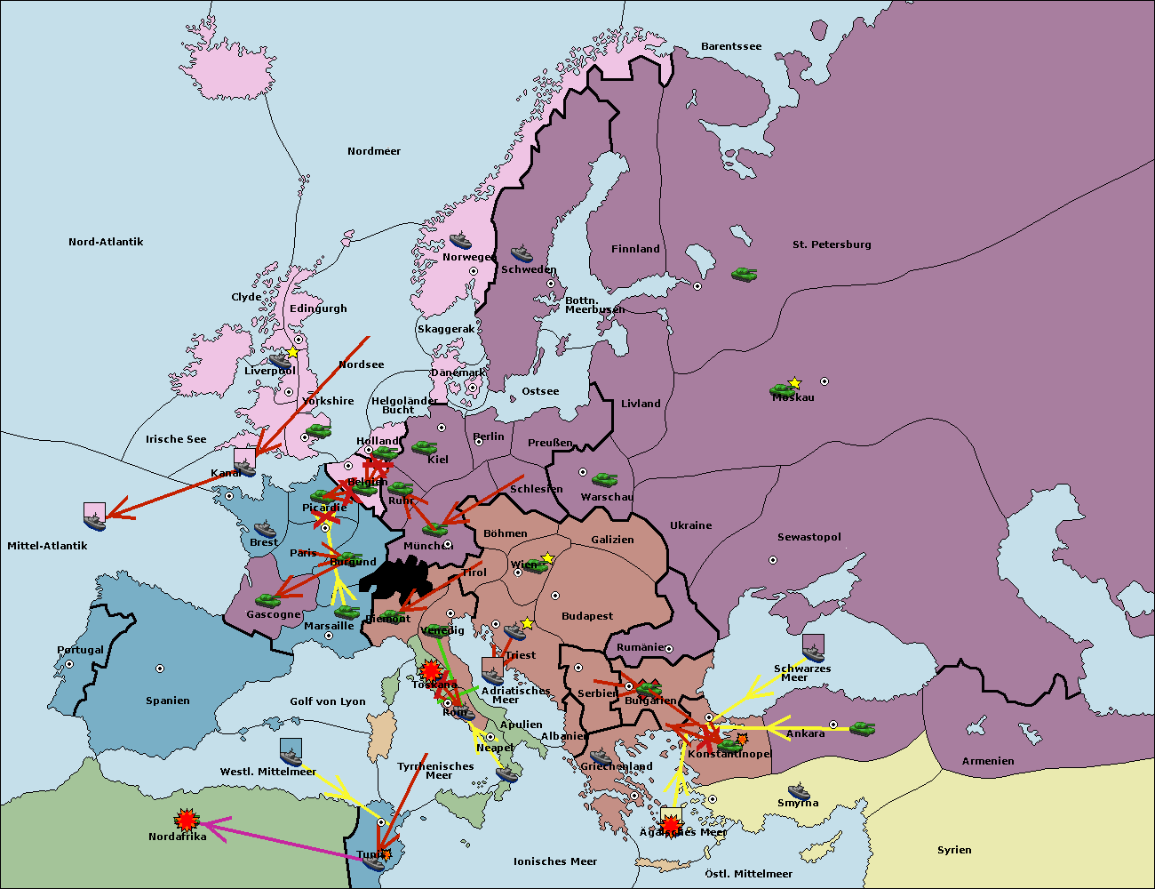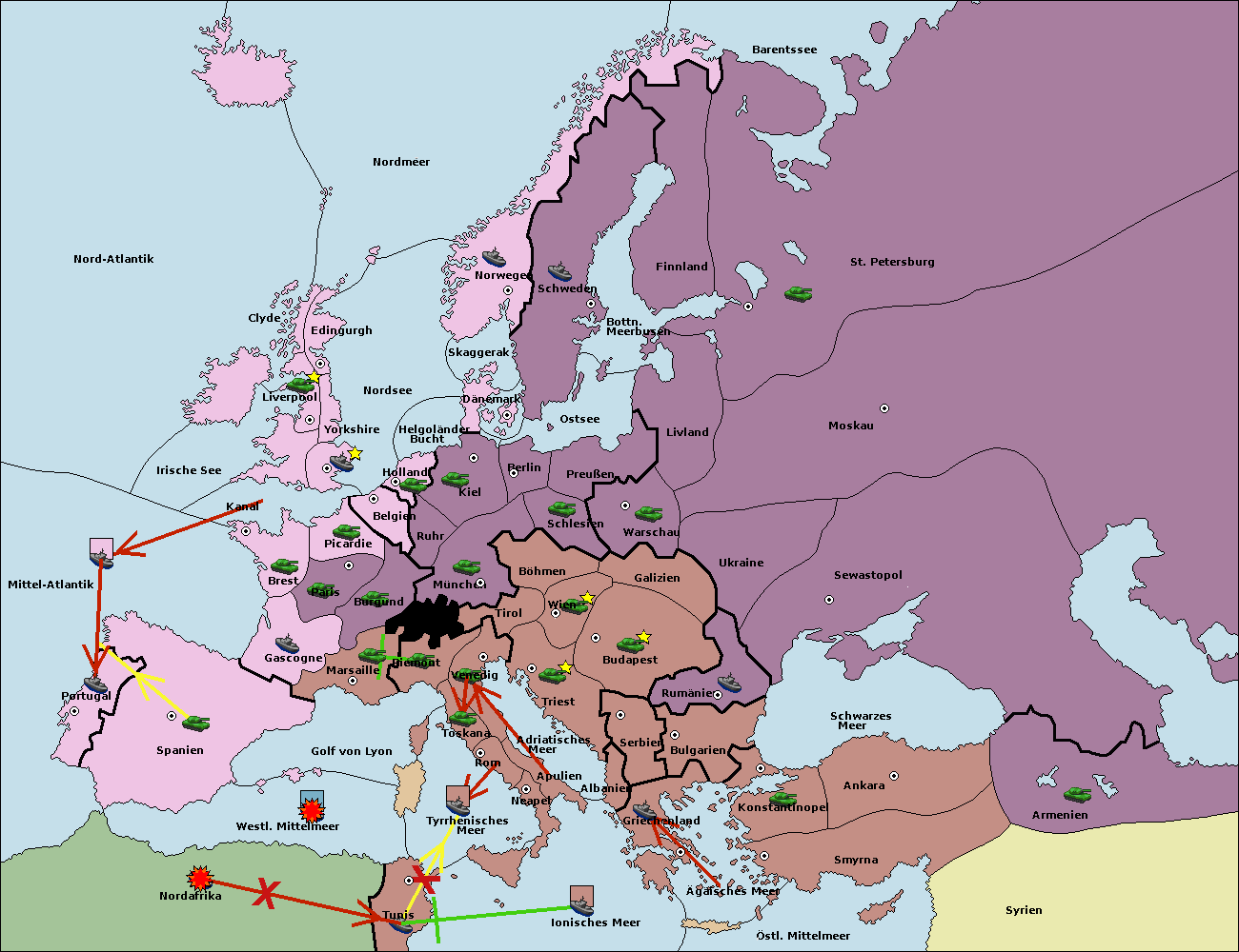 • Die Flotte in Nord Afrika move nach Tunis. (gescheitert)