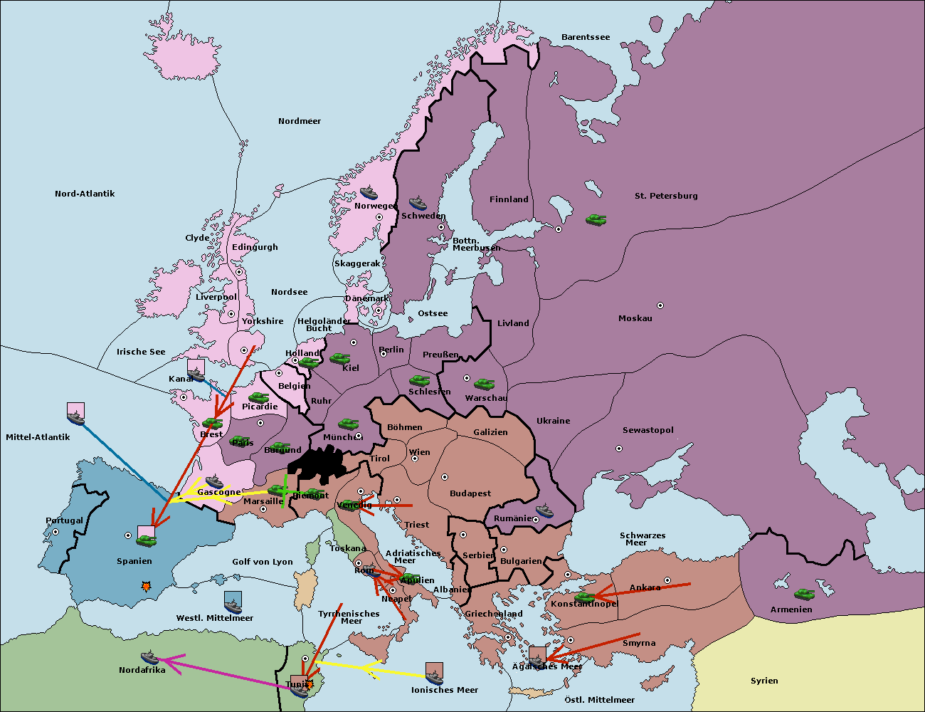 • Die Armee in Marseille support move nach Spanien von Brest.