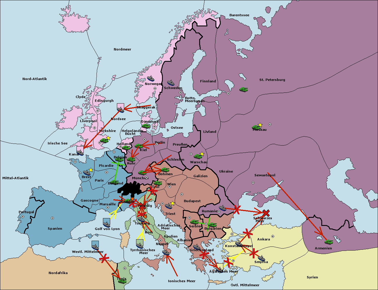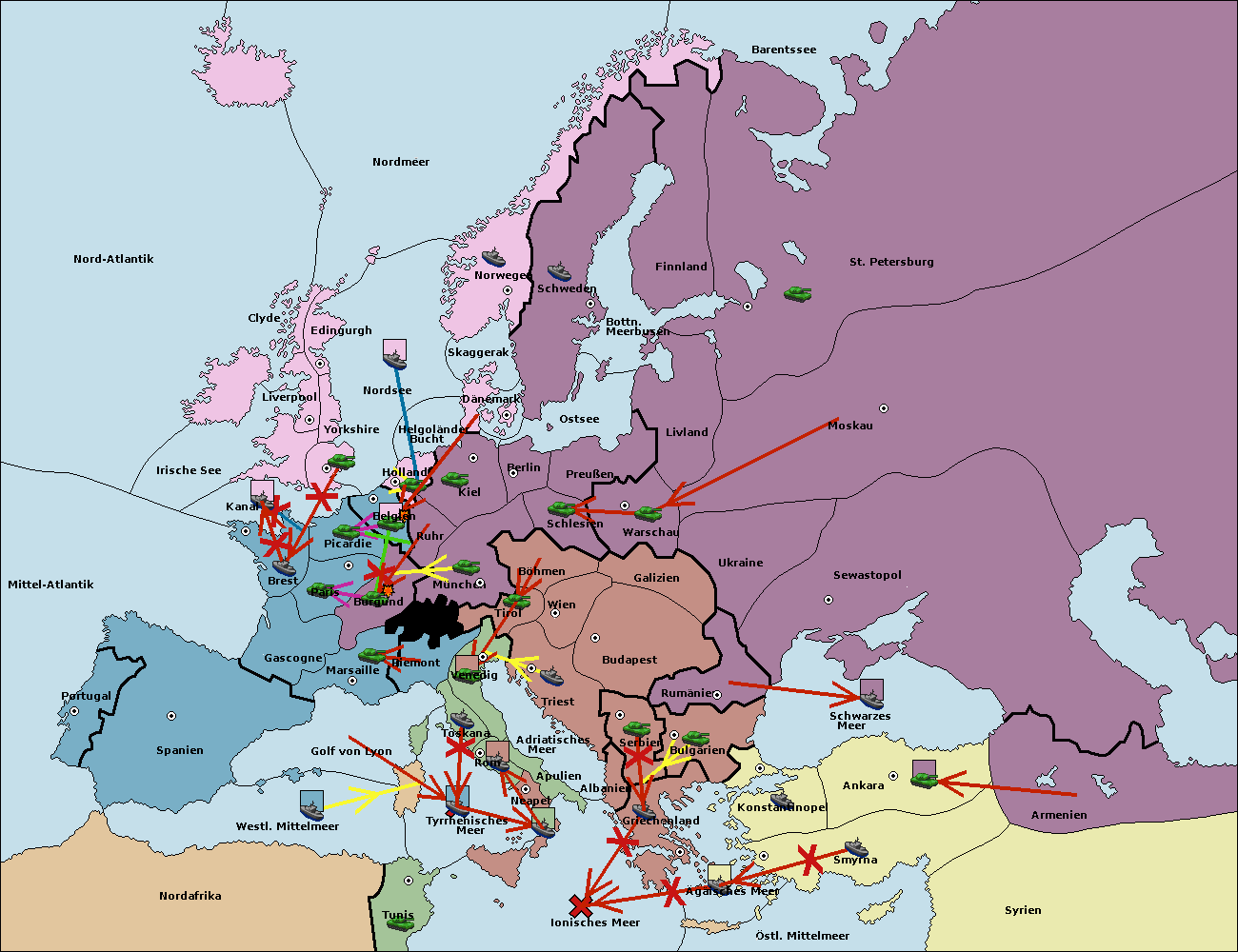 • Die Armee in Kiel support move nach München von Ruhr. (gescheitert)