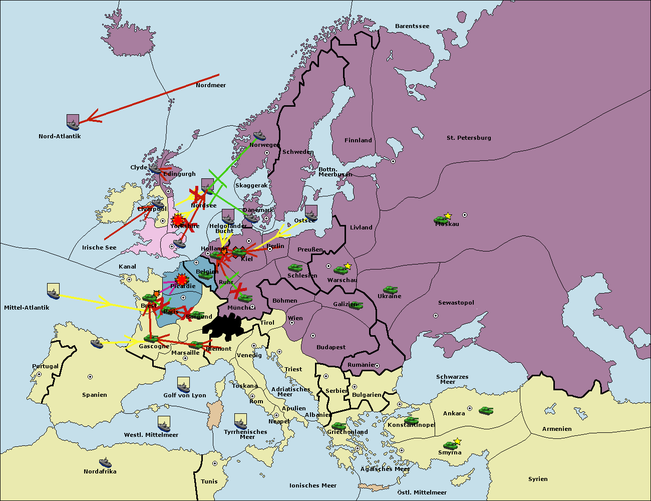 • Die Flotte in Nordsee support move nach Belgien von Holland. (gescheitert)
