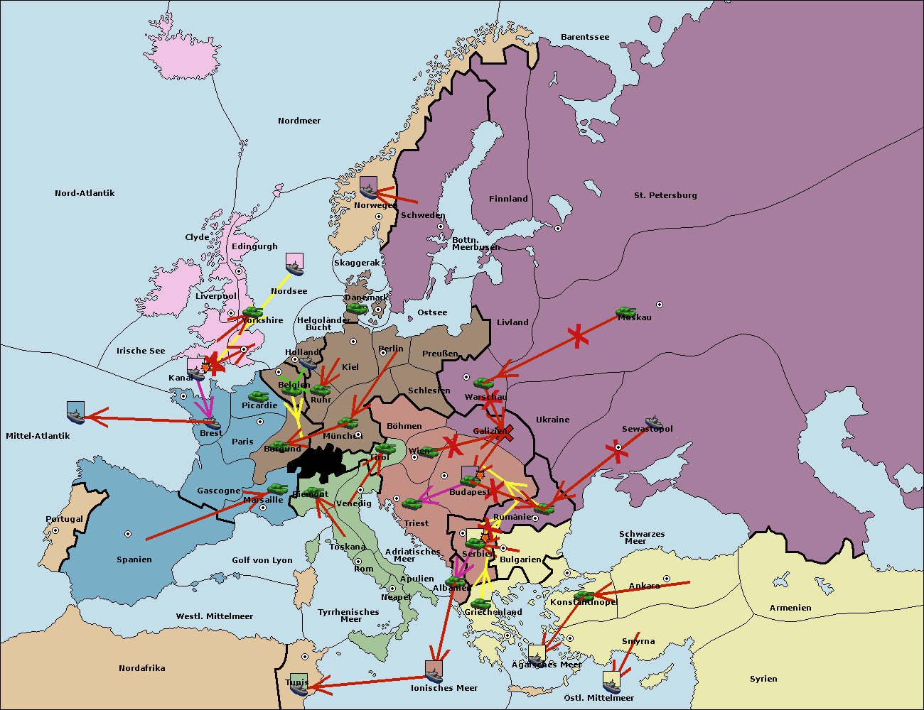 • Die Armee in Budapest support move nach Galizien von Warschau. (gescheitert)