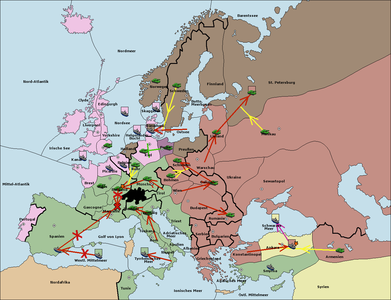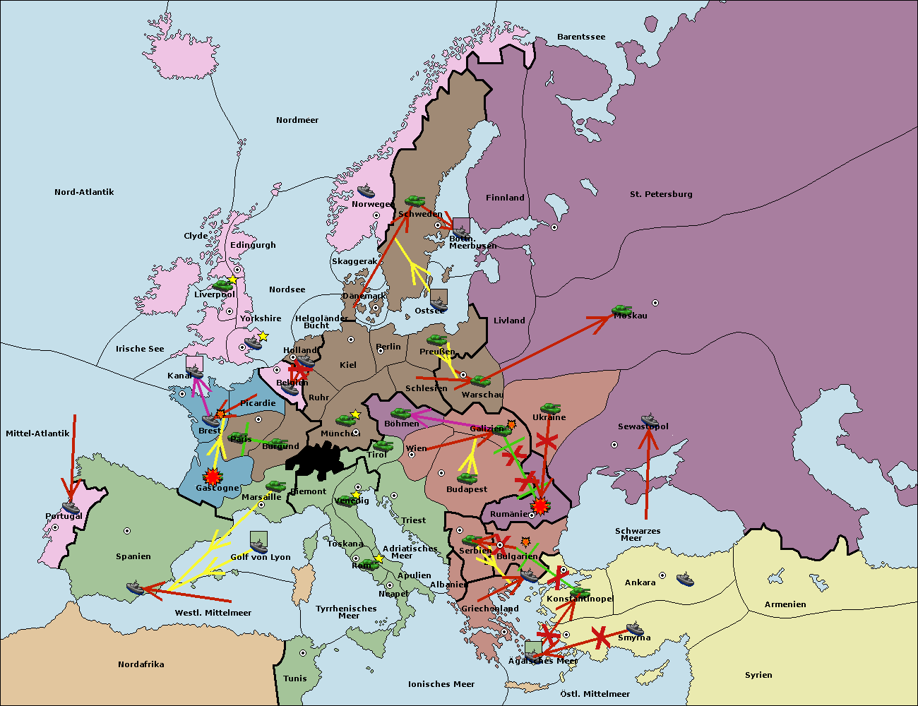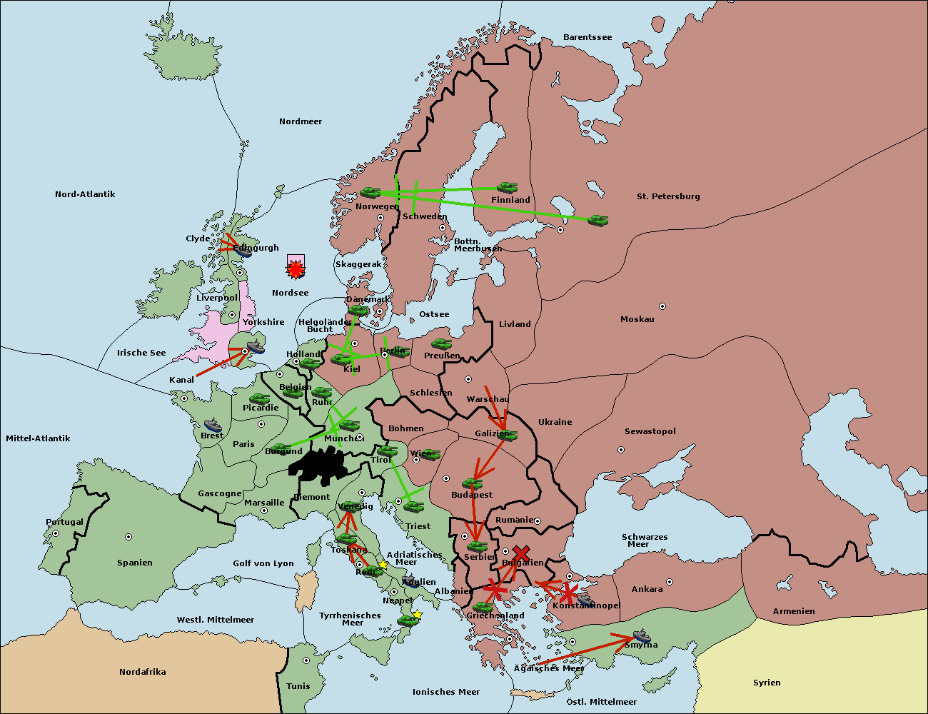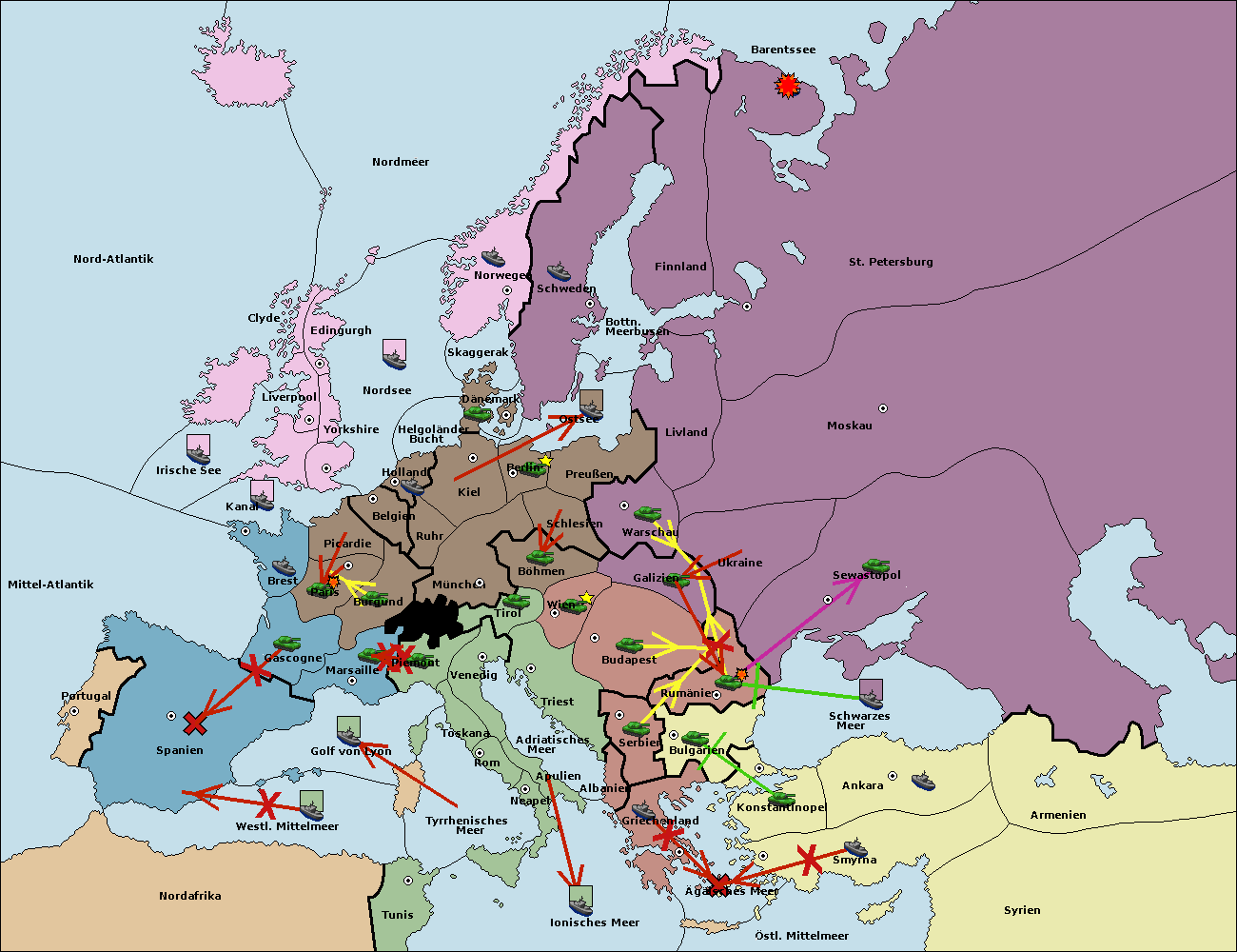 • Die Armee in Konstantinopel support hold nach Bulgarien.
