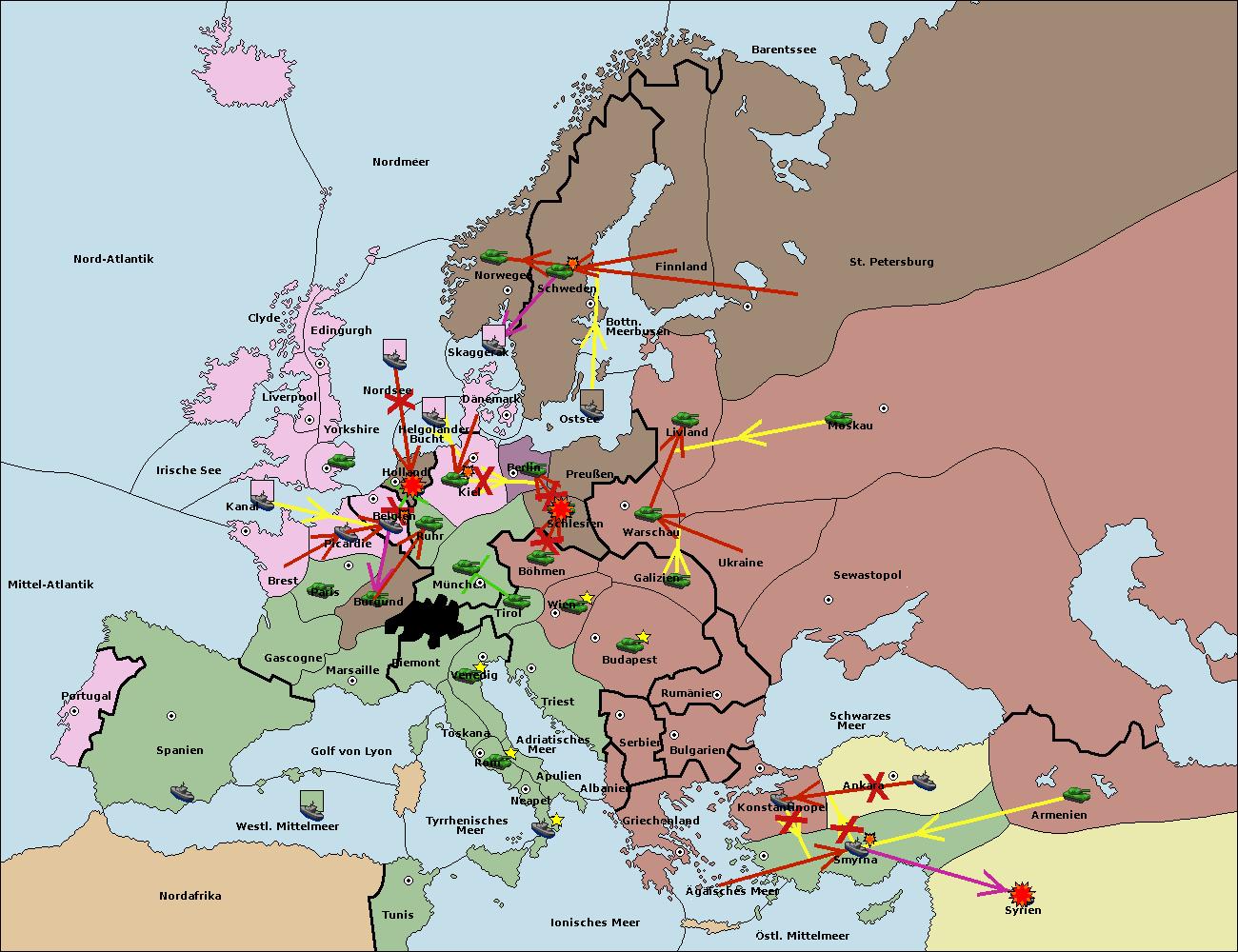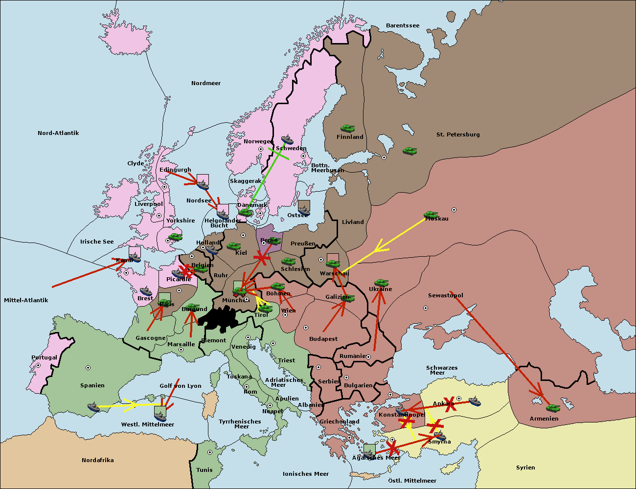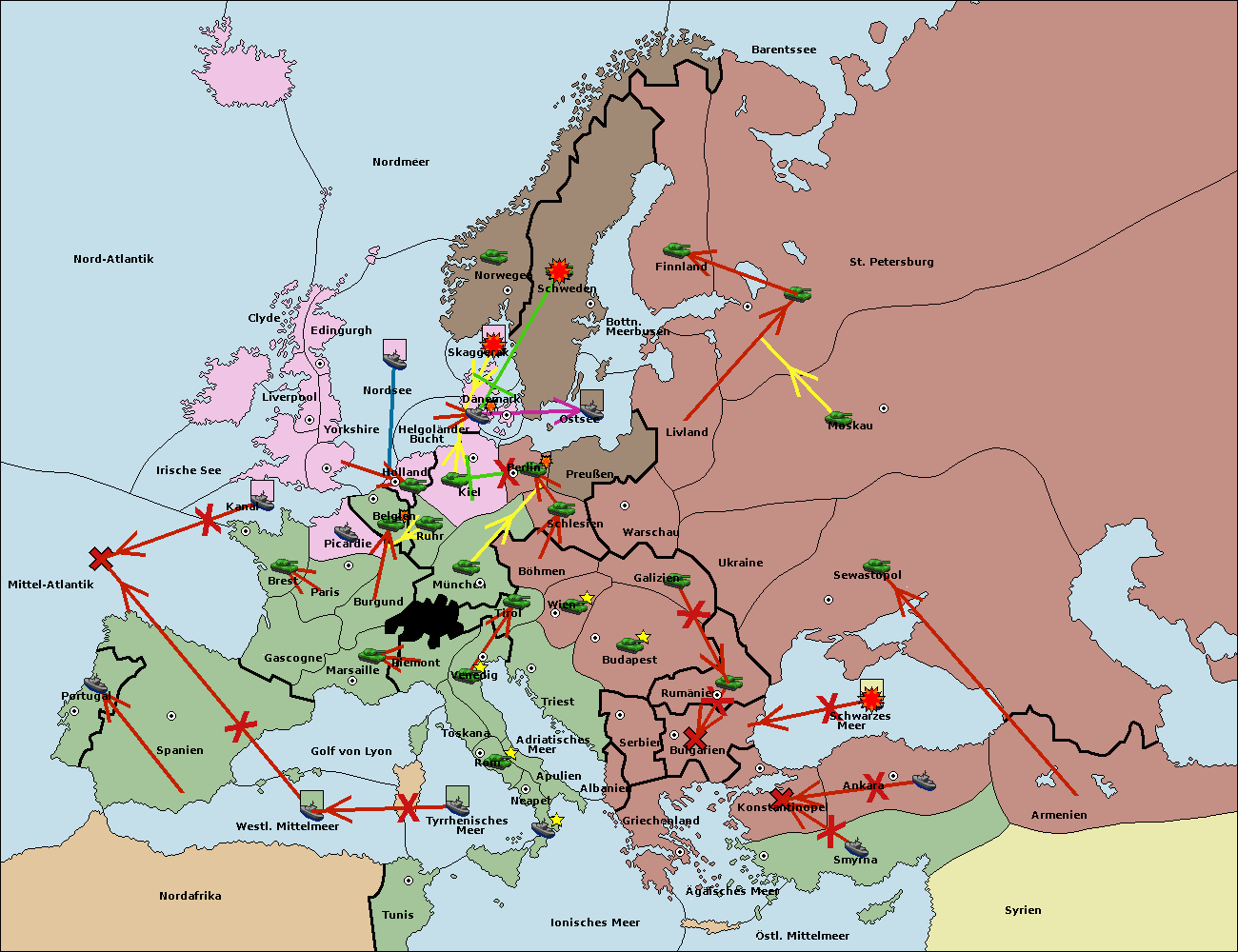 • Die Armee in Konstantinopel support hold nach Bulgarien.
