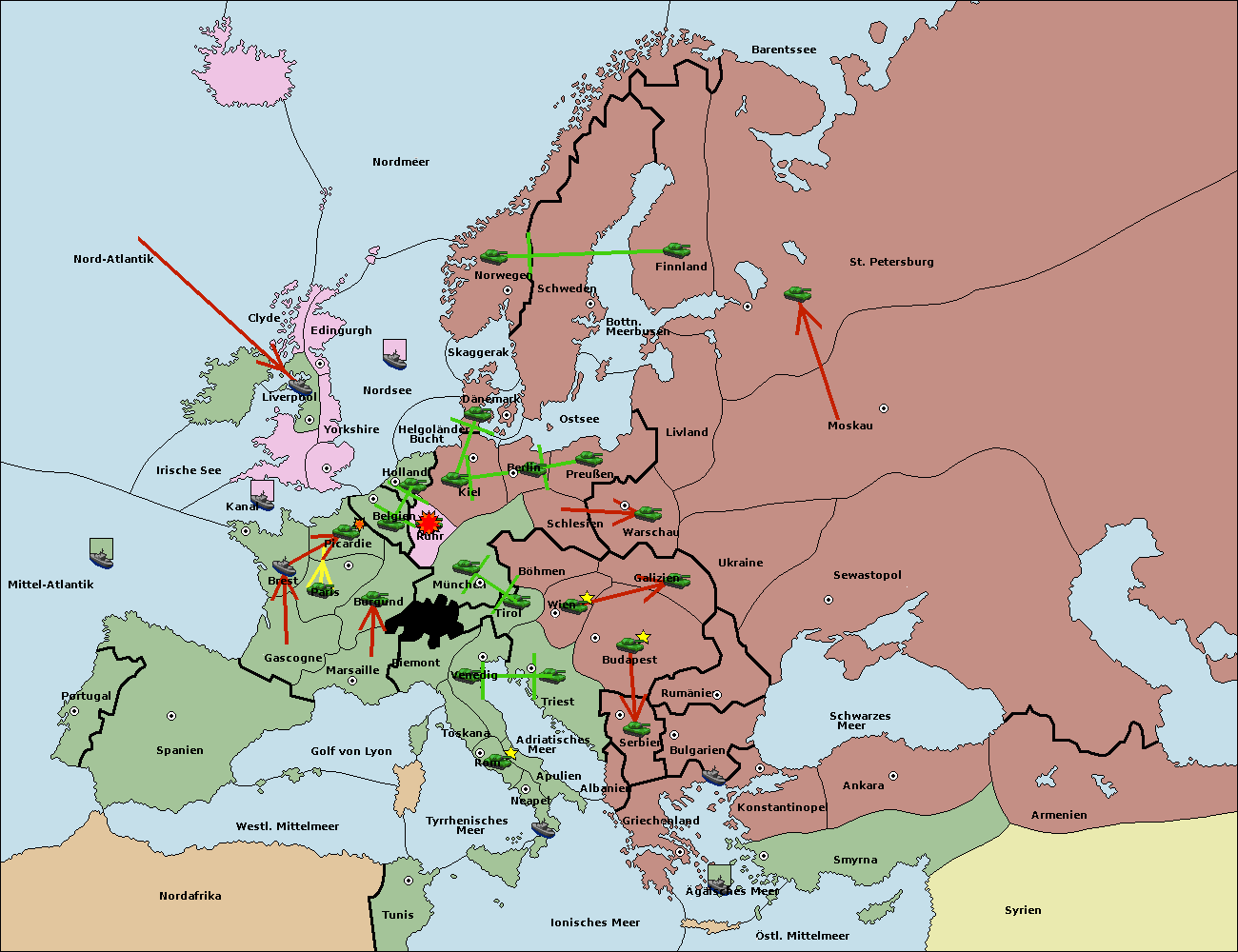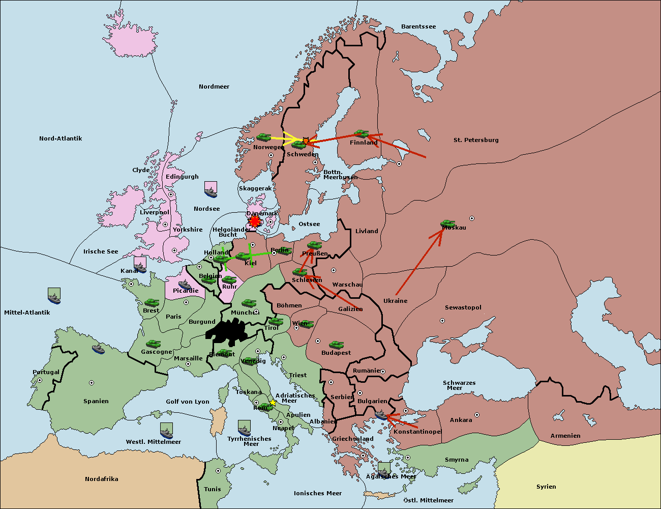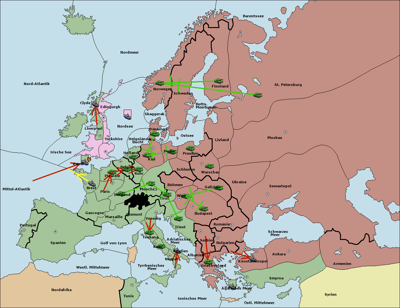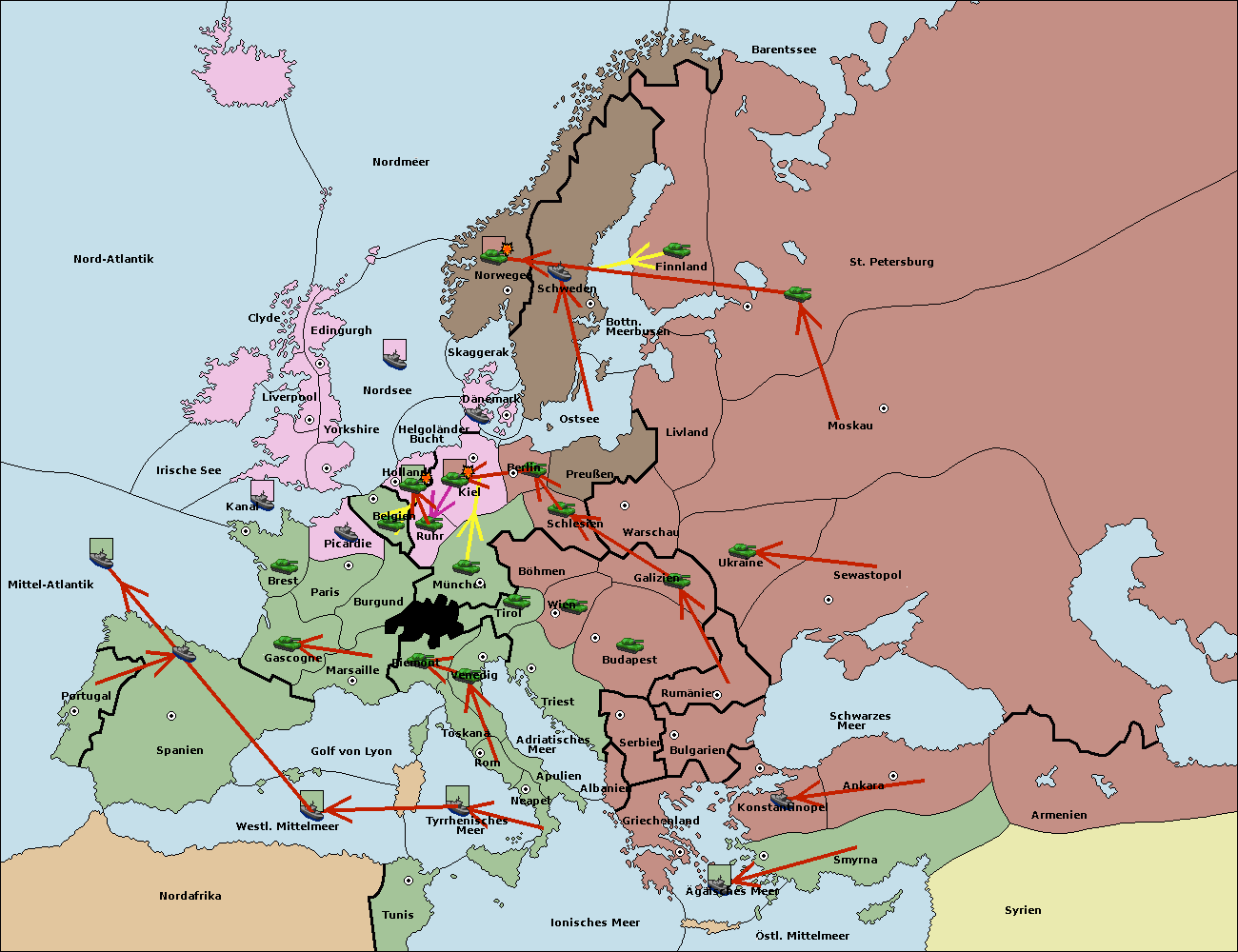 • Die Armee in Konstantinopel support hold nach Bulgarien.