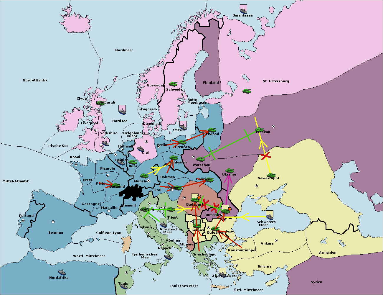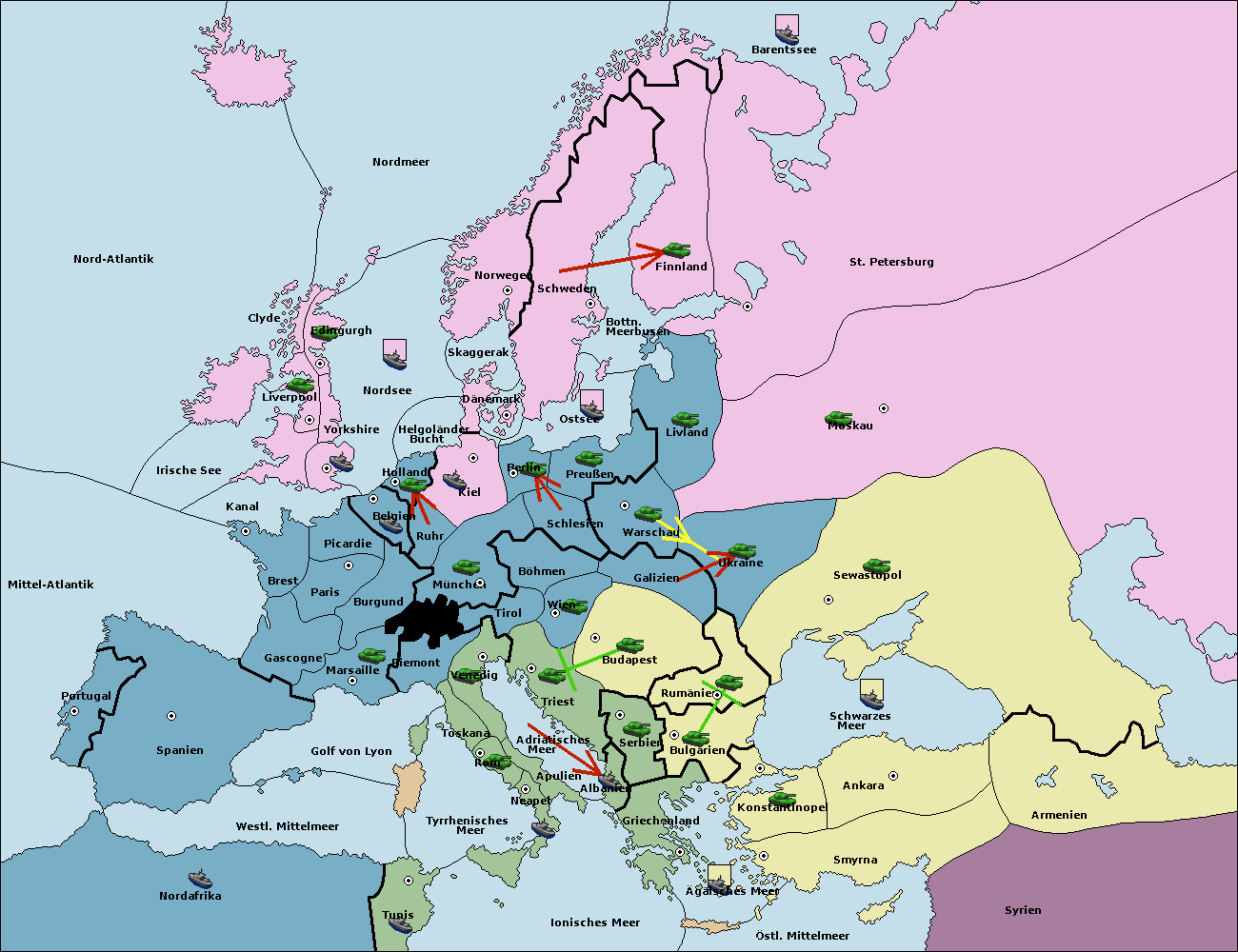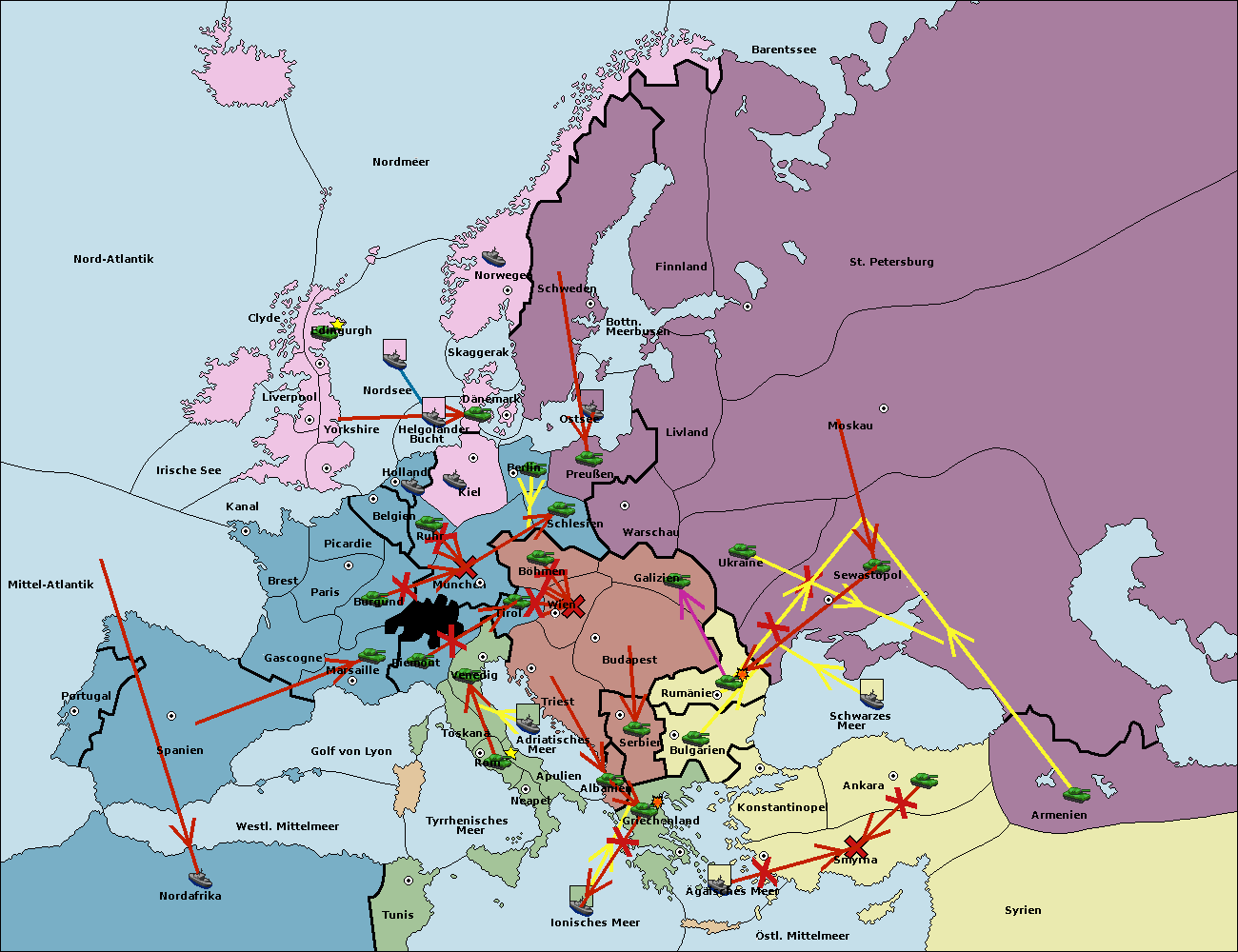 • Die Armee in Triest support move nach Budapest von Serbien.