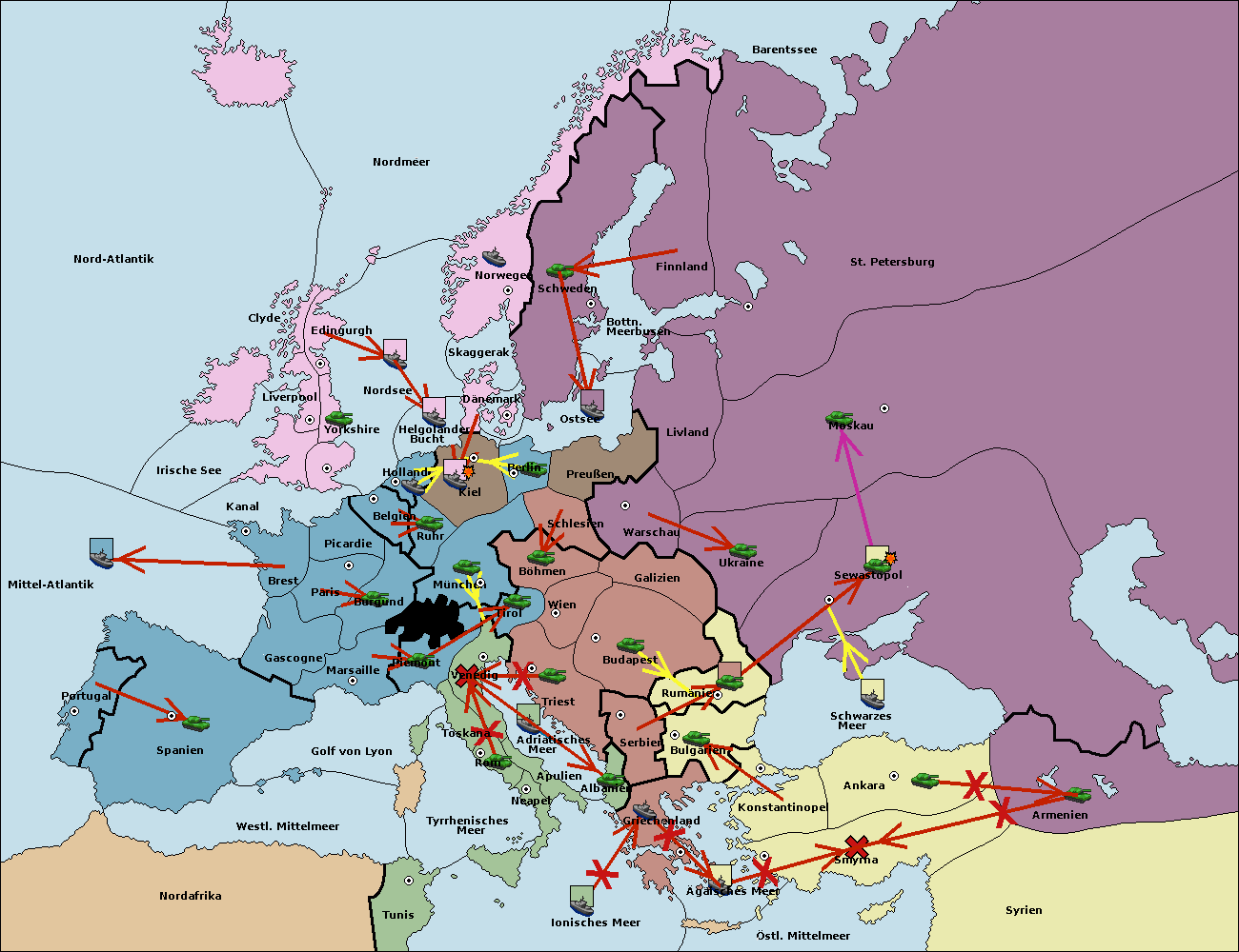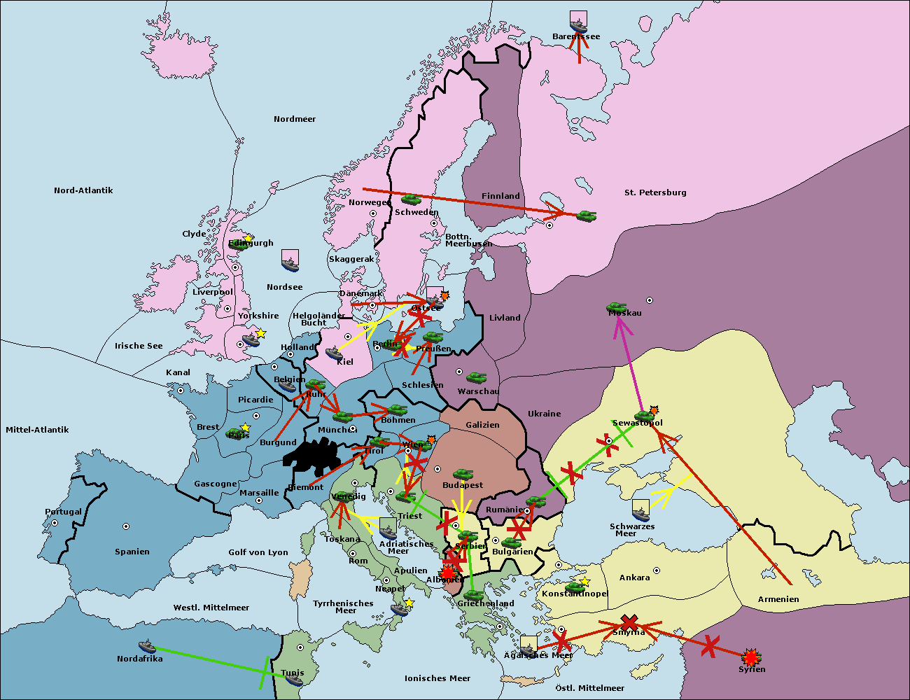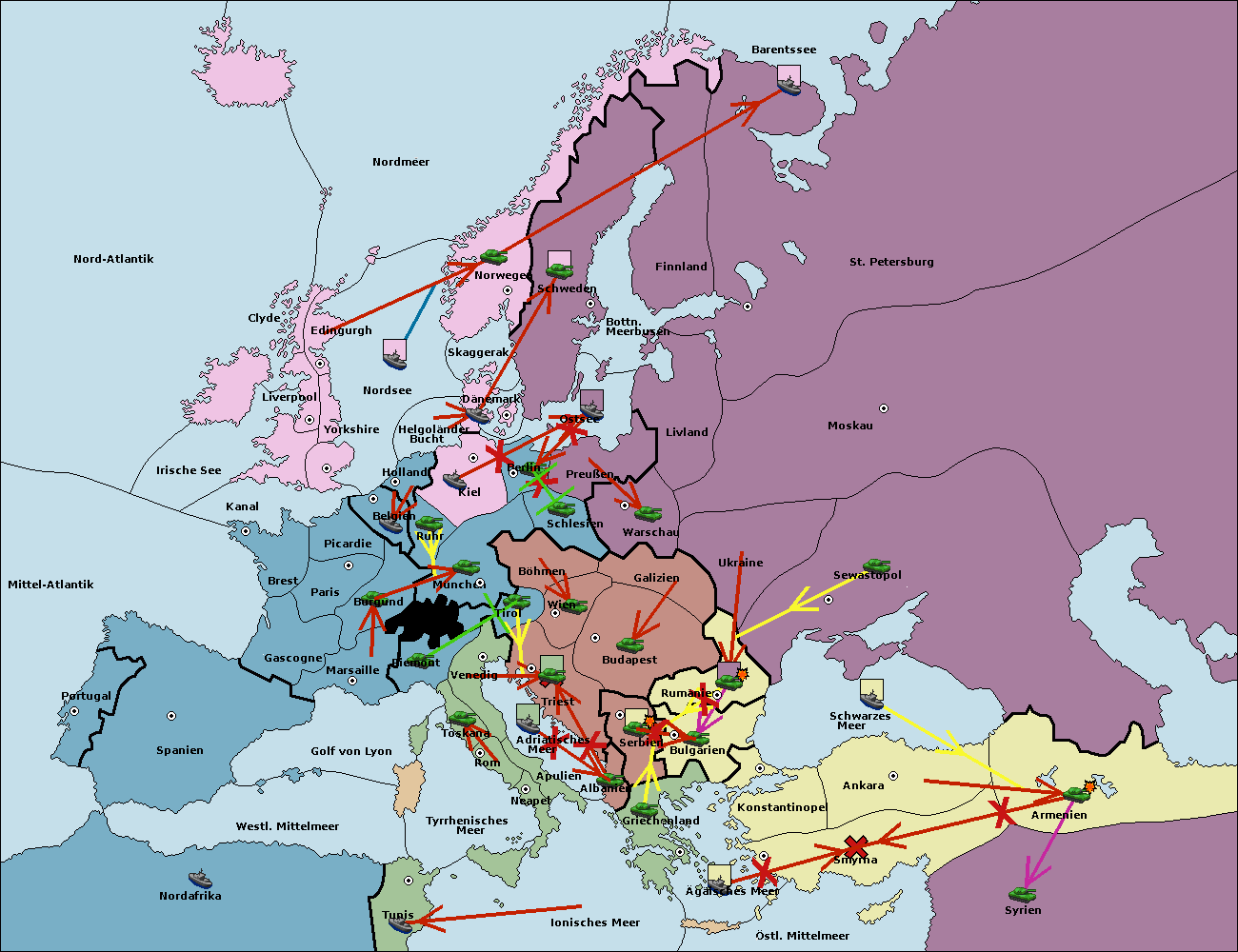 • Die Armee in Konstantinopel support hold nach Bulgarien.