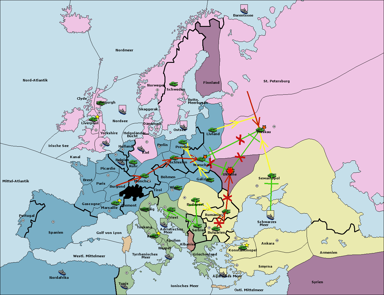 • Die Armee in Warschau wird zerstörtFlotte in Warschau gebaut.