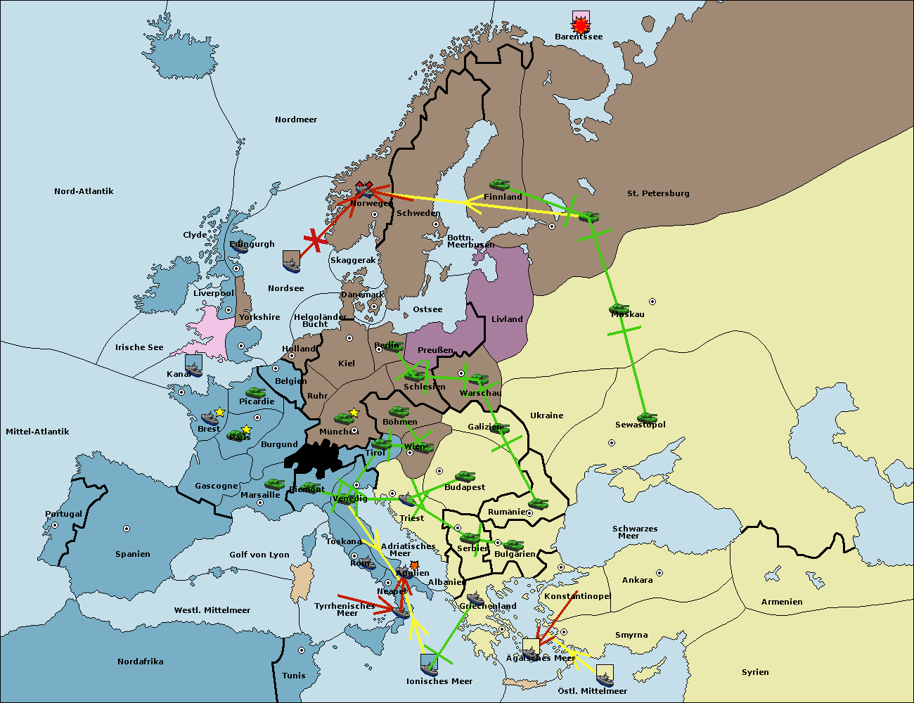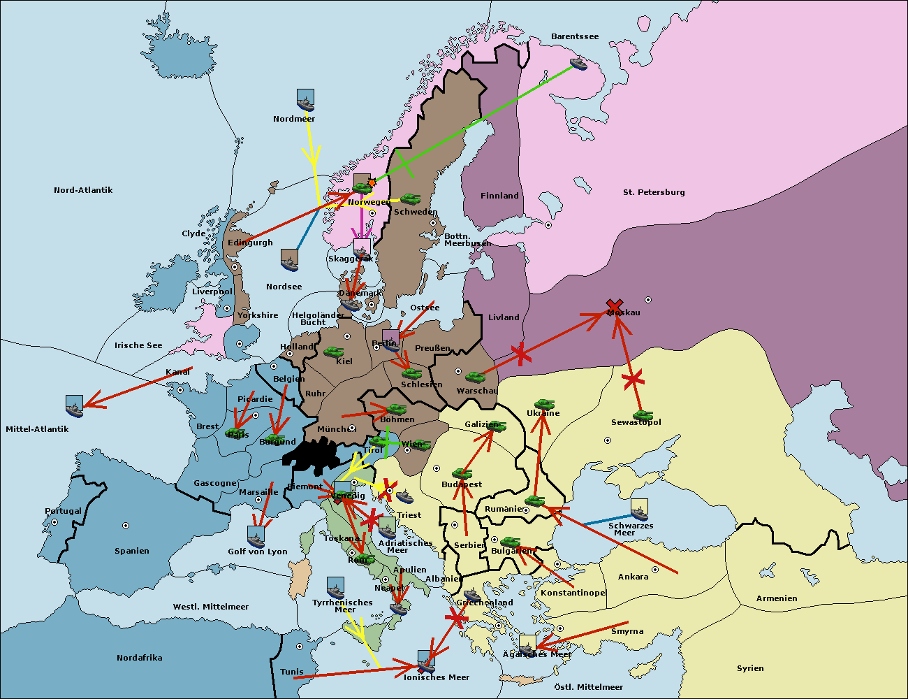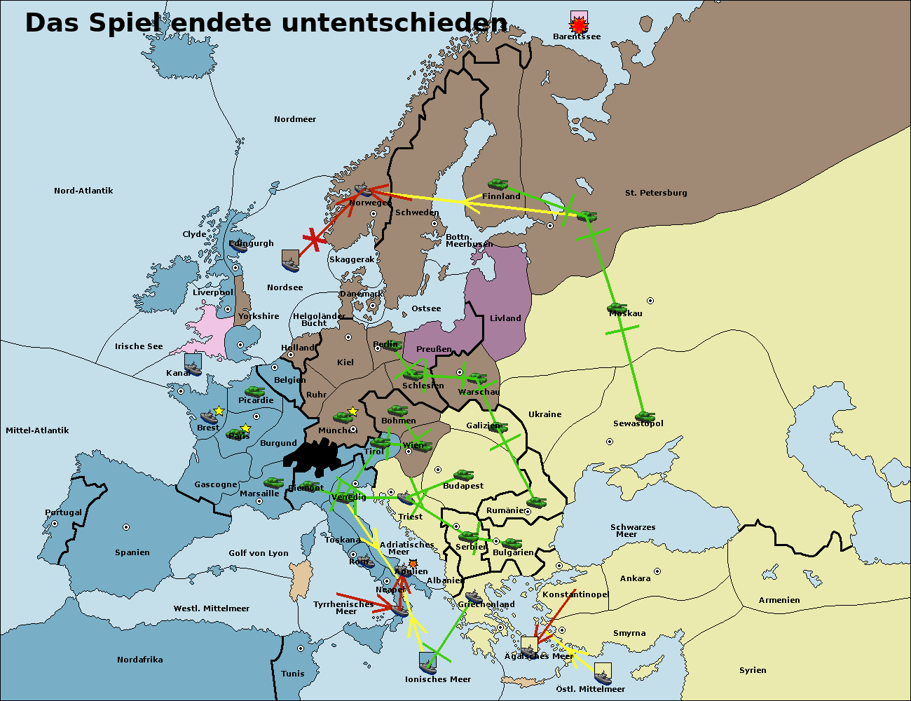 • Die Flotte in St. Petersburg (Nordküste) support move nach Norwegen von Skagerak.