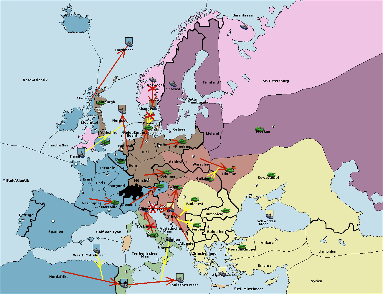 • Die Flotte in Spanien (Südküste) move nach westl. Mittelmeer.