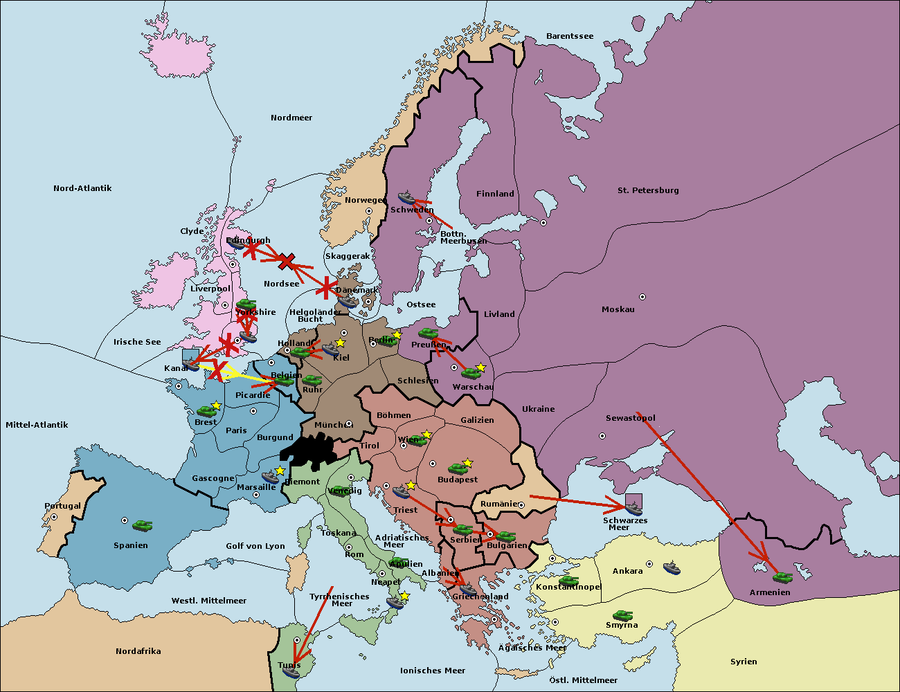 • Die Flotte in Nordsee support hold nach London. (gescheitert)