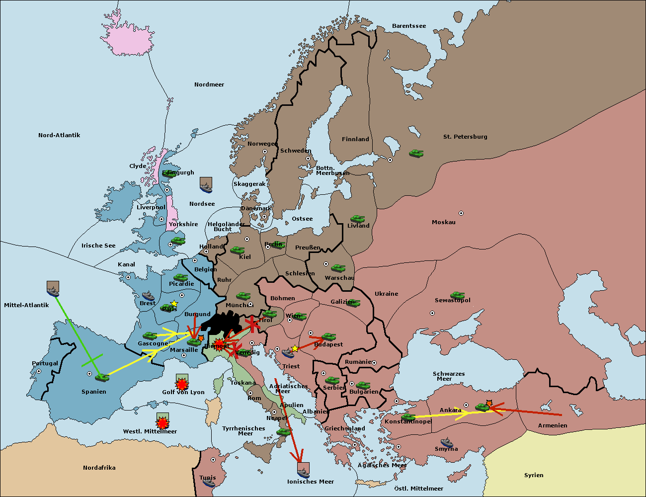 • Die Armee in Ankara wird zerstörtFlotte in Ankara gebaut.