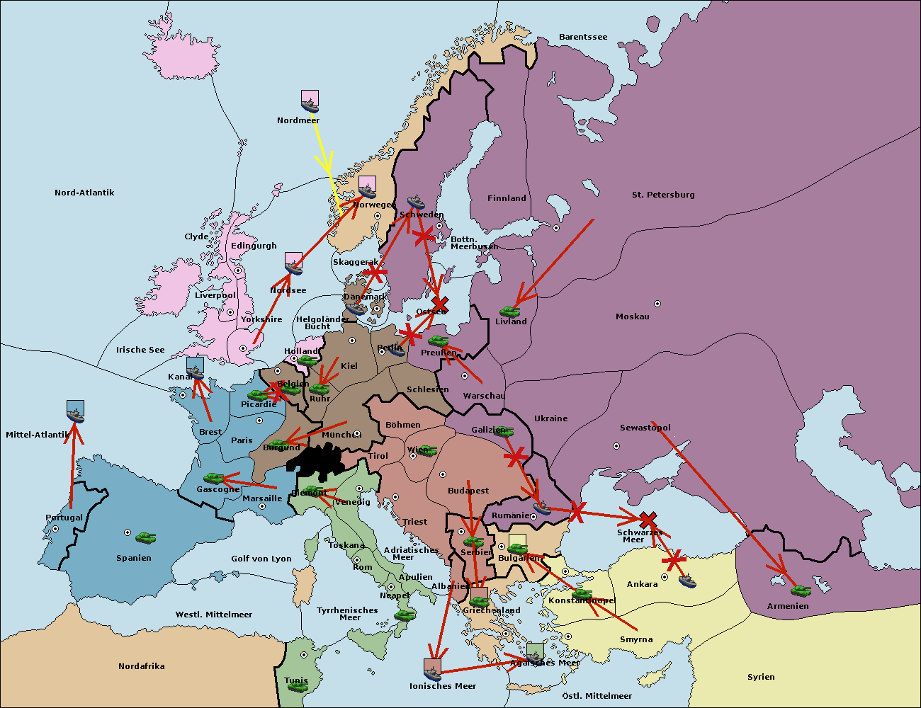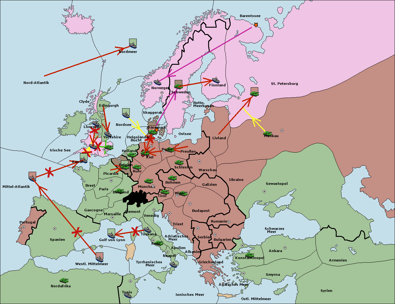 • Die Flotte in Barentssee move nach St. Petersburg (Nordküste). (gescheitert)