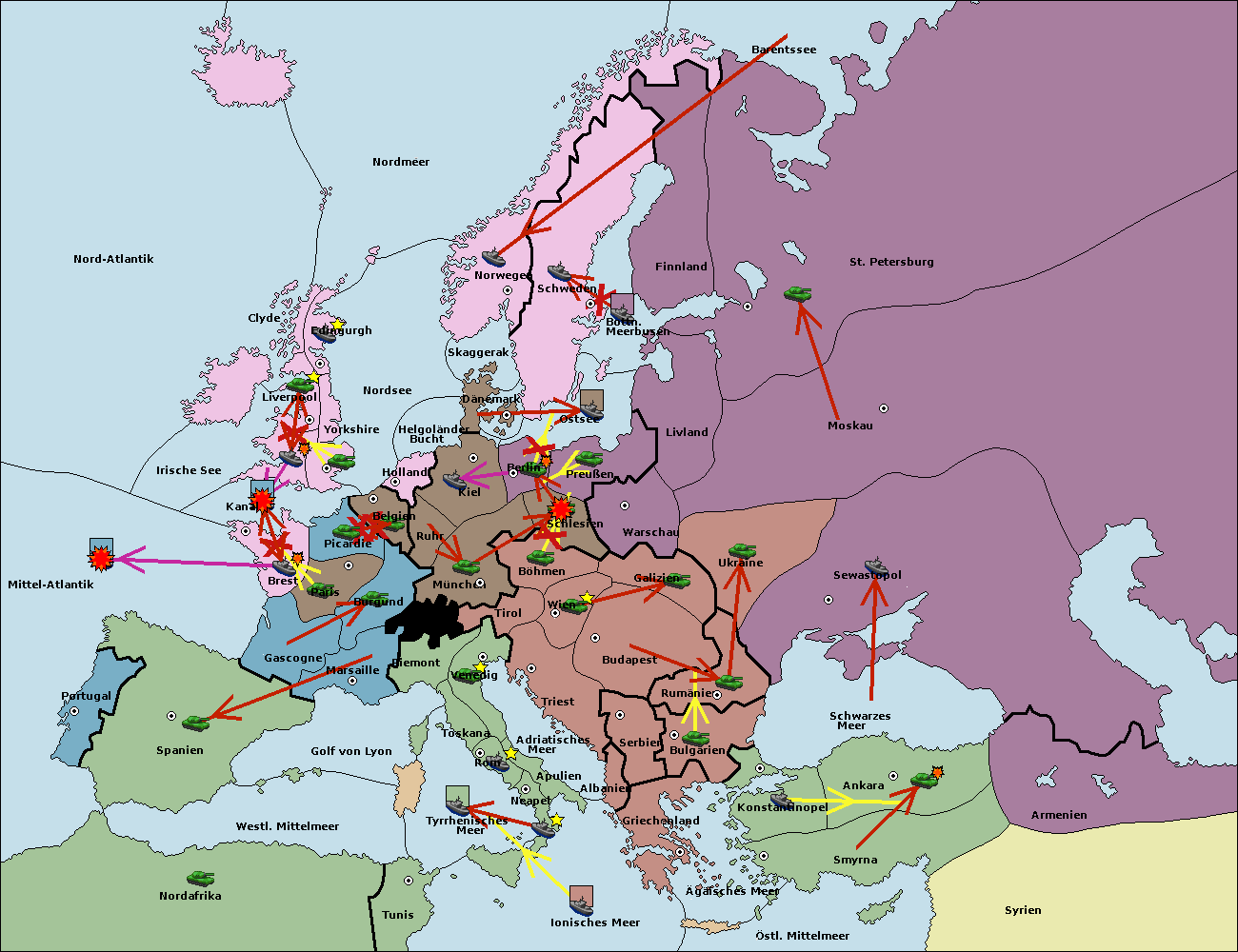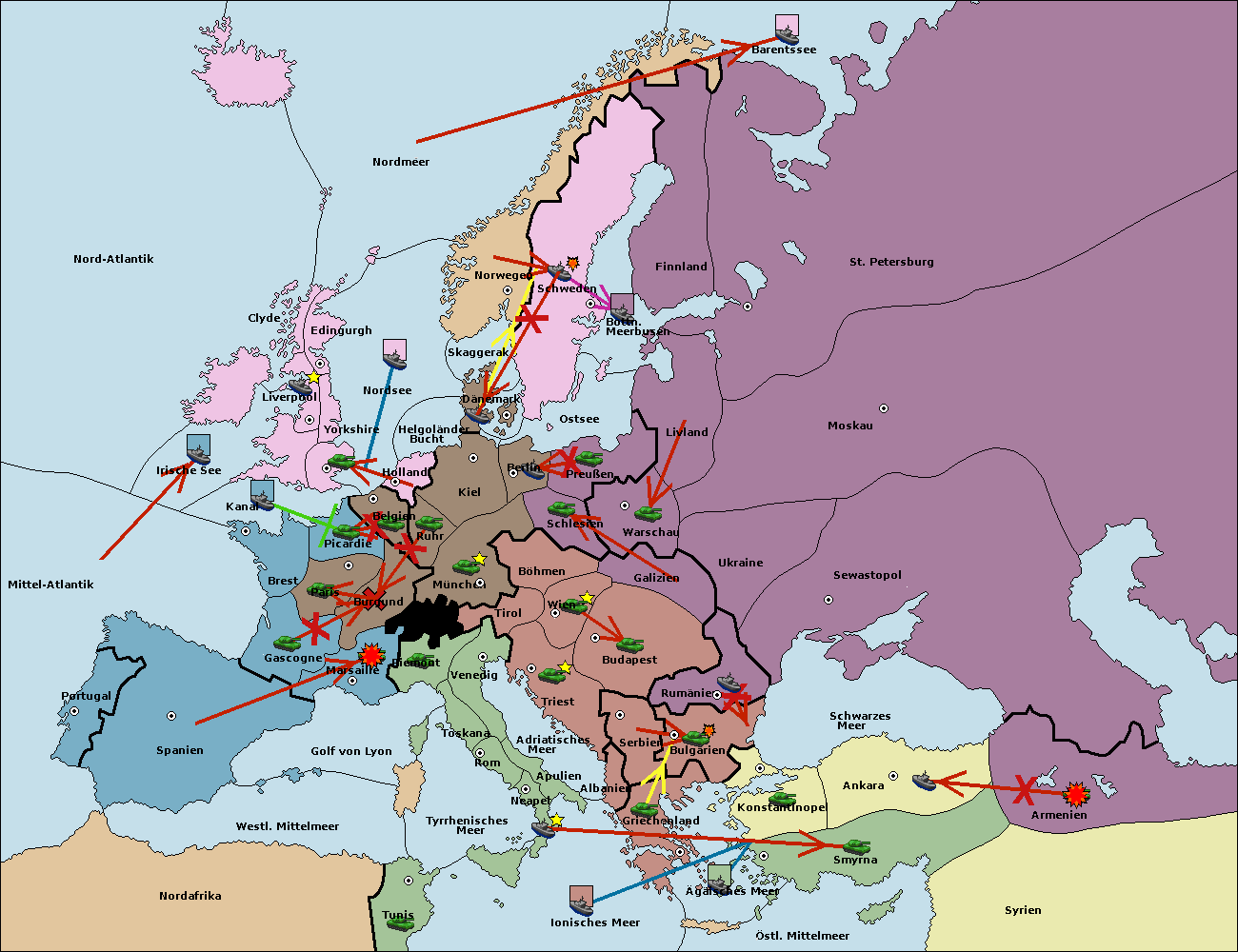 • Die Armee in Bulgarien wird zerstörtFlotte in Bulgarien gebaut.