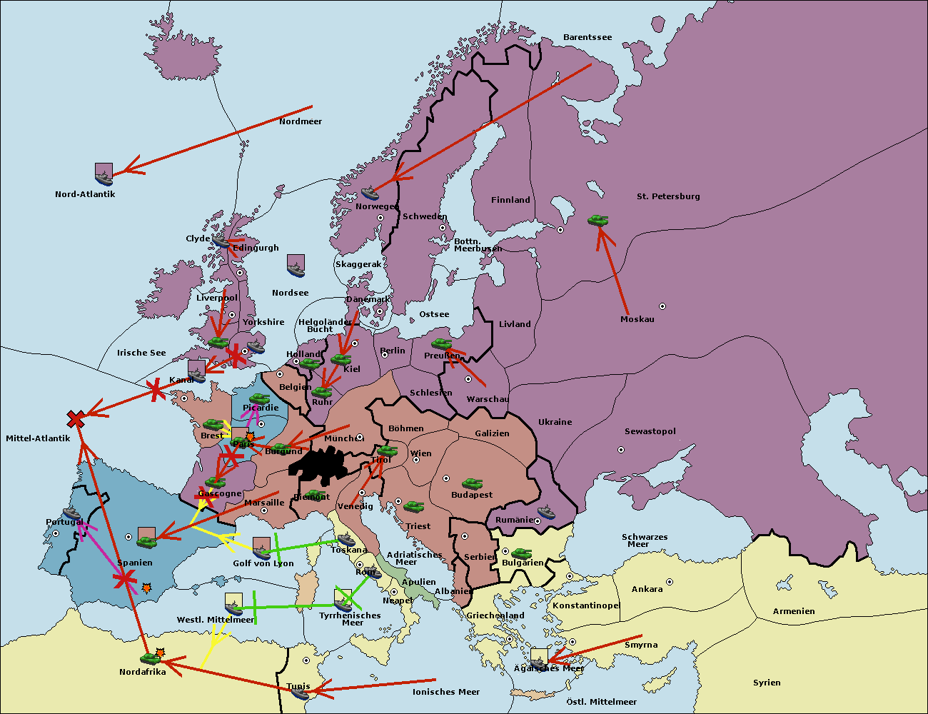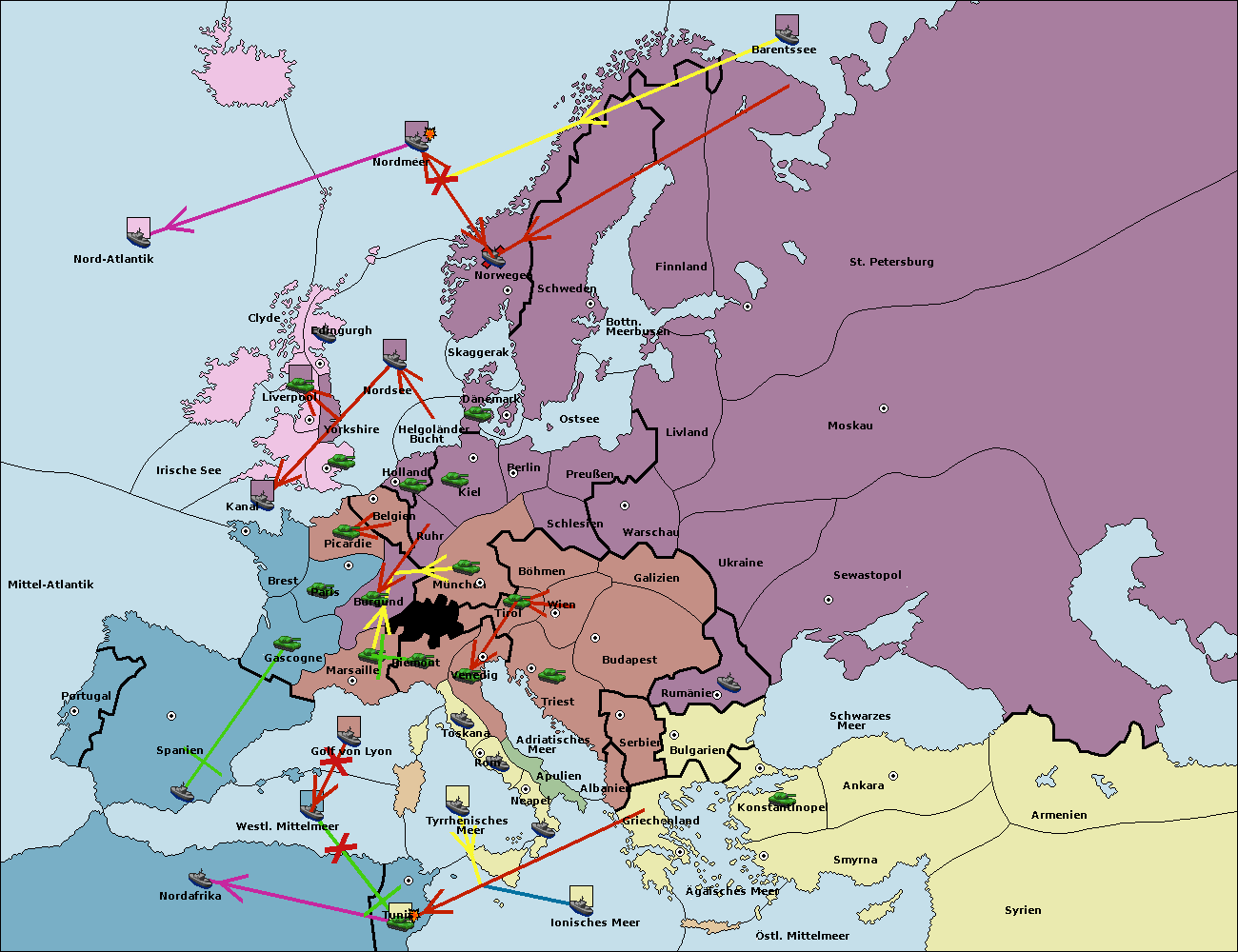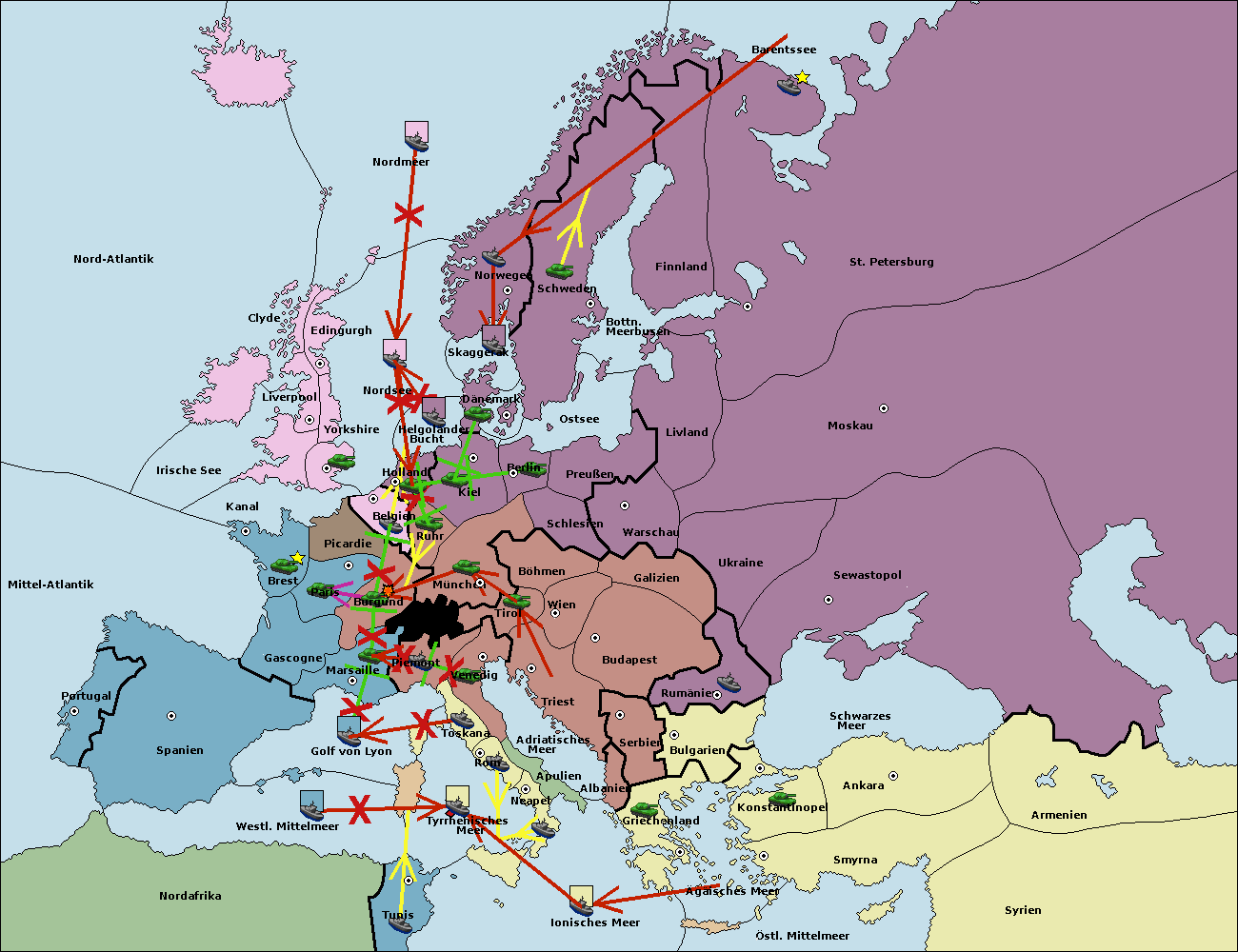 • Die Flotte in Spanien (Südküste) support move nach Golf von Lyon von westl. Mittelmeer.