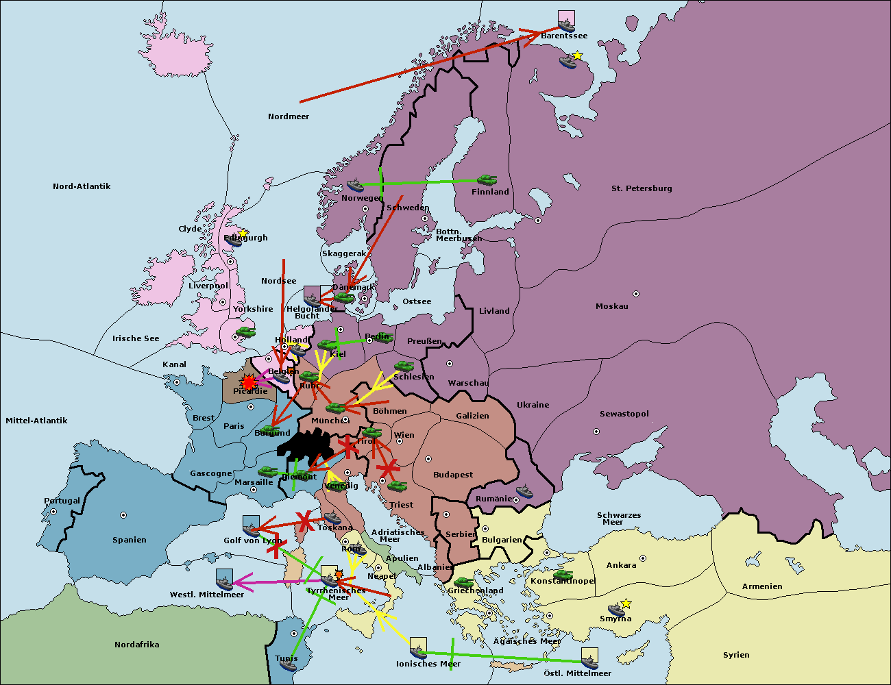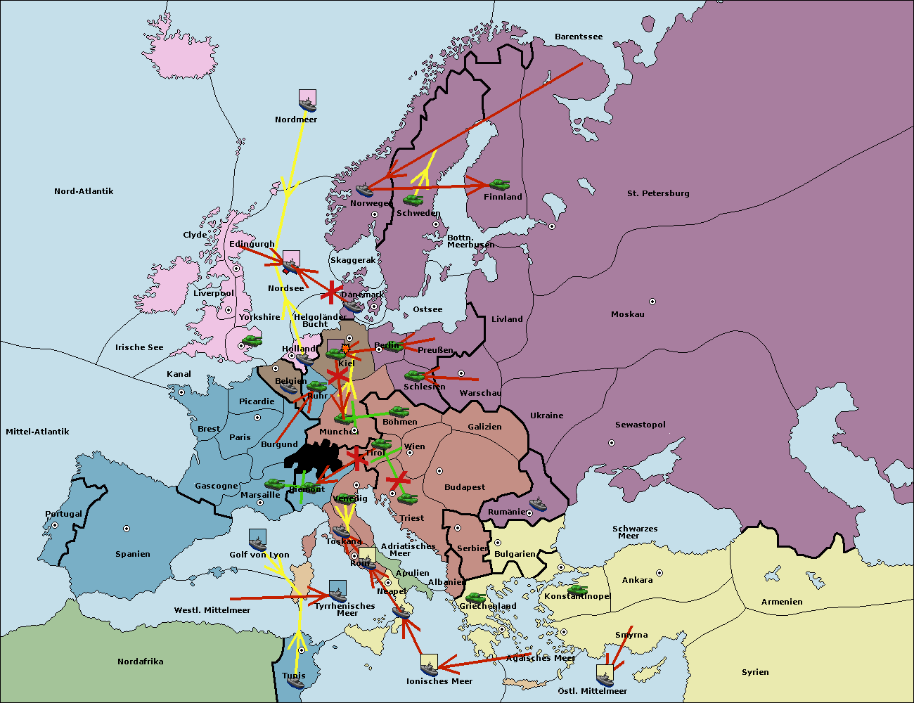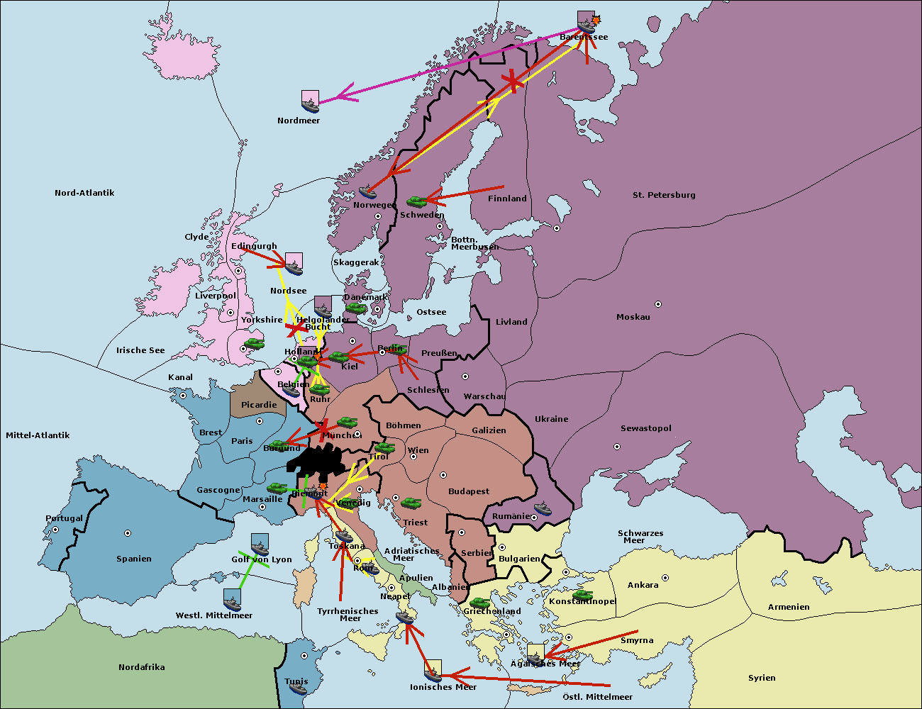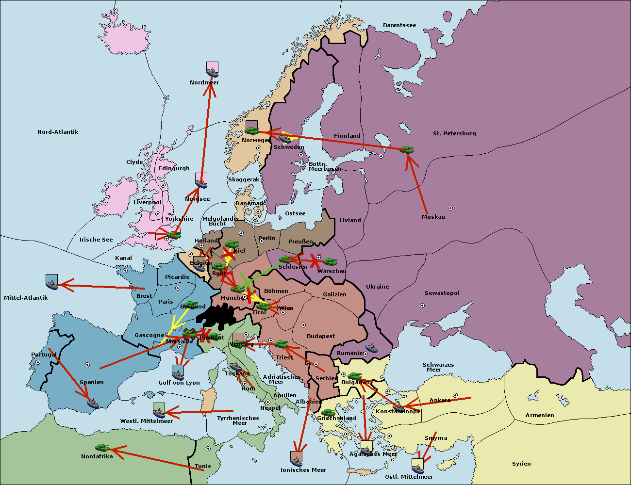 • Die Flotte in Spanien (Südküste) support move nach Golf von Lyon von westl. Mittelmeer.