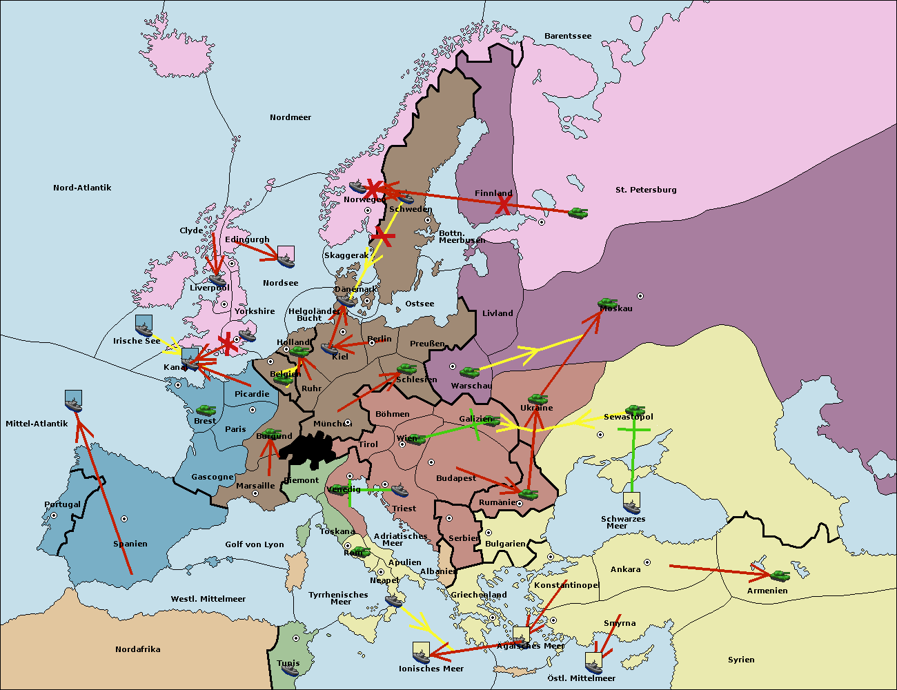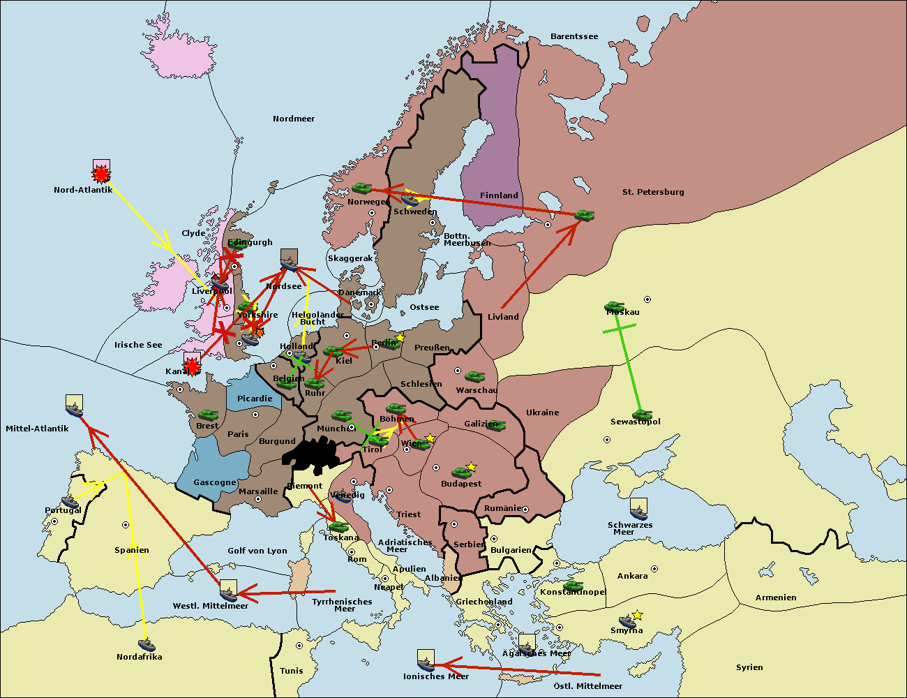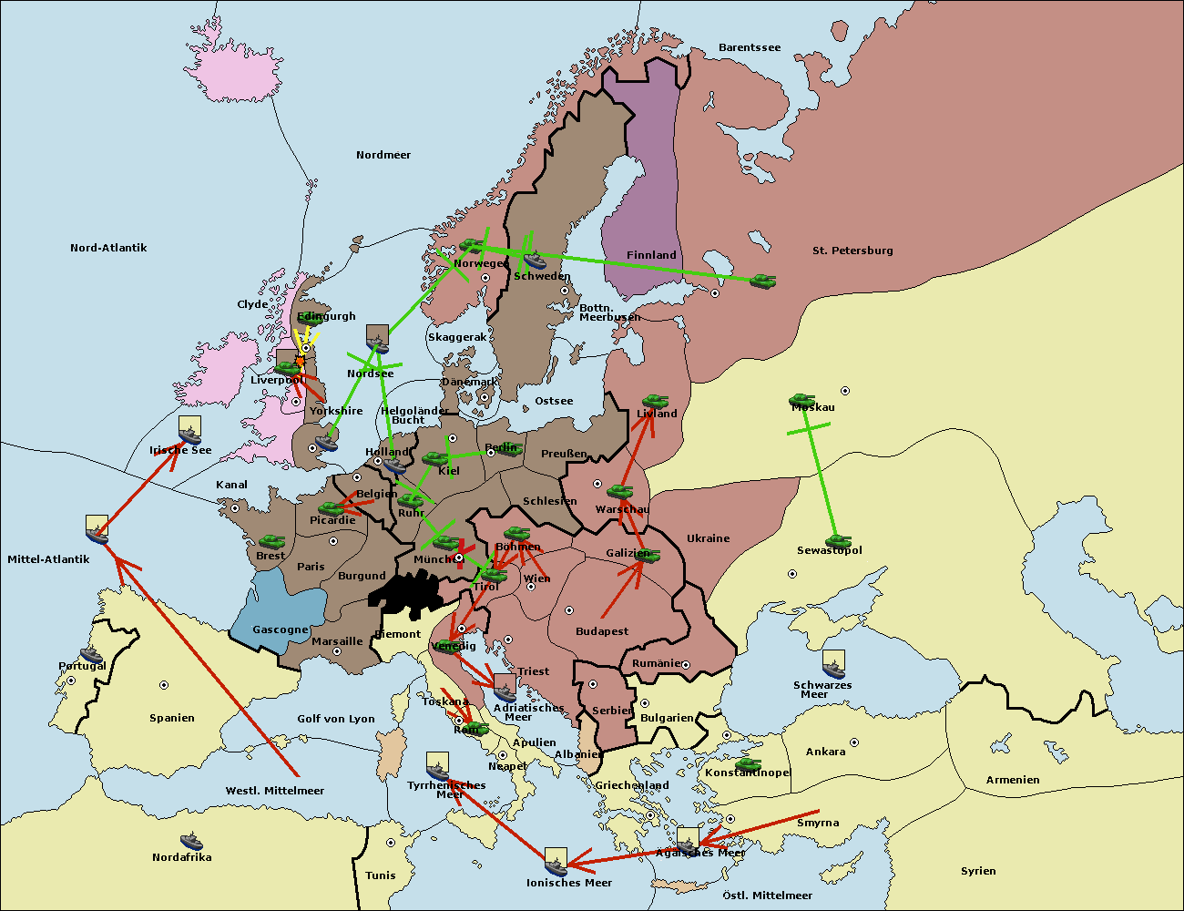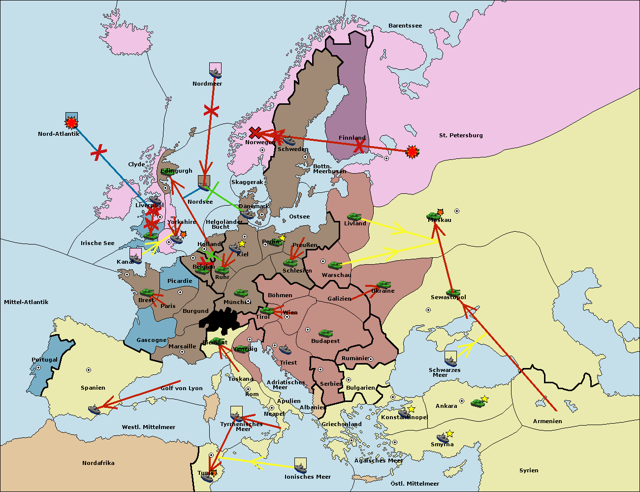 • Die Flotte in St. Petersburg (Nordküste) move nach Norwegen.