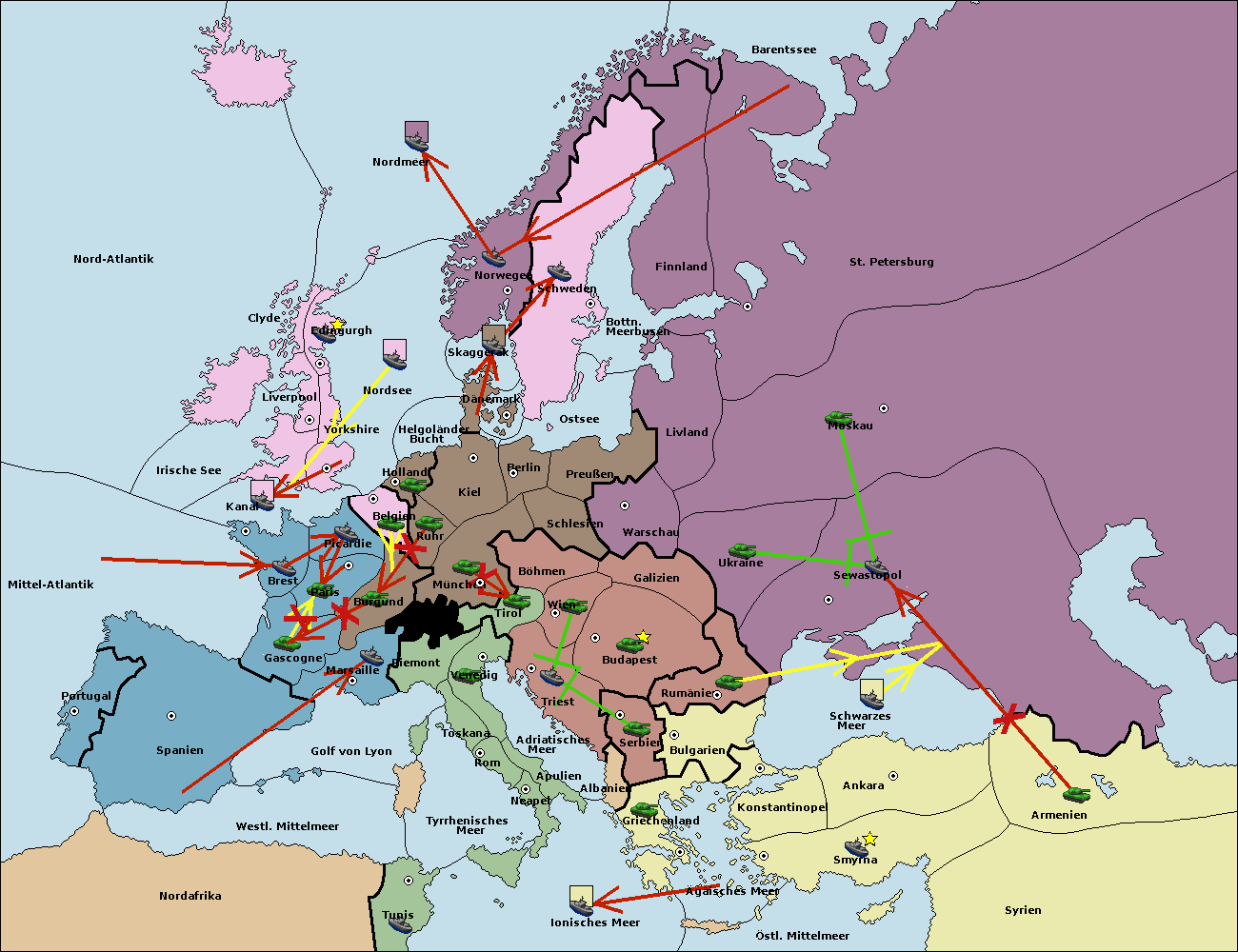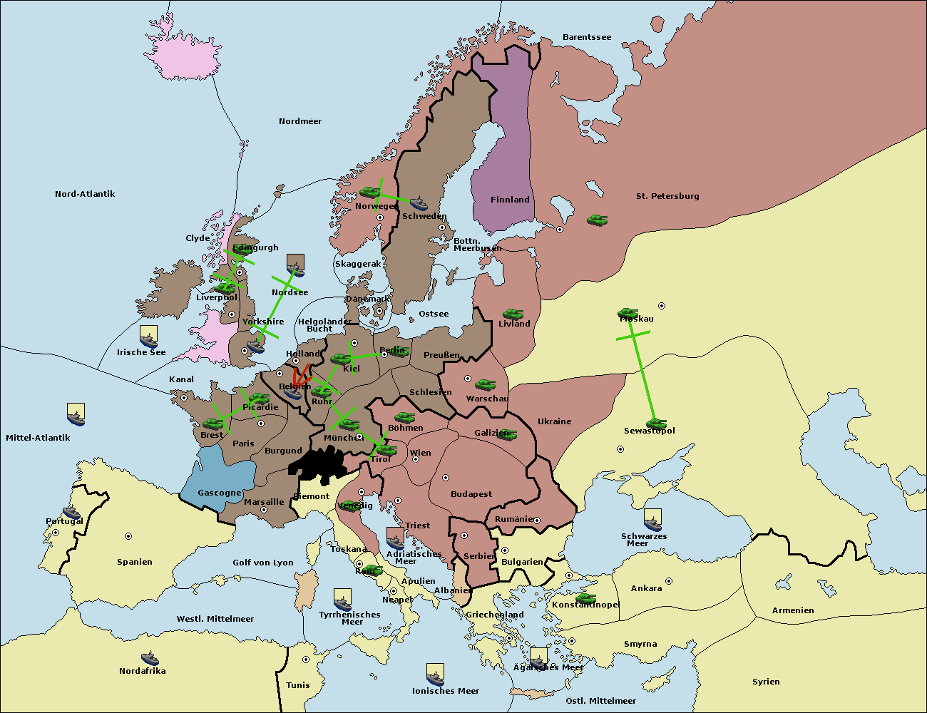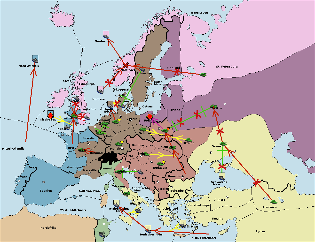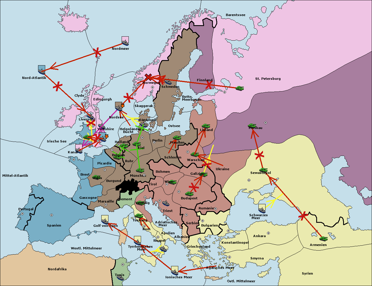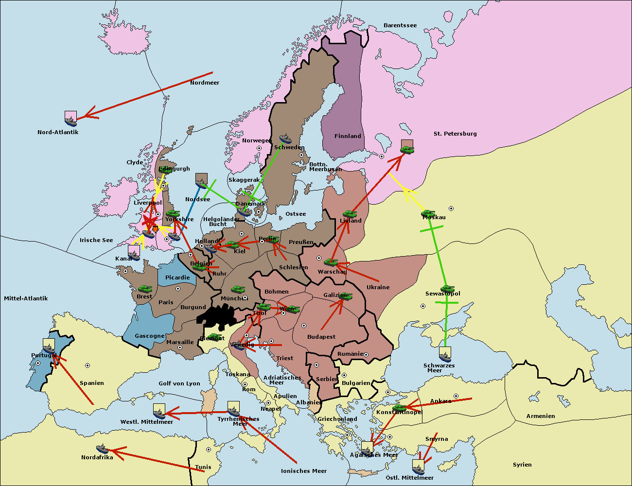 • Die Flotte in St. Petersburg (Nordküste) move nach Norwegen.
