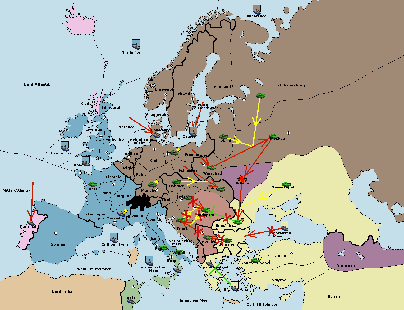 • Die Armee in Galizien support move nach Budapest von Wien.