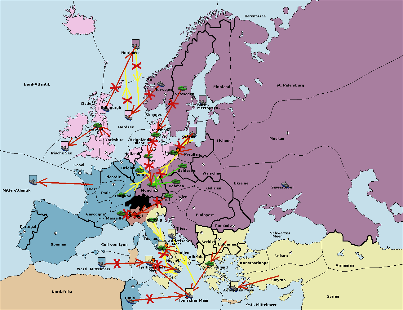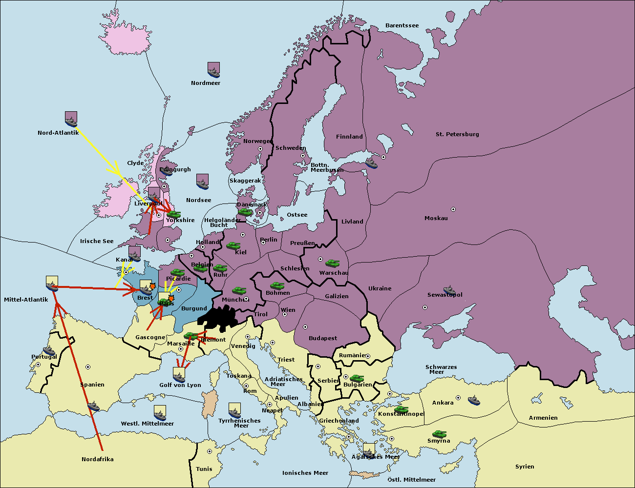 • Die Flotte in Schwarzes Meer support move nach Bulgarien von Konstantinopel. (gescheitert)
