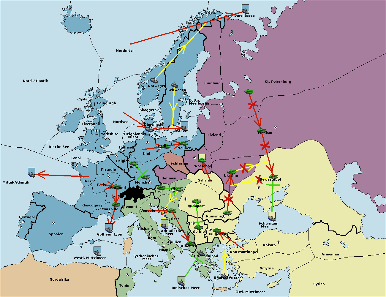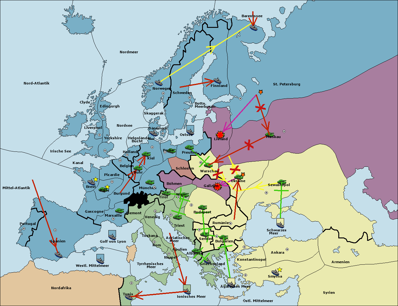 • Die Flotte in St. Petersburg (Nordküste) move nach Norwegen. (gescheitert)