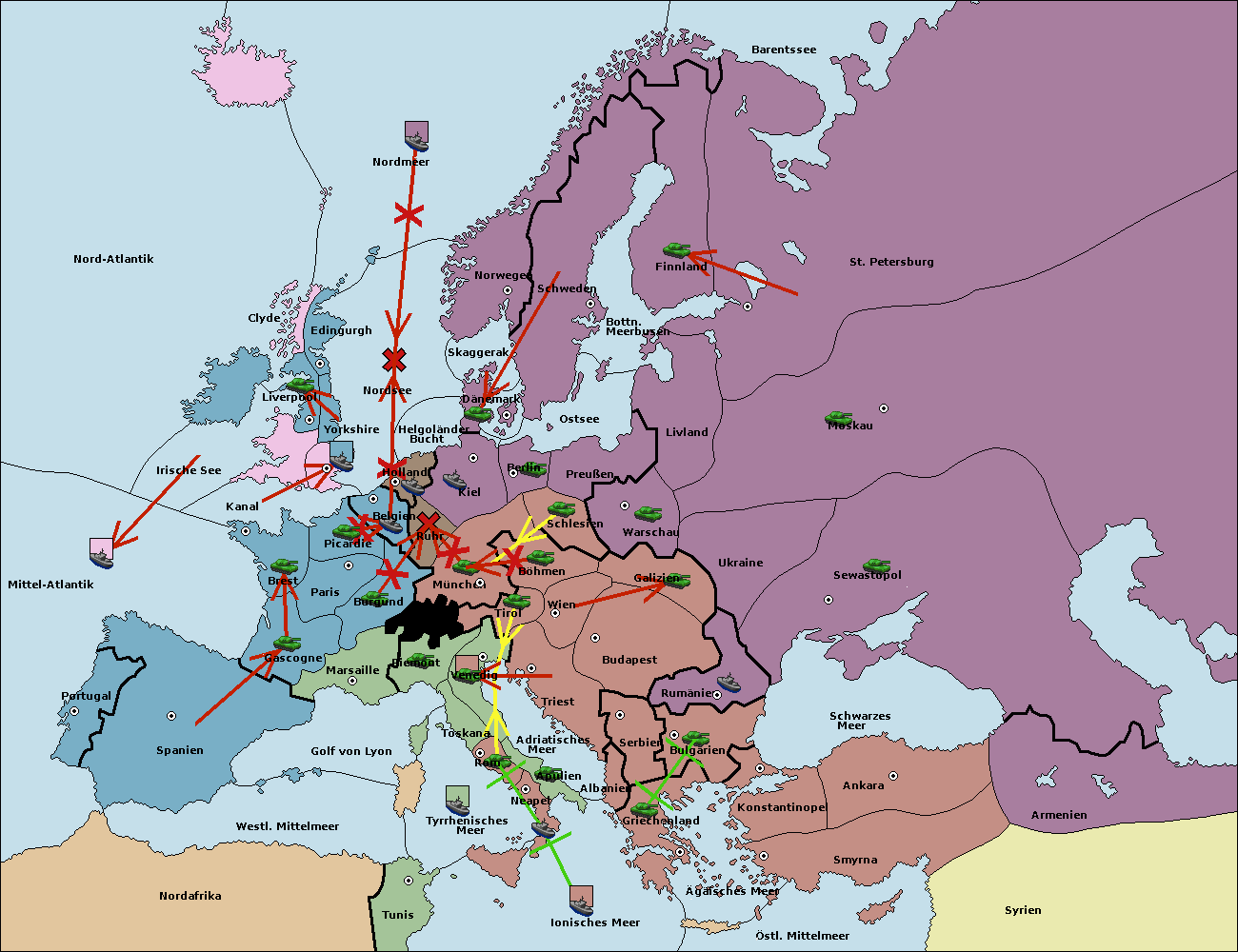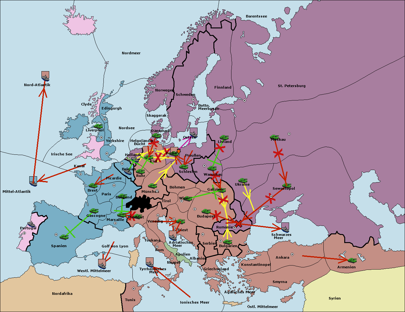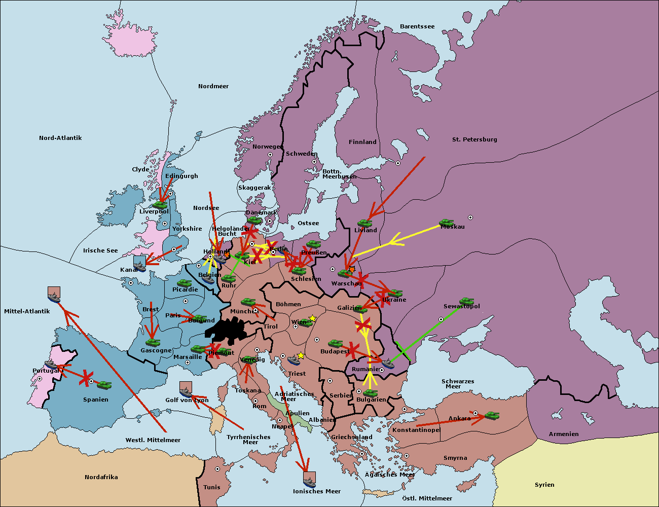 • Die Flotte in Ägäisches Meer support move nach Bulgarien von Serbien. (gescheitert)