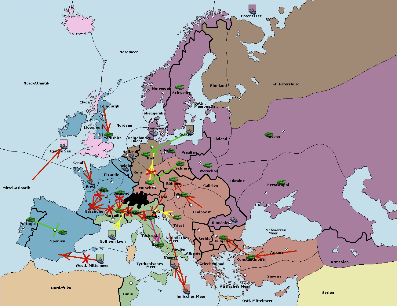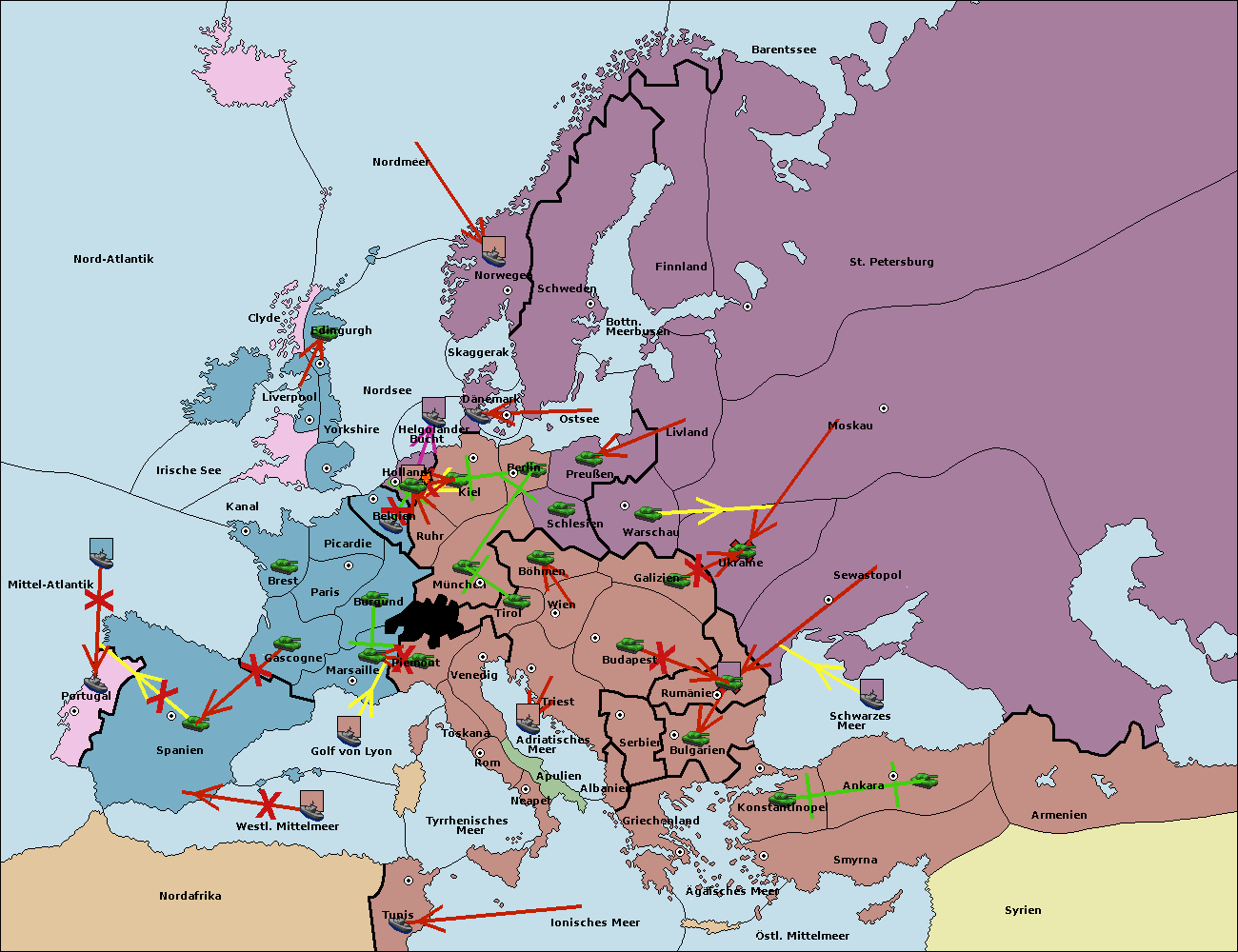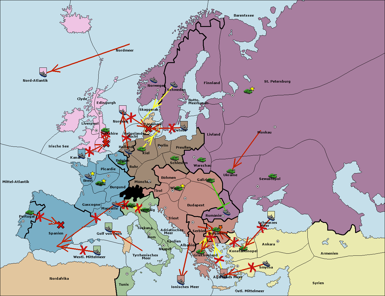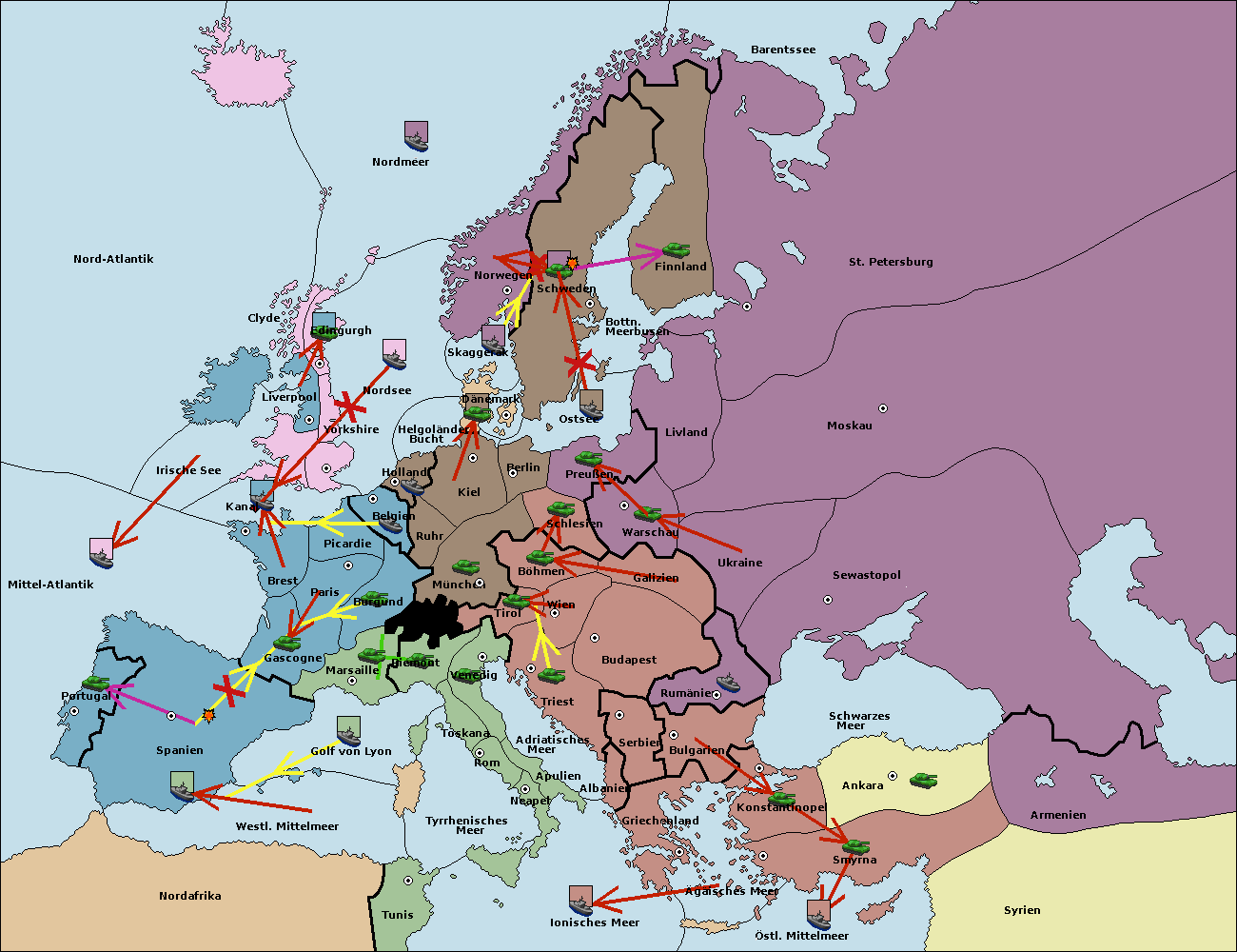 • Die Flotte in Ägäisches Meer support move nach Bulgarien von Serbien. (gescheitert)