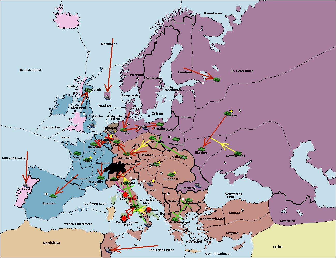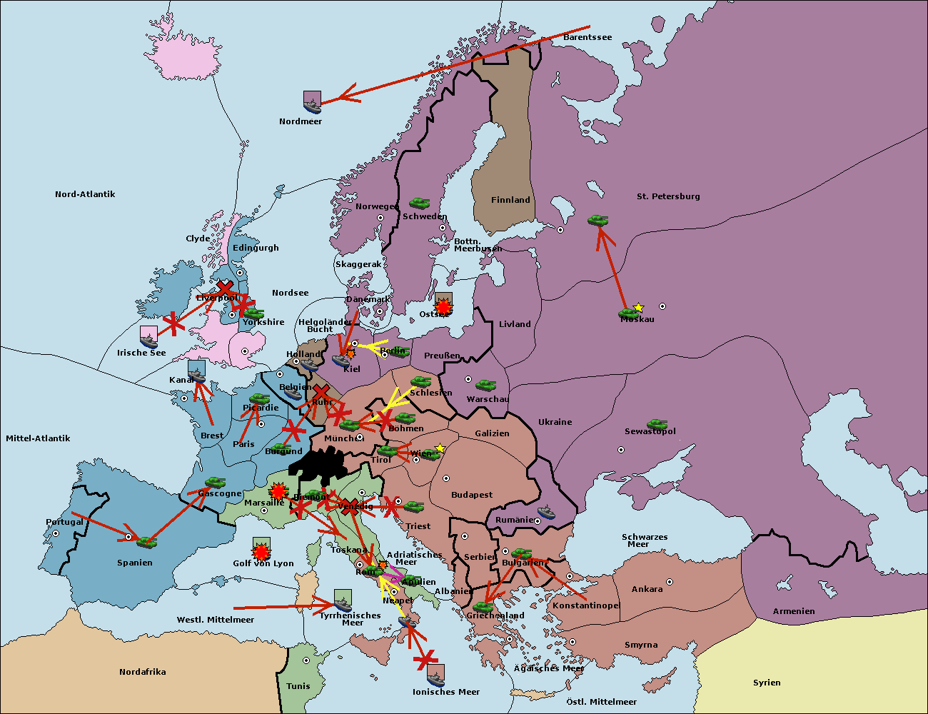 • Die Armee in Bulgarien wird zerstörtFlotte in Bulgarien gebaut.